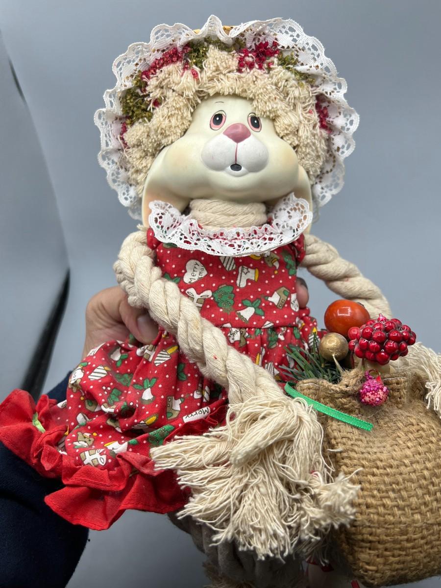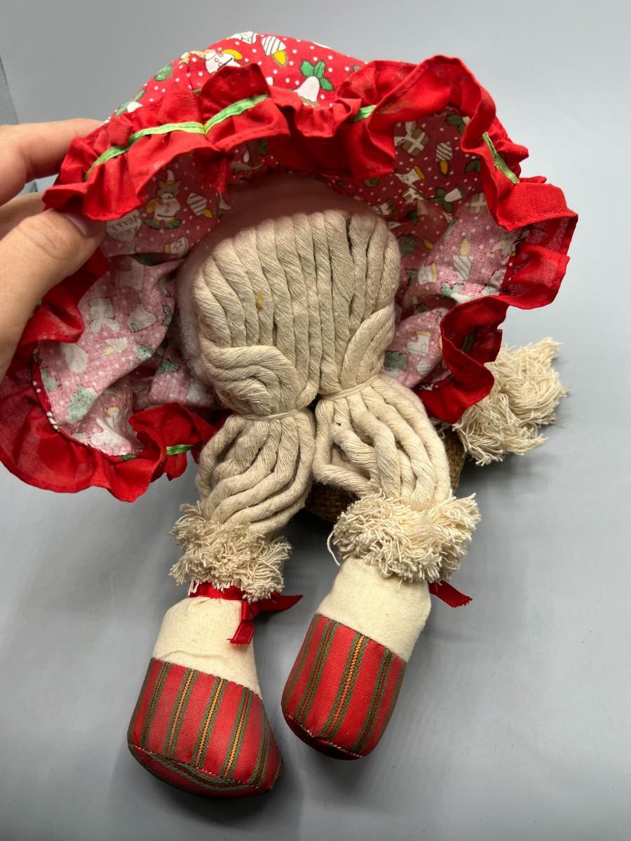 Vintage Cottagecore Country Folk Art House of Lloyd Yarn String Body Rabbit Doll. in good condition, dusty from display. Soft body with yarn arms, hard face.