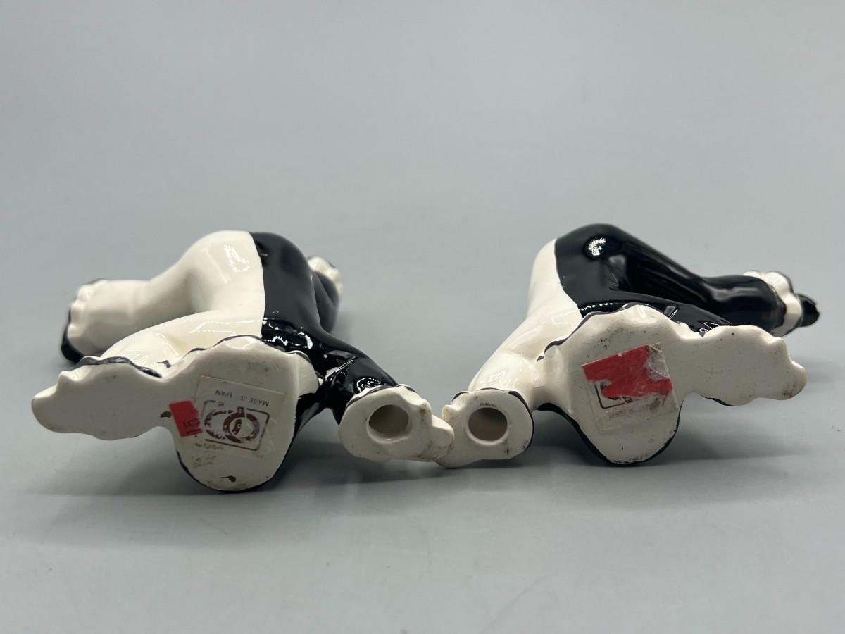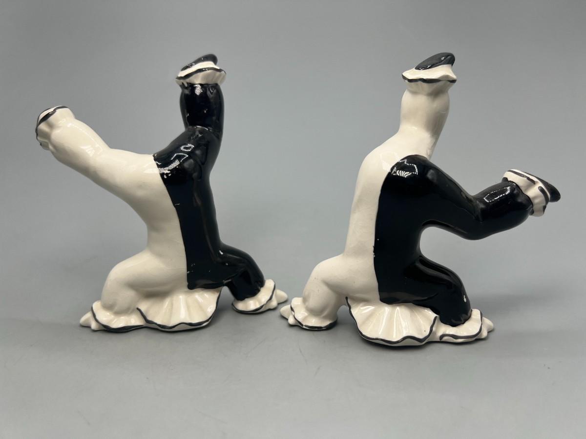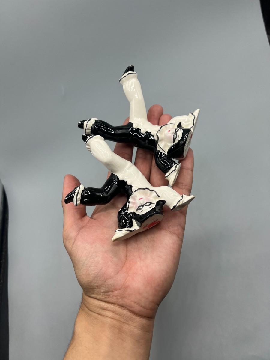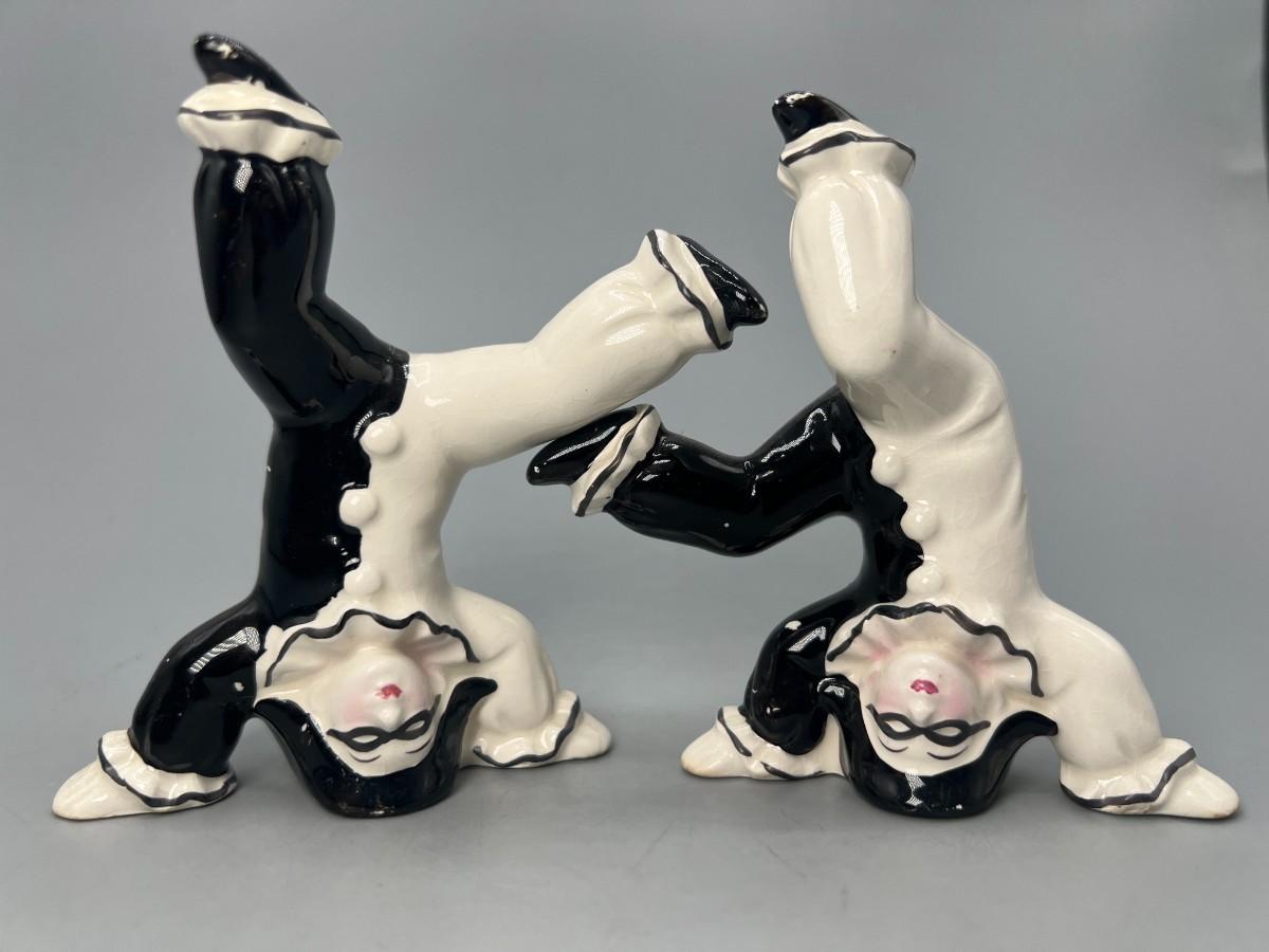 Vintage Ceramic Black & White Pierrot Harlequin Jester Clown Tumbling Japanese Trinket Figurines