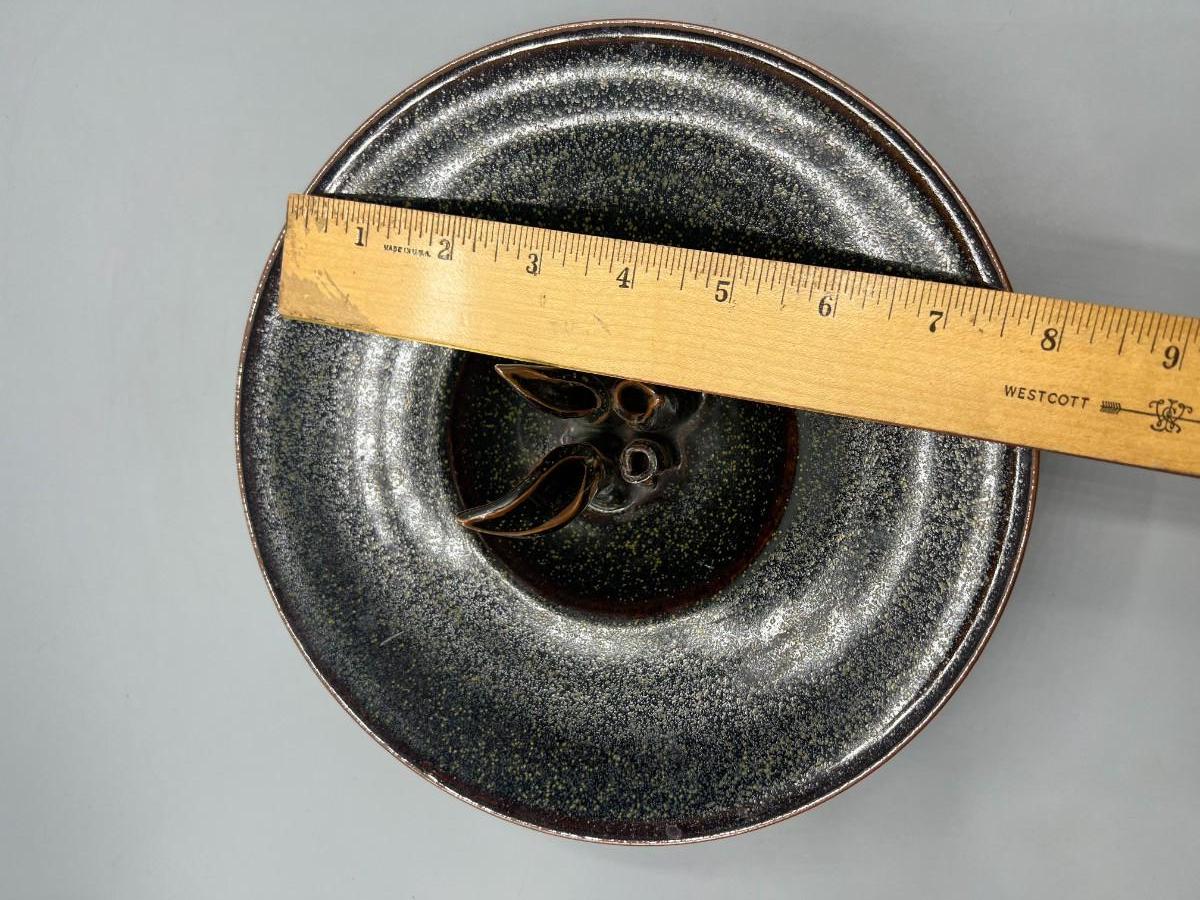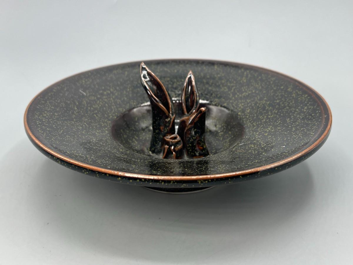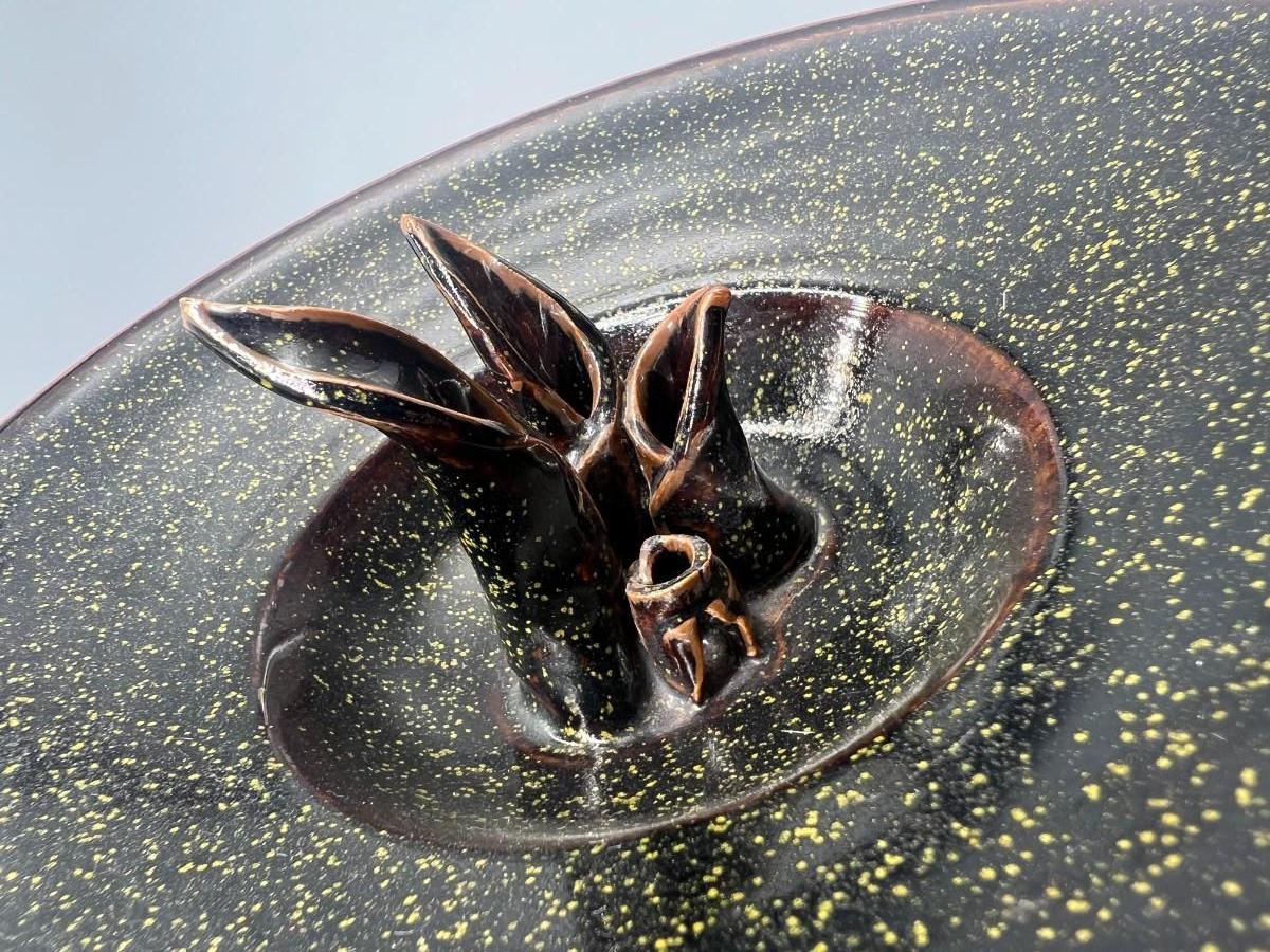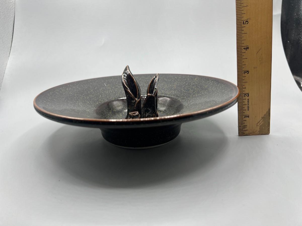 Contemporary Abstract Zen Incense Holder Pottery Artwork Signed Speckled Stem Flower Bowl