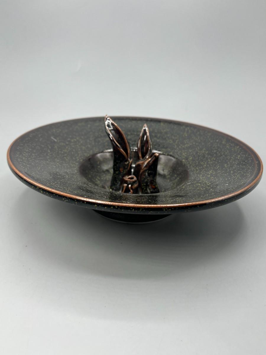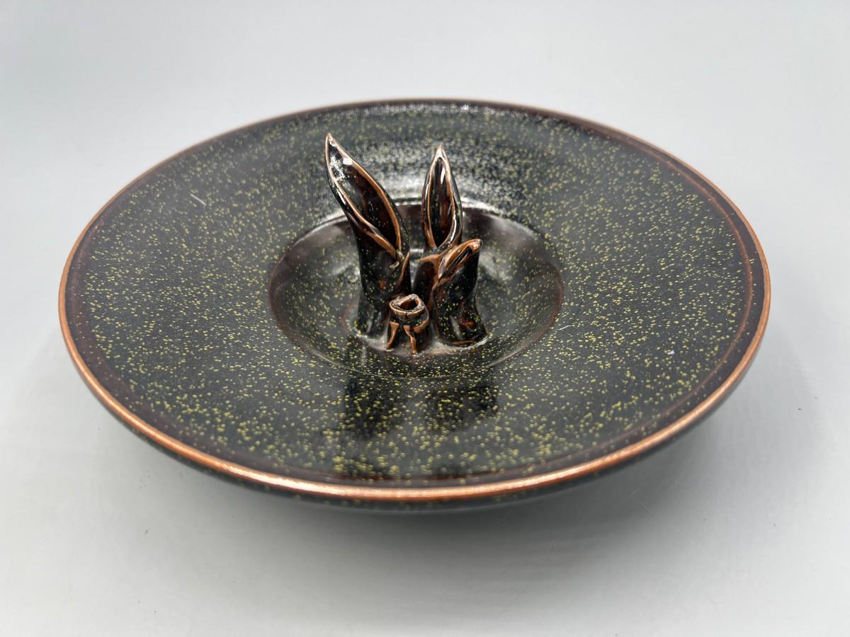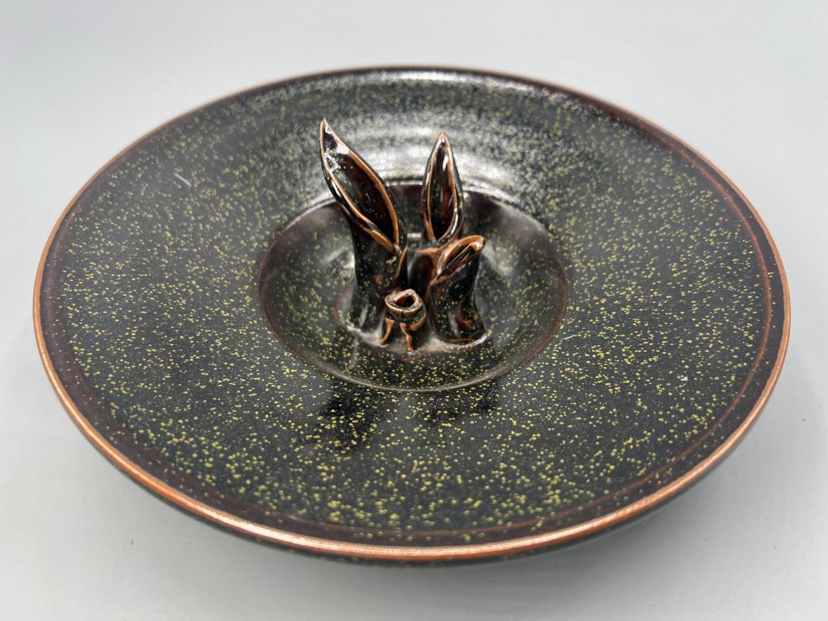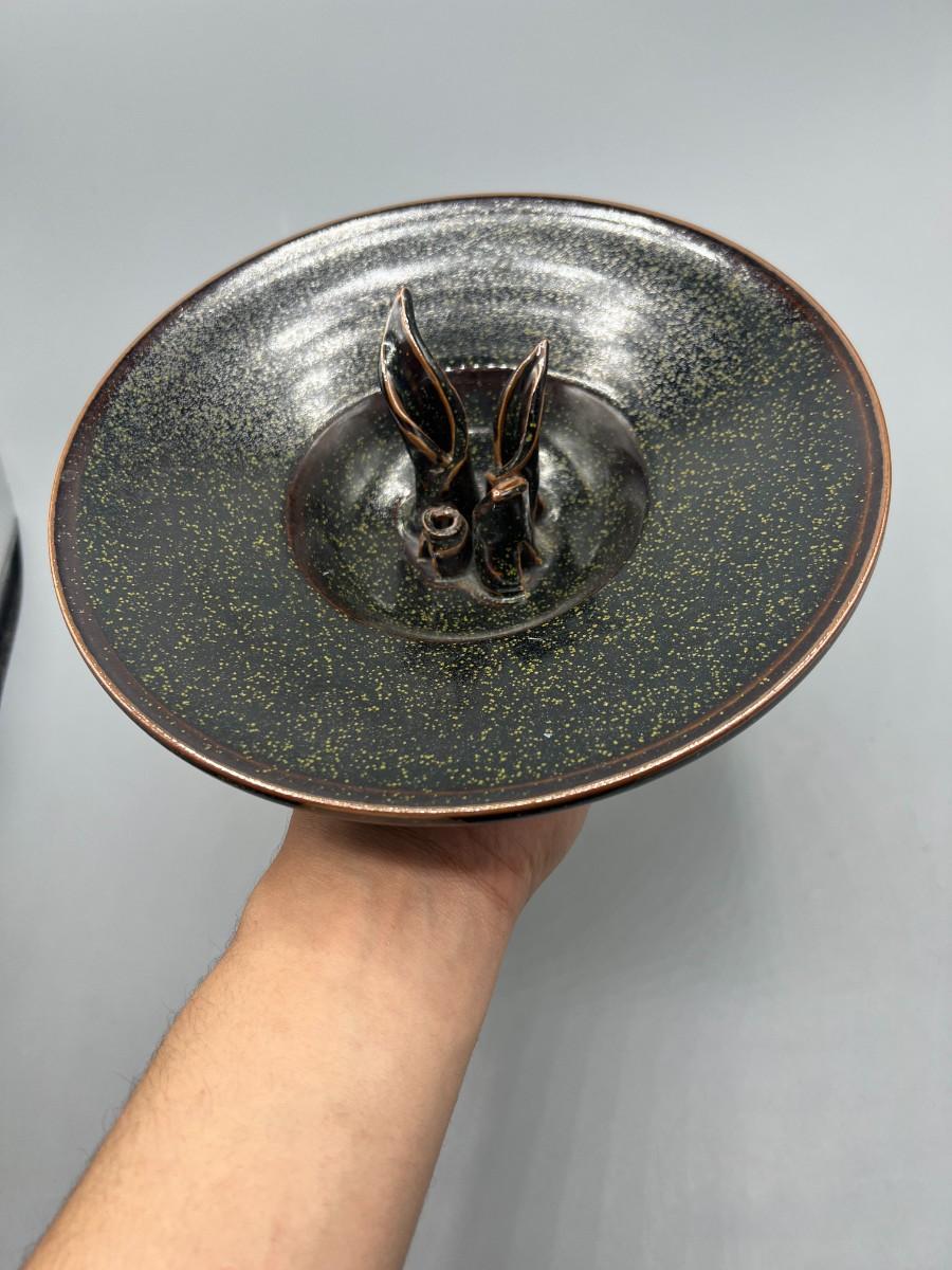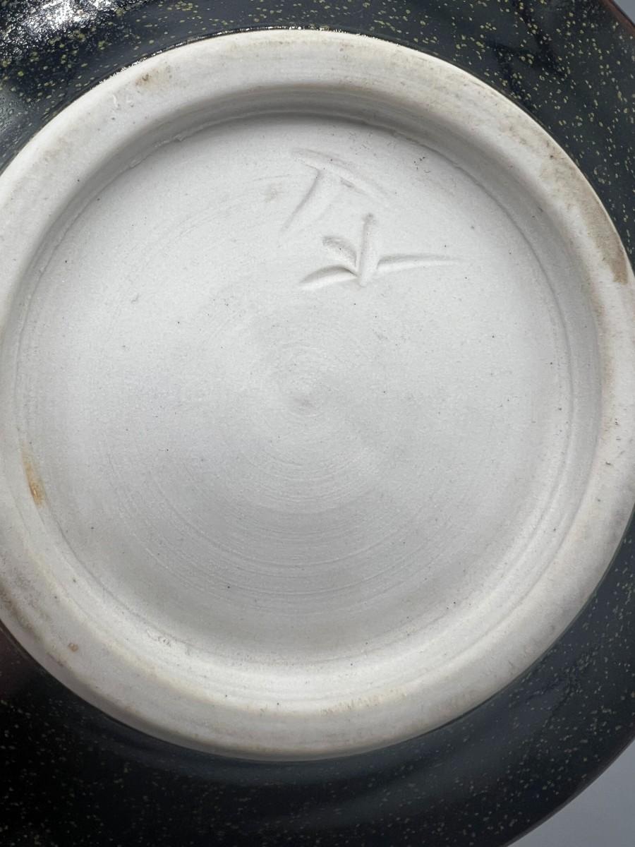 Contemporary Abstract Zen Incense Holder Pottery Artwork Signed Speckled Stem Flower Bowl