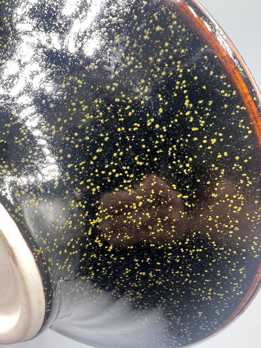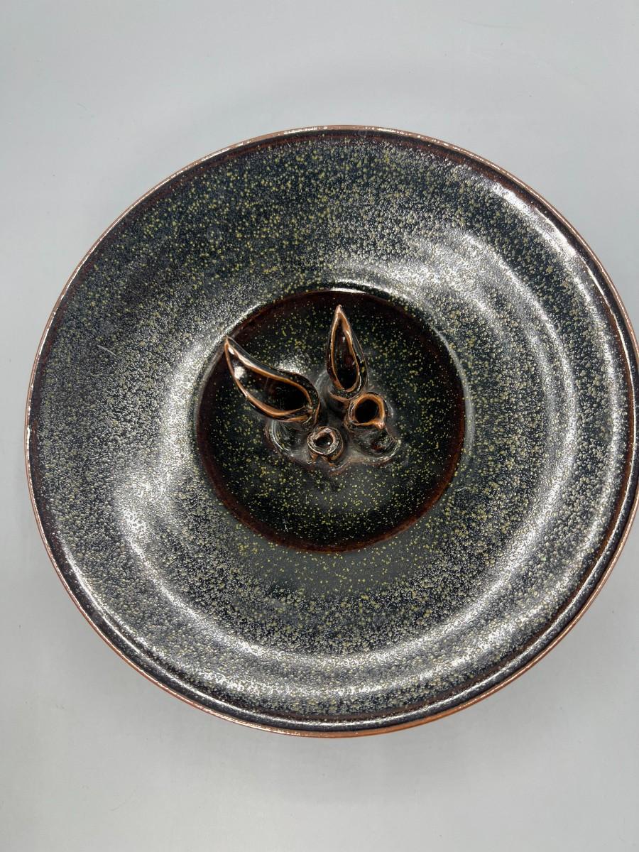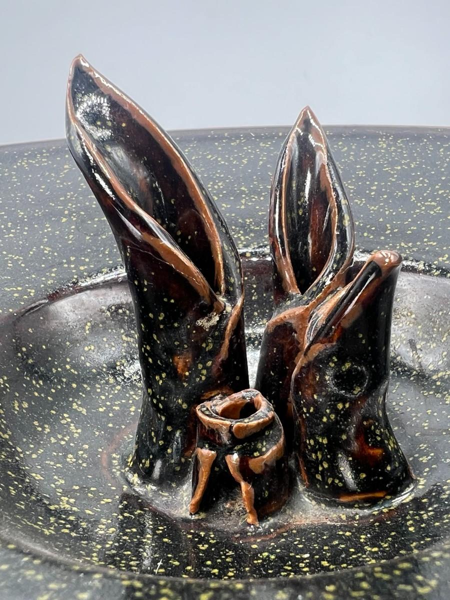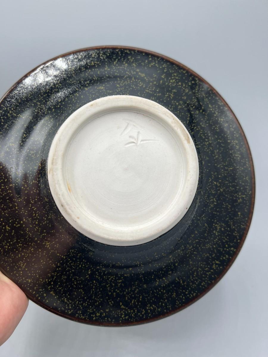 Contemporary Abstract Zen Incense Holder Pottery Artwork Signed Speckled Stem Flower Bowl