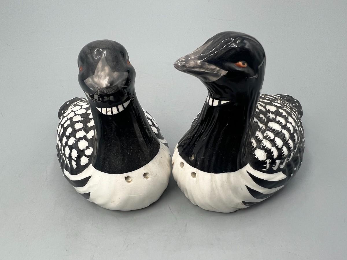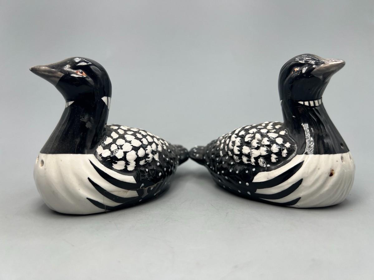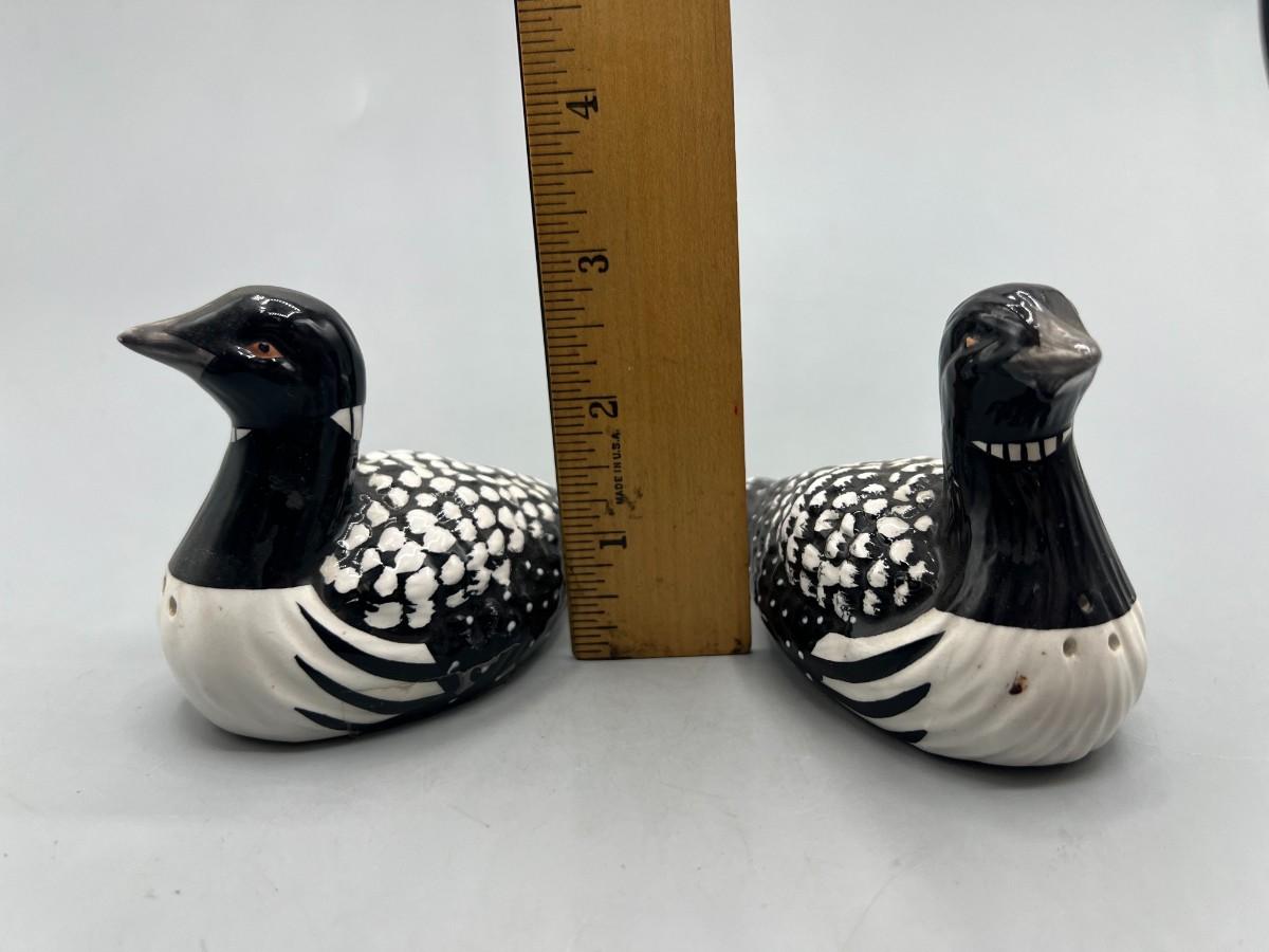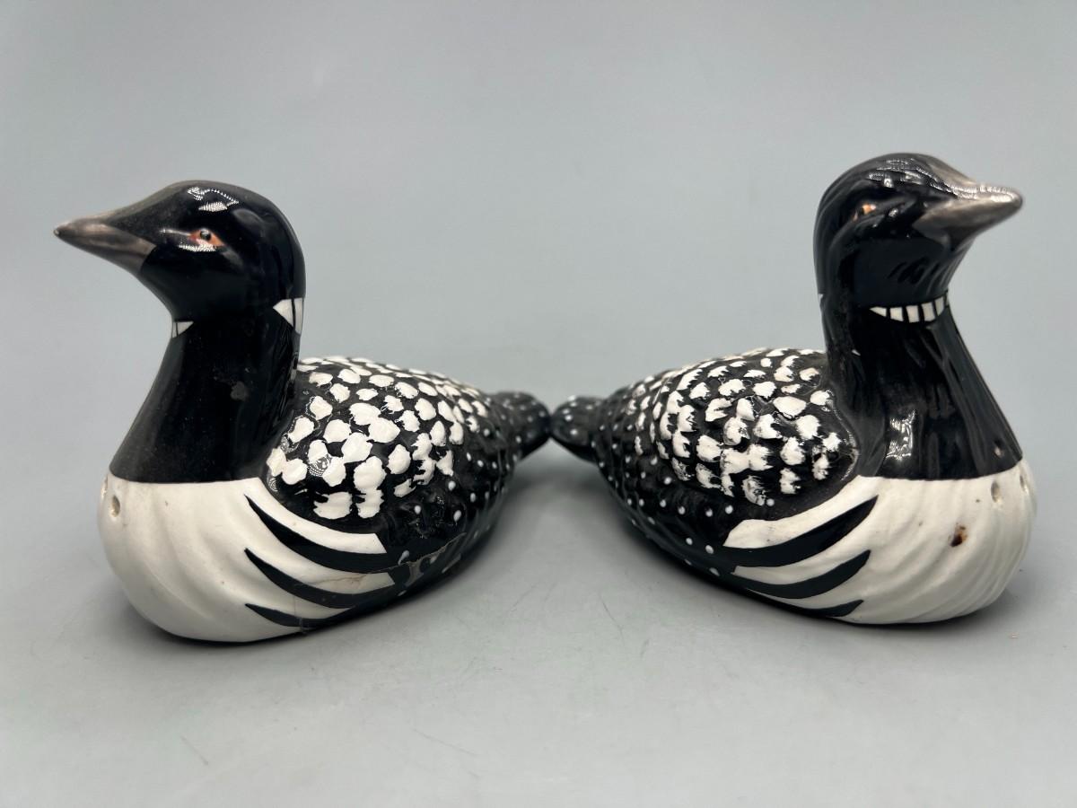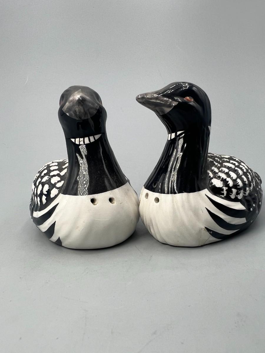 Retro Loon Mallard Duck Salt & Pepper Shakers Ceramic black white