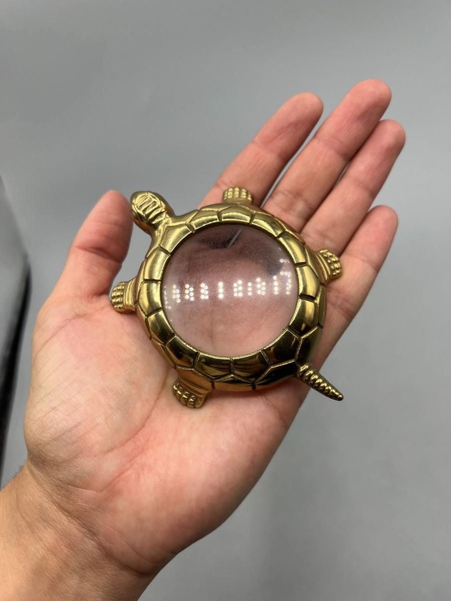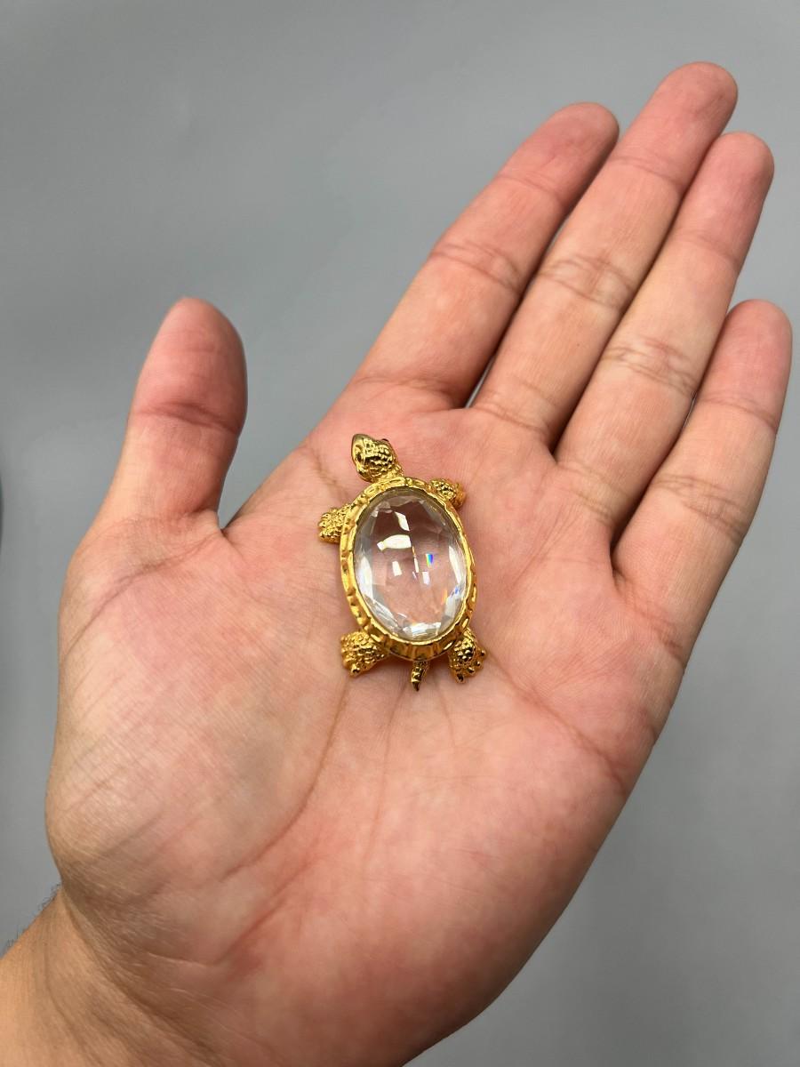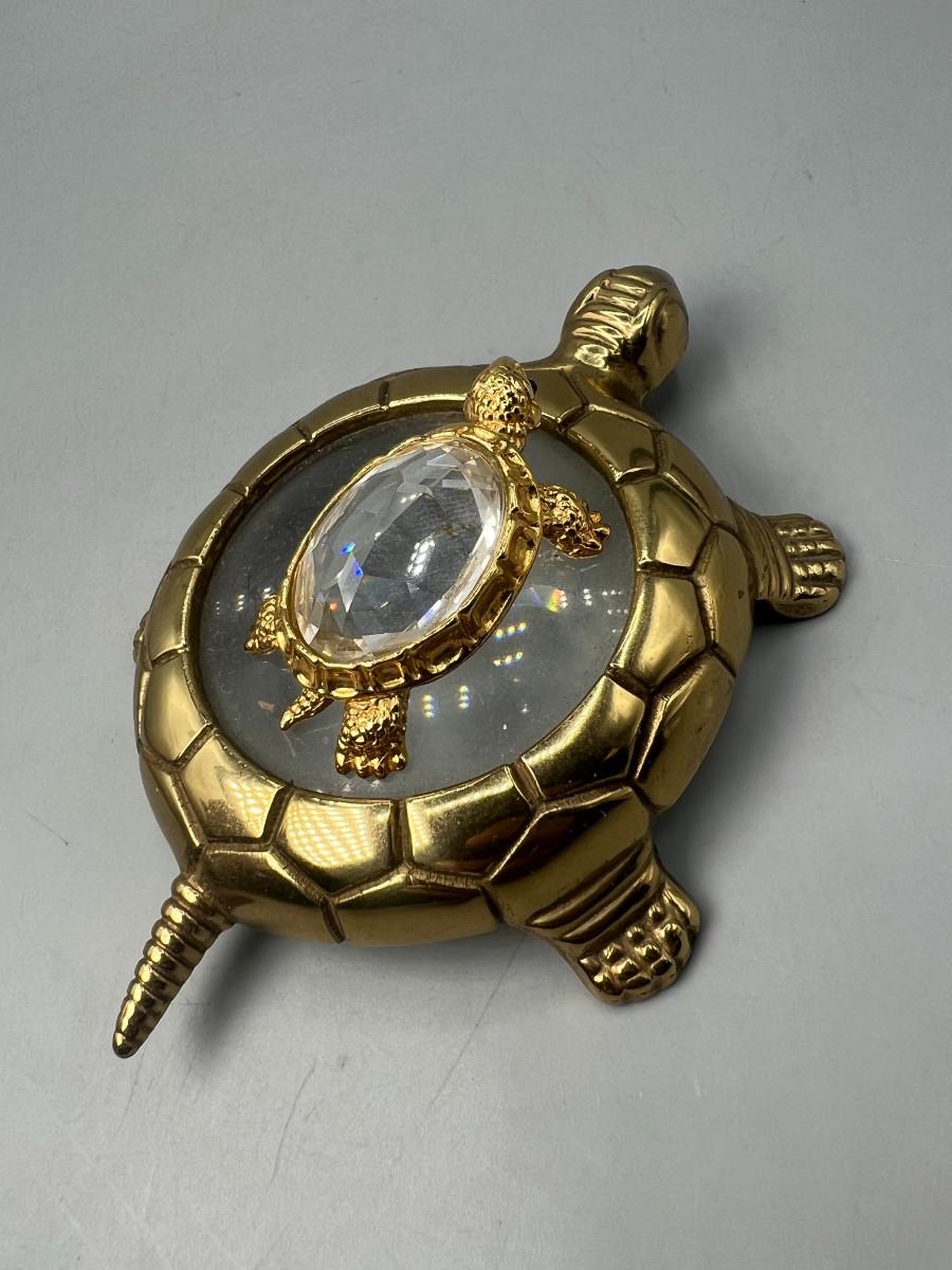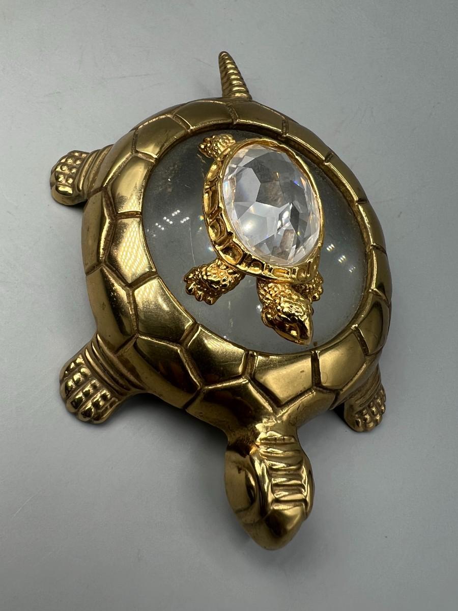 Gold Metal Tortoise Desktop Magnifying Glass & Small Turtle Faux Clear Jewel Trinket Piece