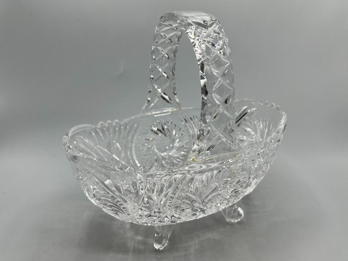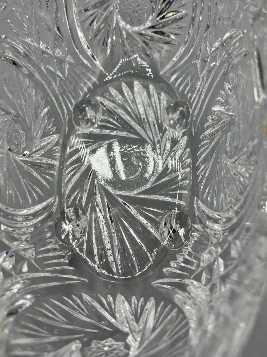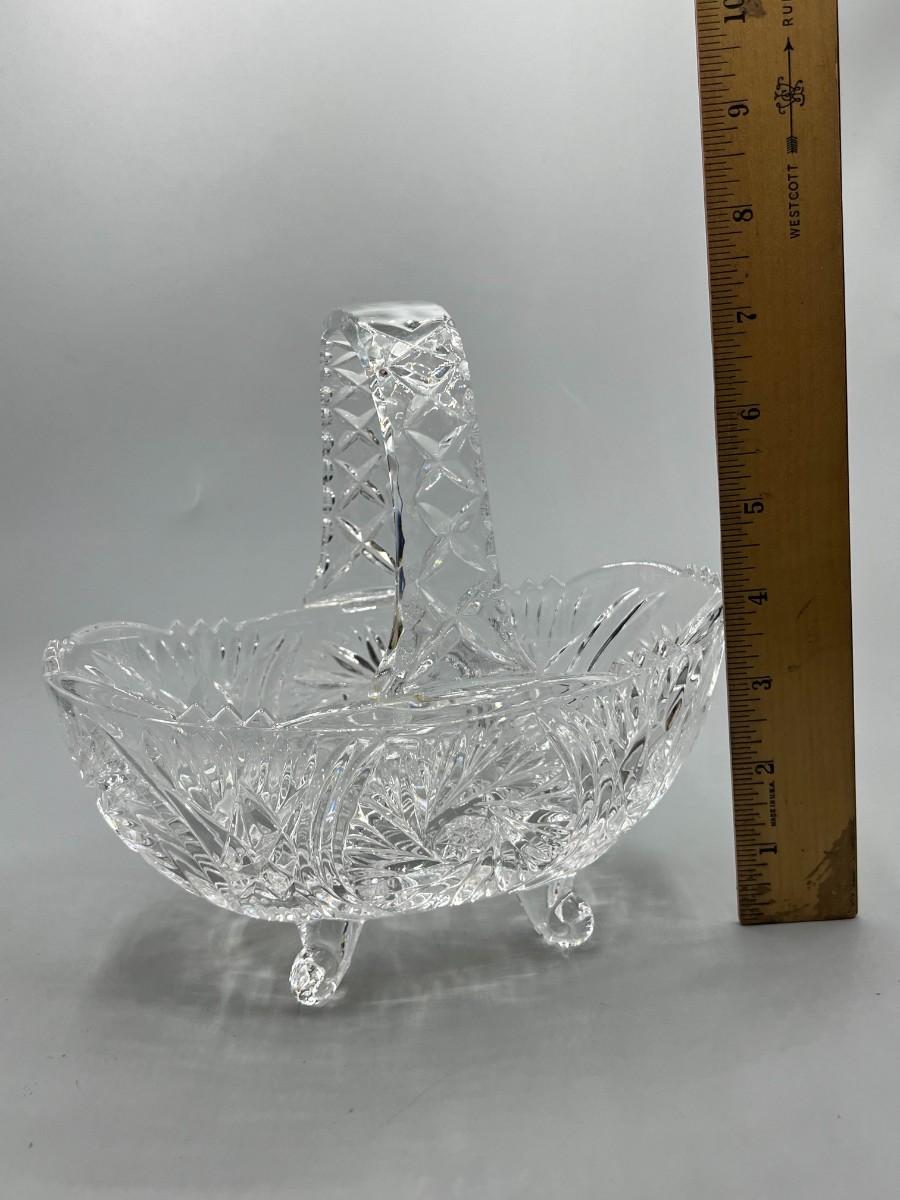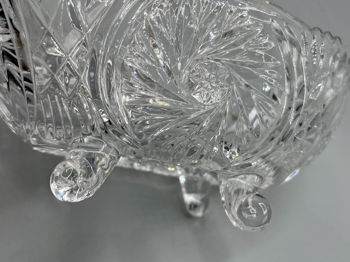 Small Vintage Etched Crystal Glass Footed Trinket Display Bowl