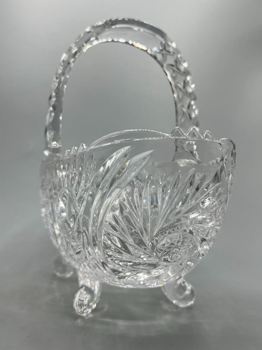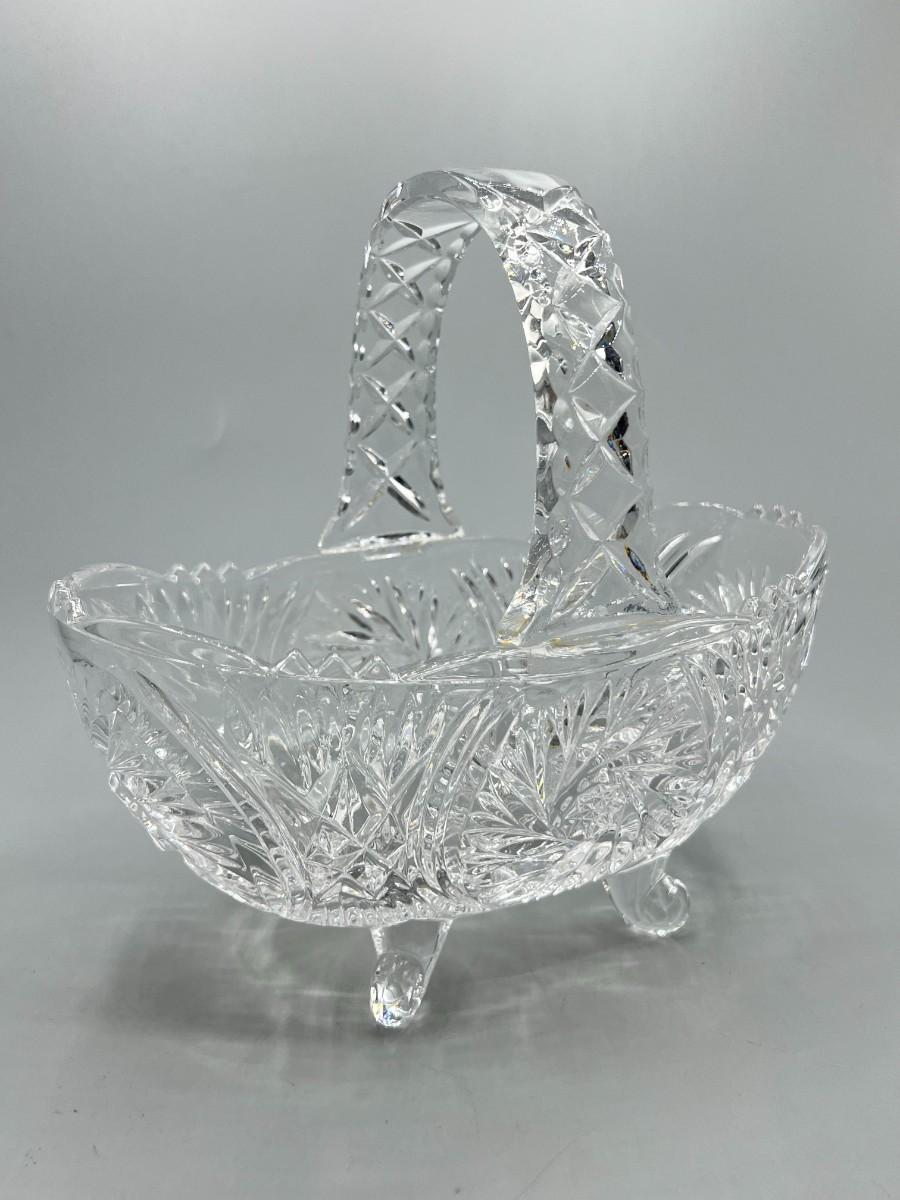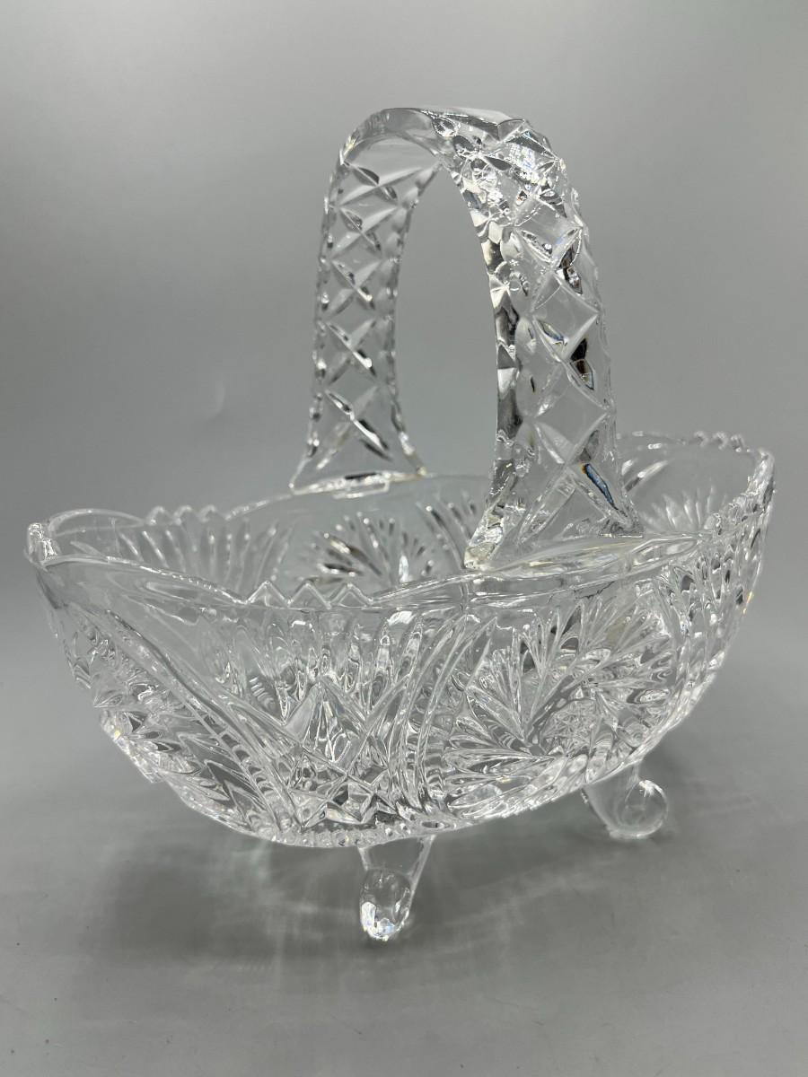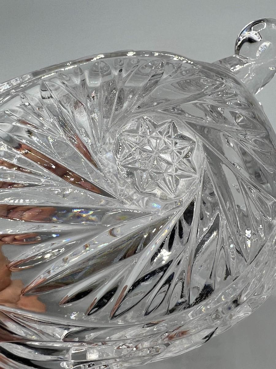 Small Vintage Etched Crystal Glass Footed Trinket Display Bowl