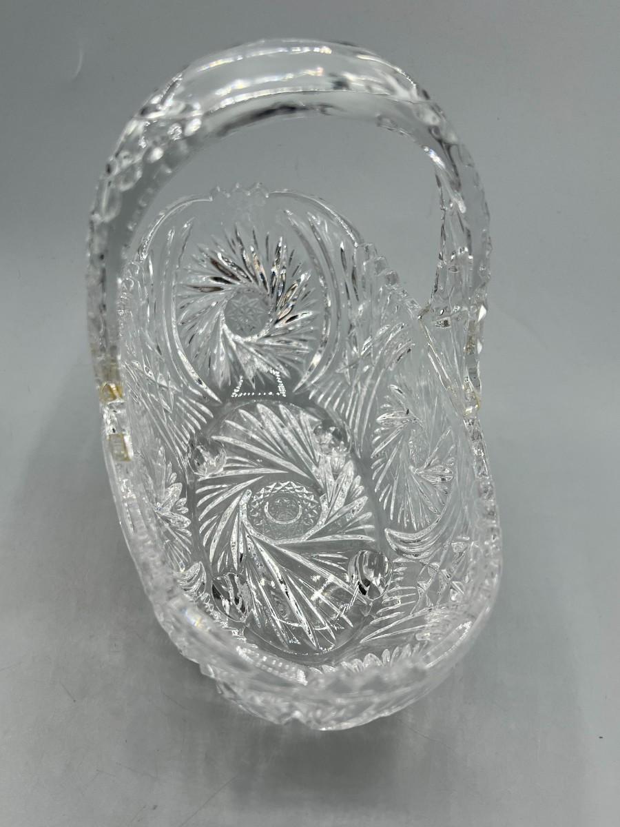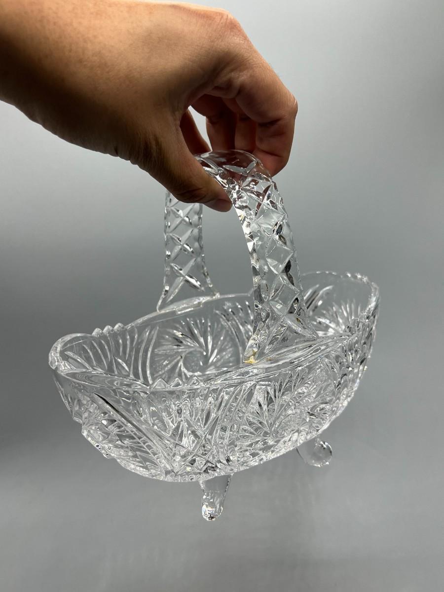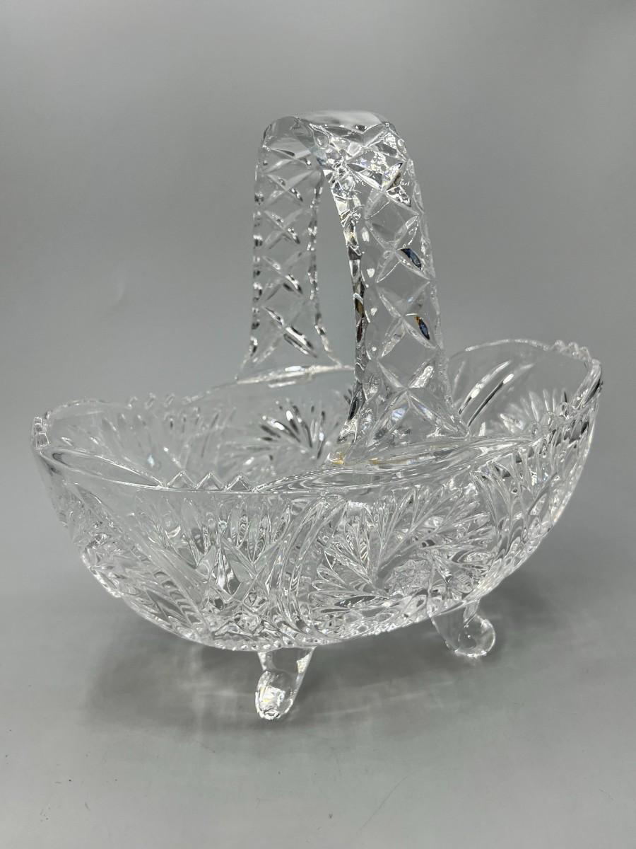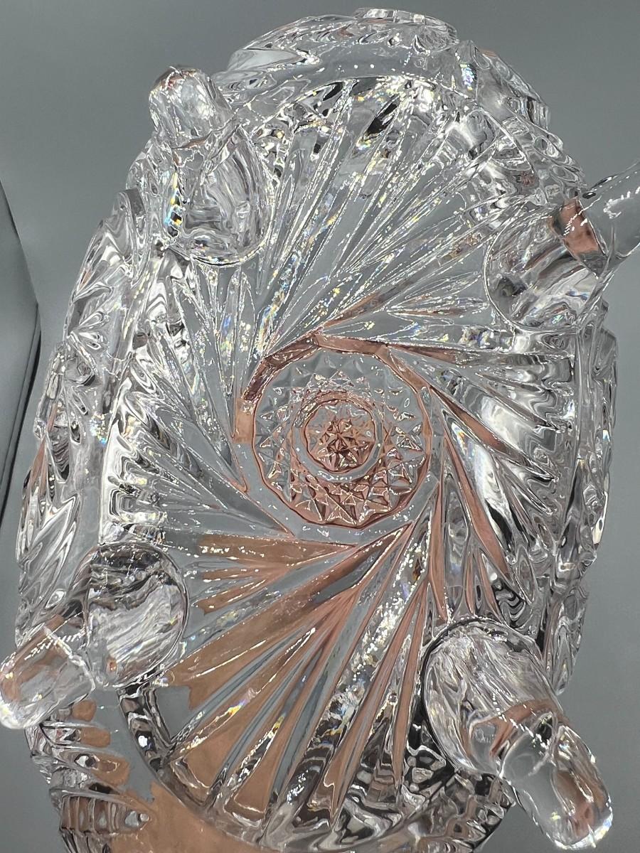 Small Vintage Etched Crystal Glass Footed Trinket Display Bowl