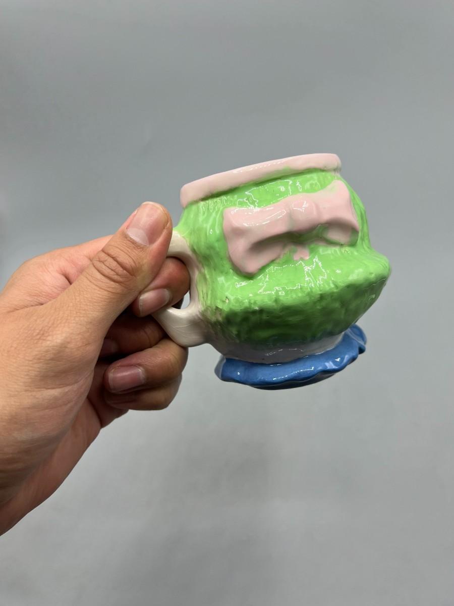 Ceramic Circus Playful Clown Pink Bow Tie Vintage Coffee Mug