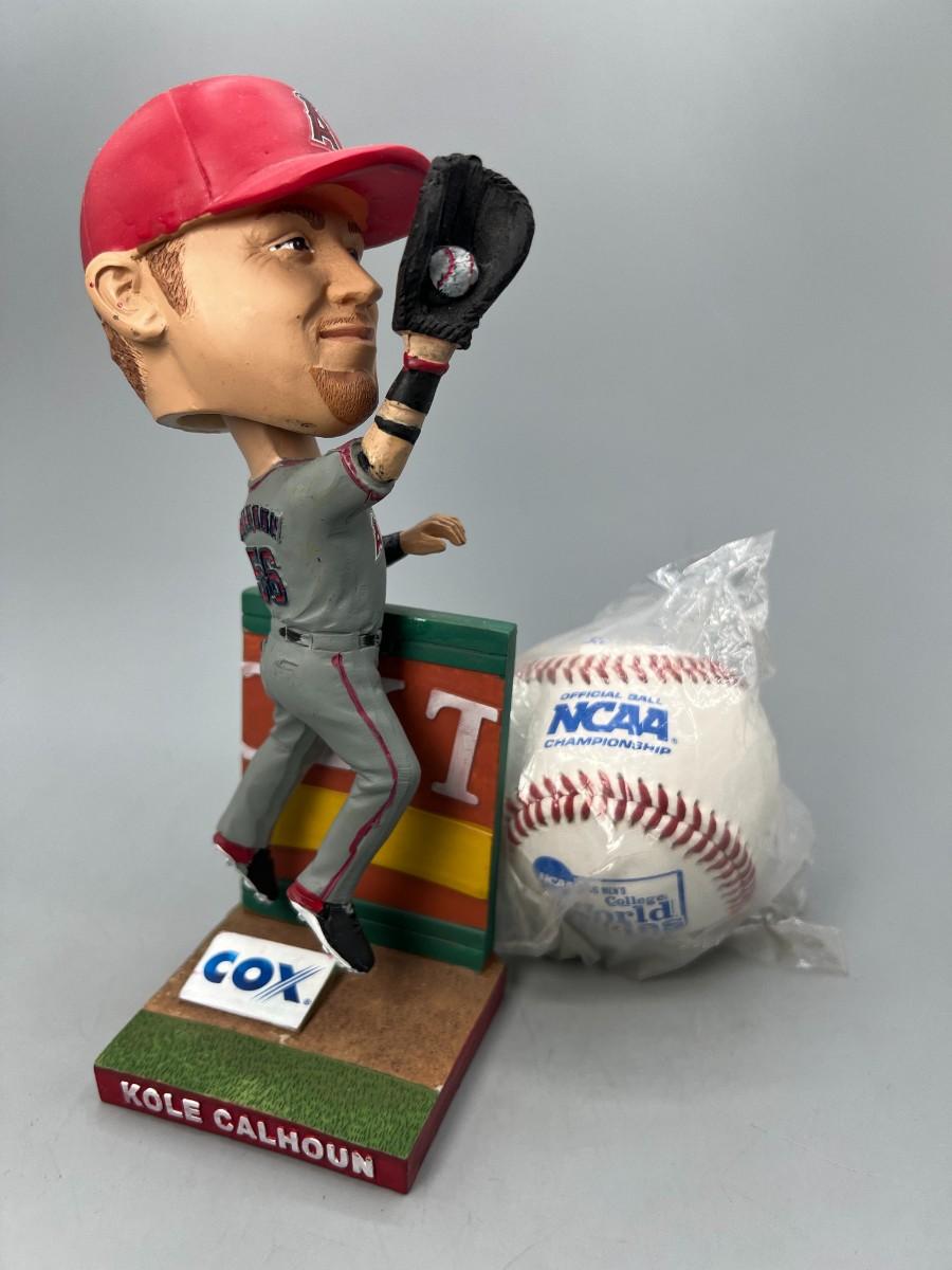 MLB Angels Kole Calhoun Bobblehead & Unopened NCAA World Series Baseball