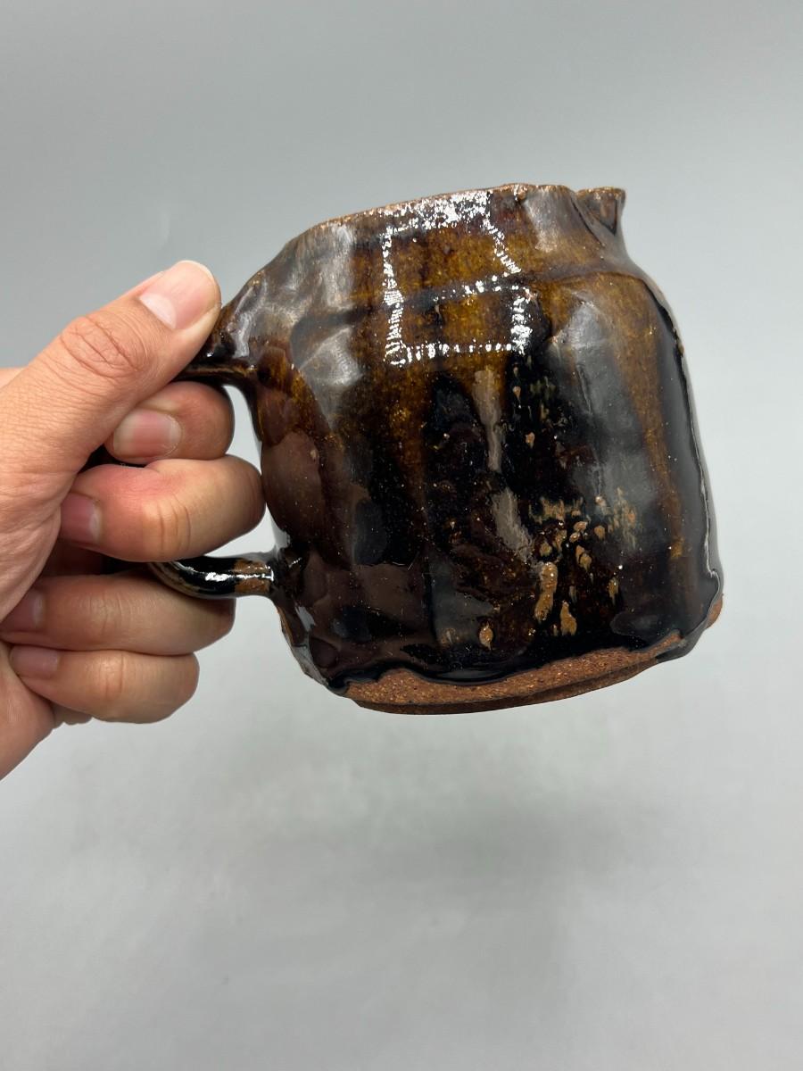 There is no damage to the mug and is in good condition. There are imperfections in the shape, but it is still a an interesting and useable piece!