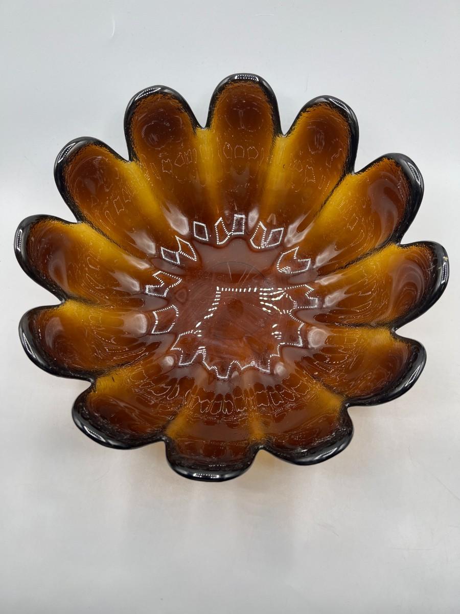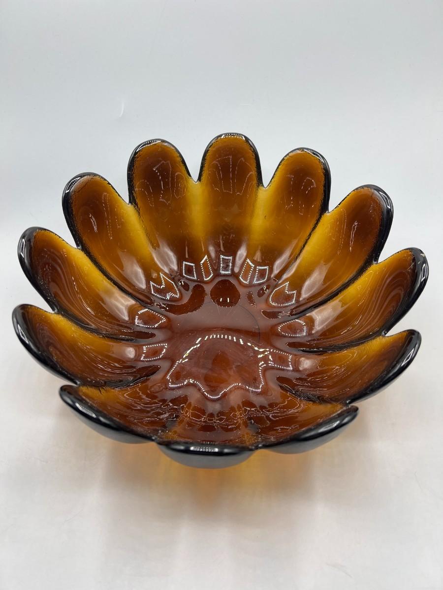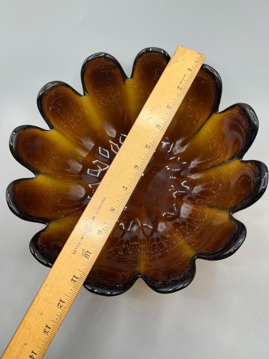 Vintage Mid-Century Indiana Glass Brown Amber Flower Petal Fruit Display Bowl