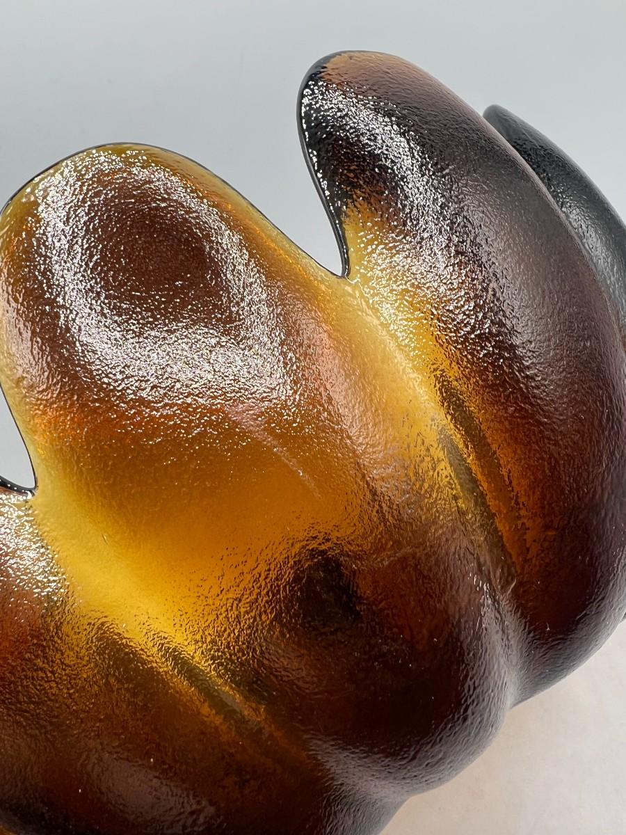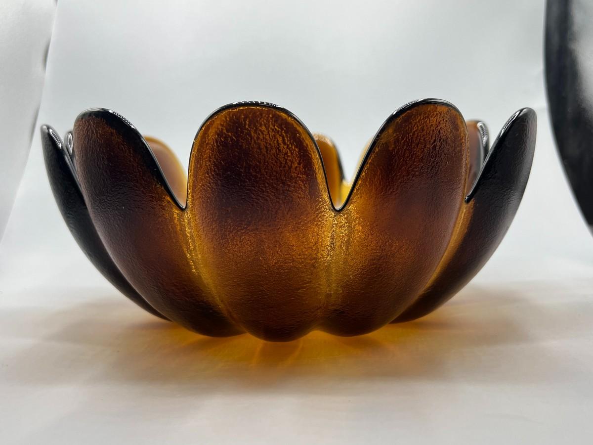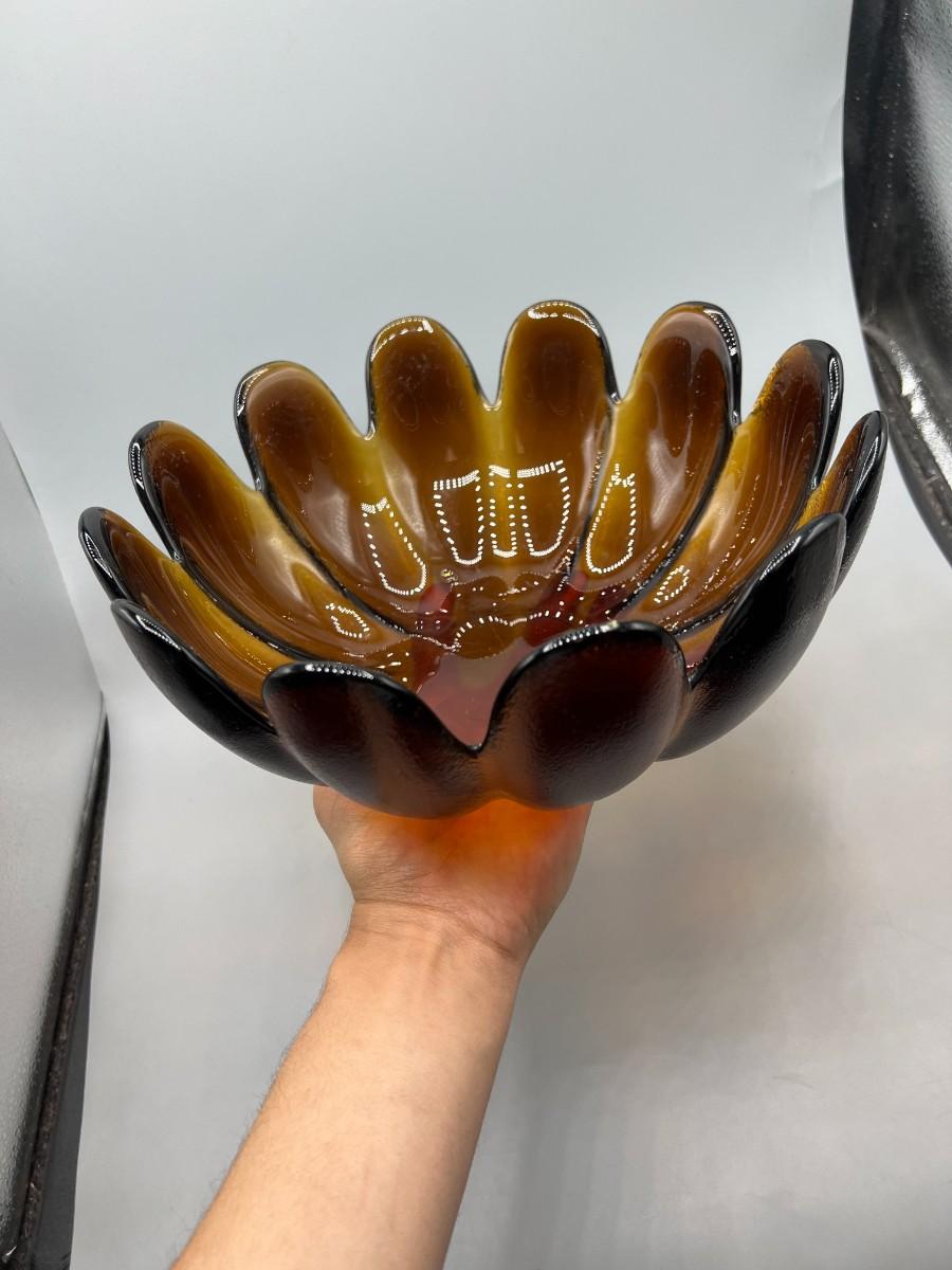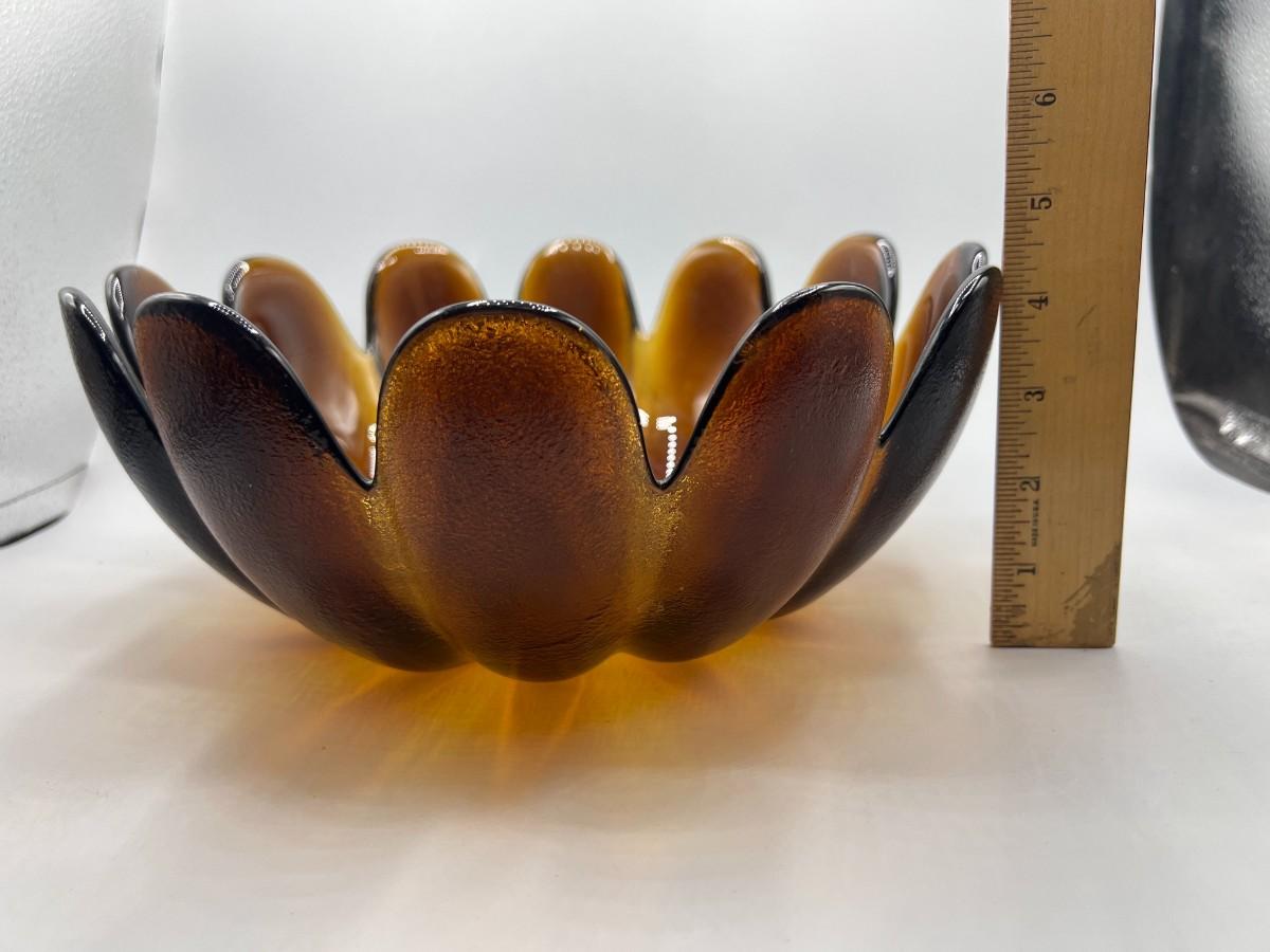 Vintage Mid-Century Indiana Glass Brown Amber Flower Petal Fruit Display Bowl