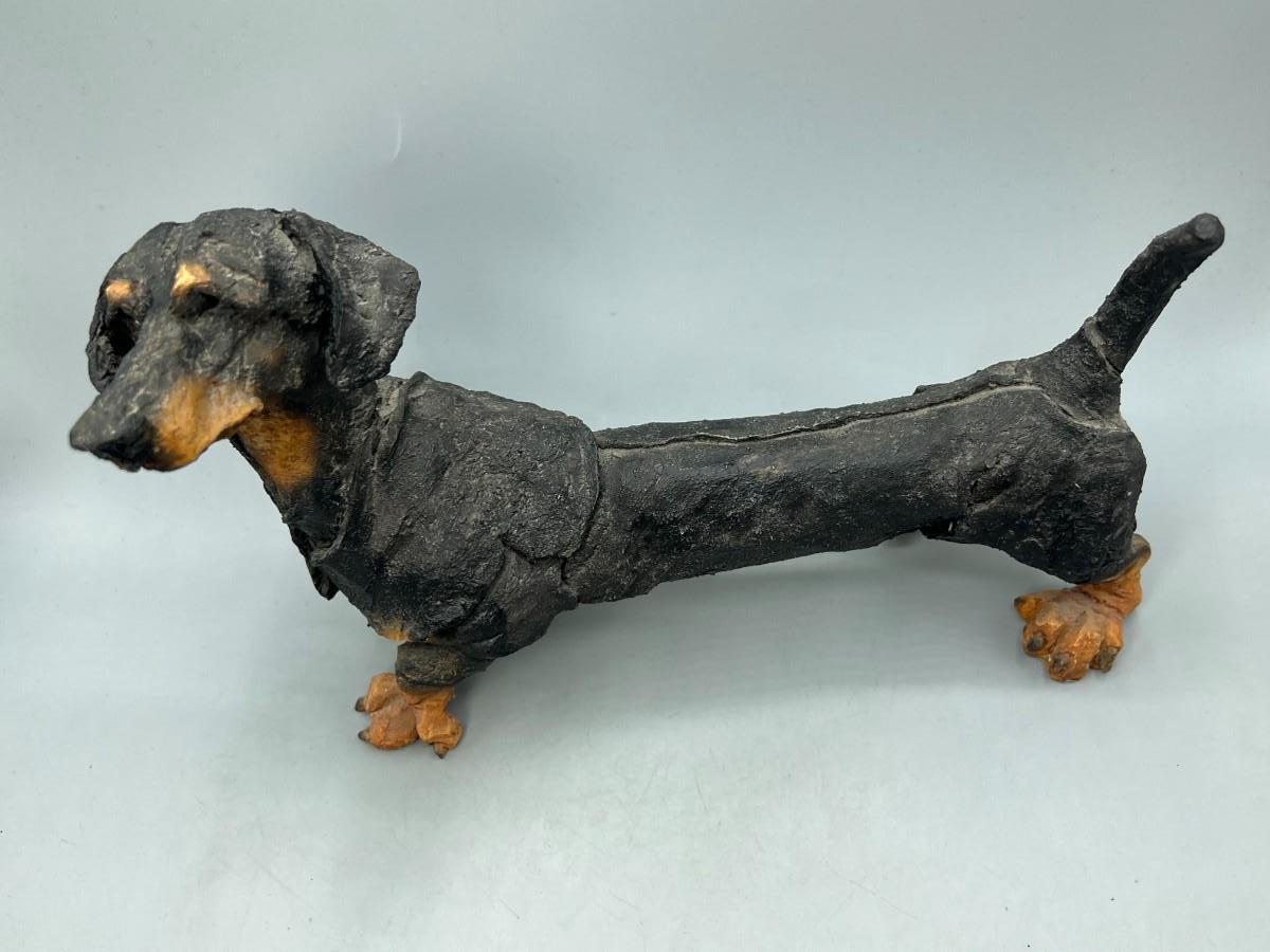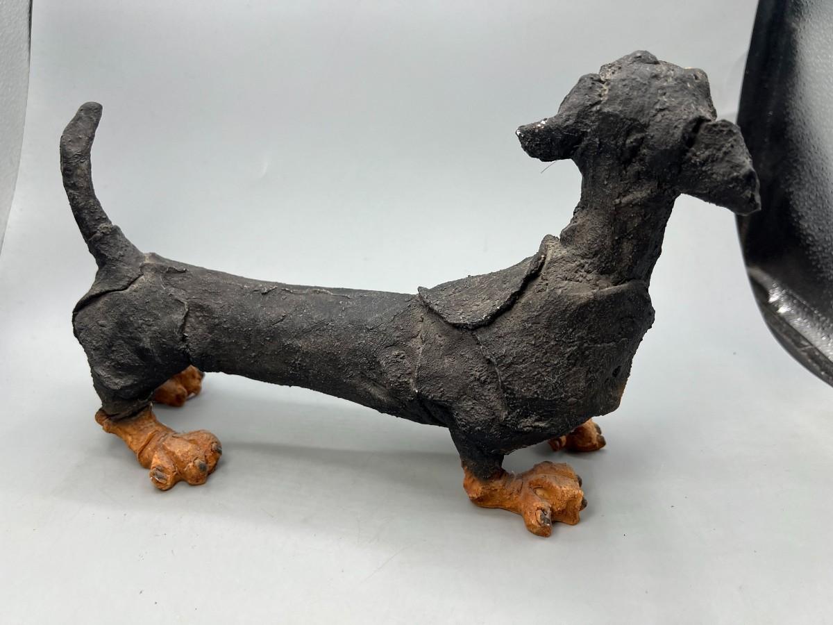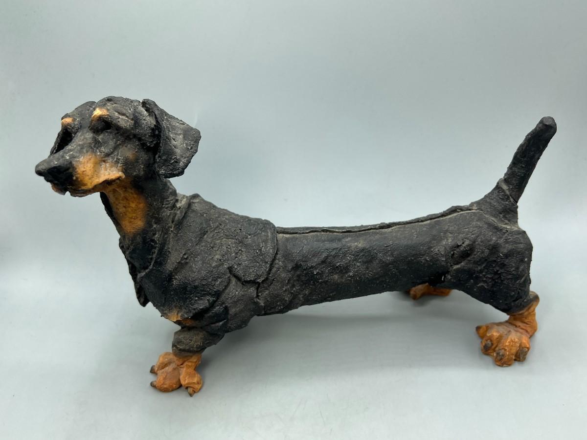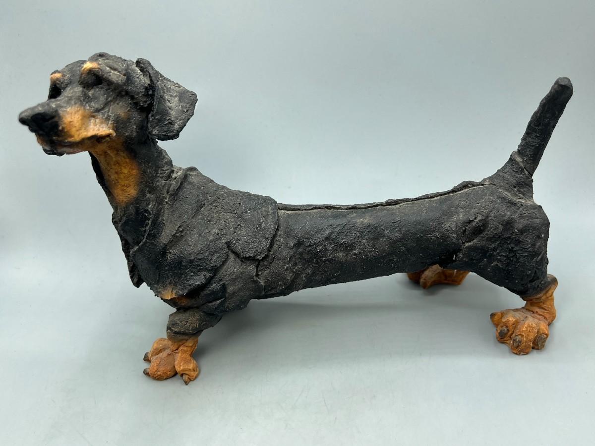Vintage Black and Tan Dachshund Dog Figurine. Fair displayed condition.