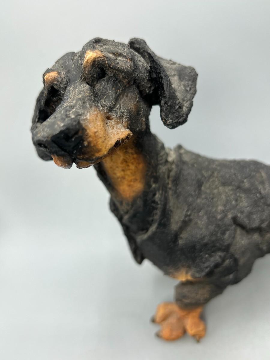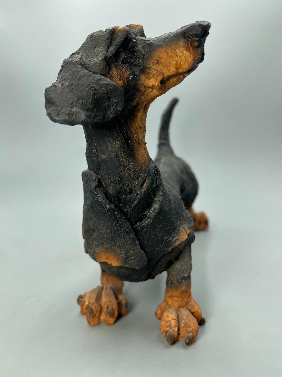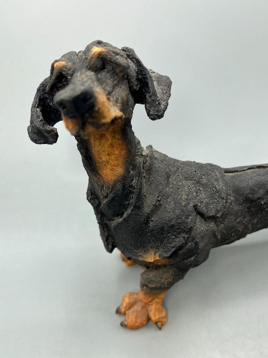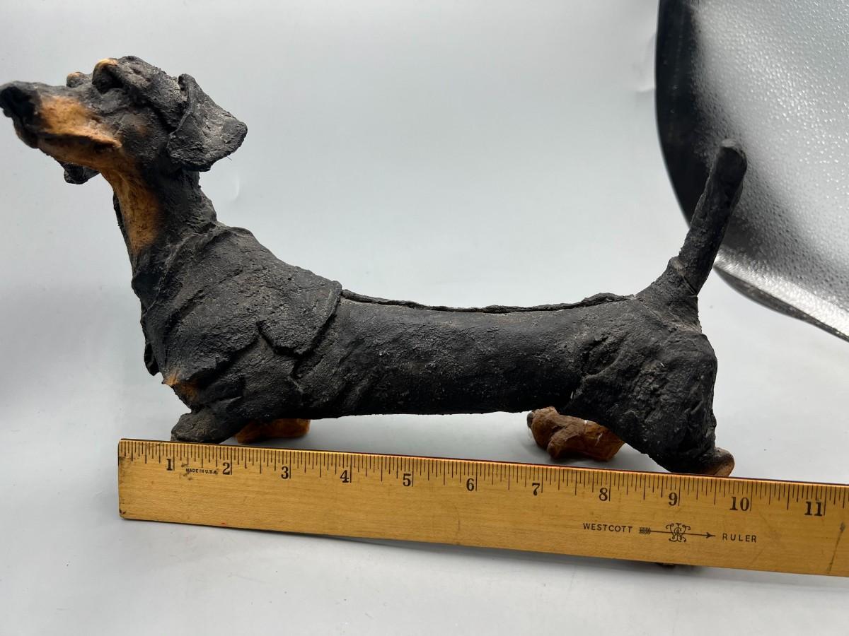 Vintage Black and Tan Dachshund Dog Figurine. Fair displayed condition.