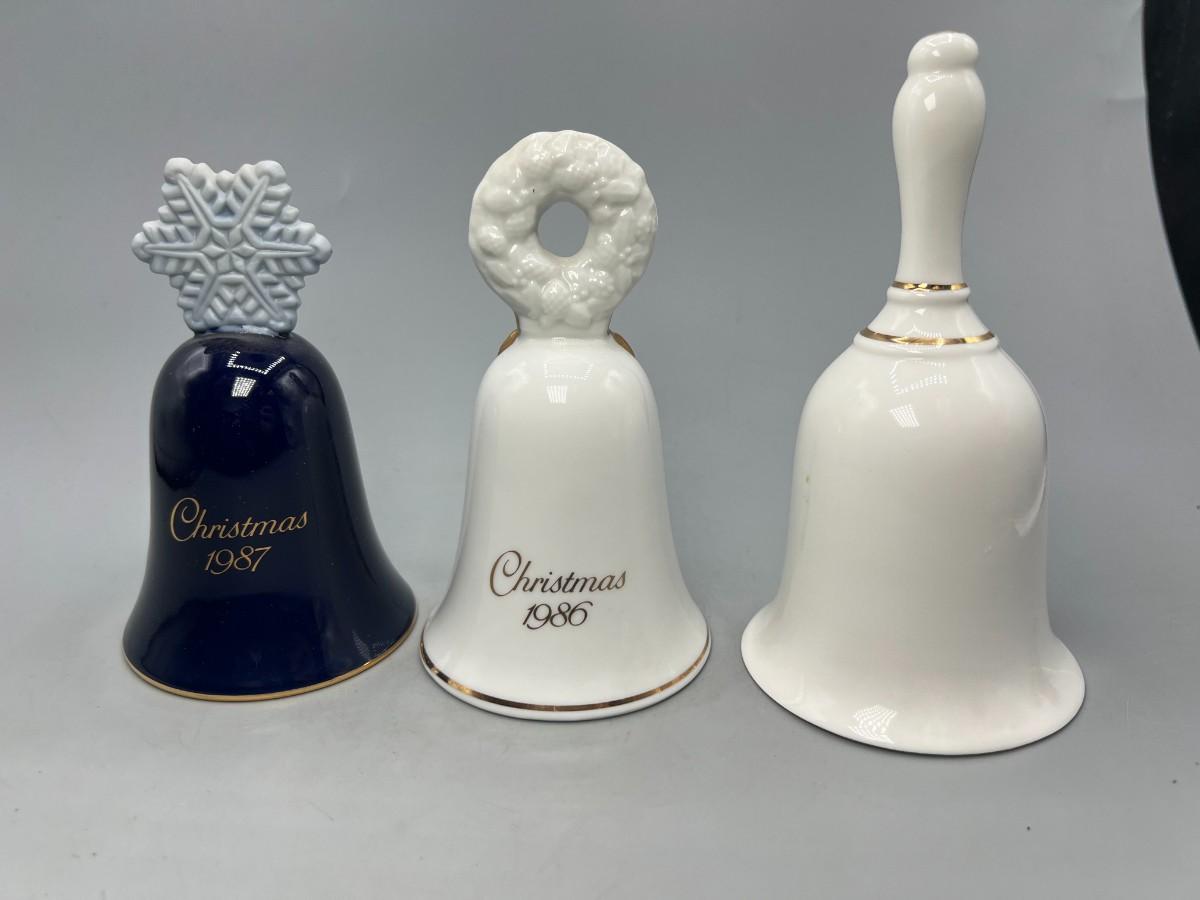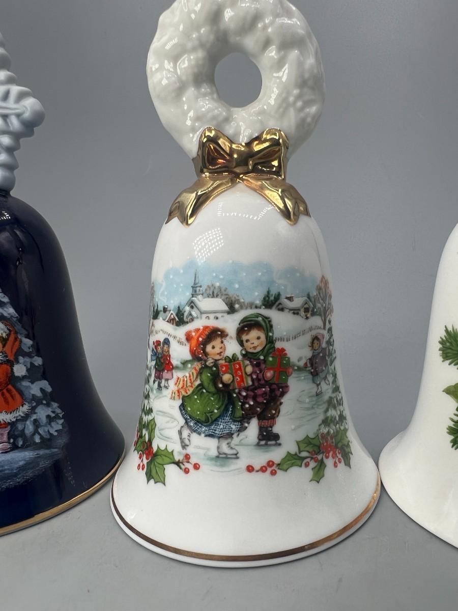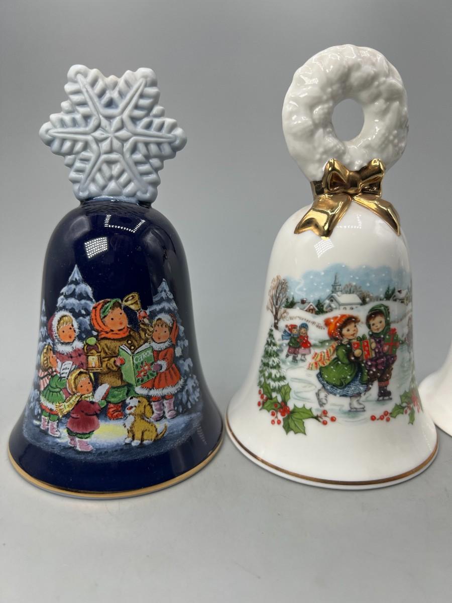 Set of Three Ceramic Porcelain Christmas Holiday Seasonal Bell Figurines