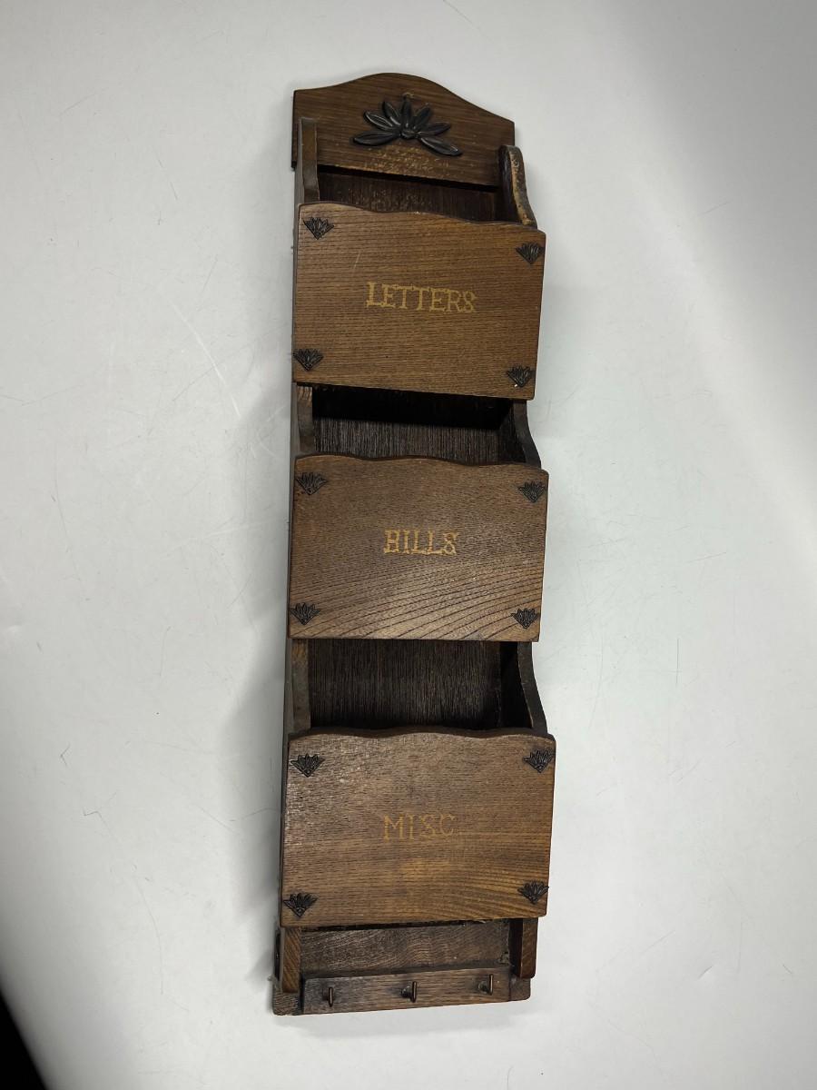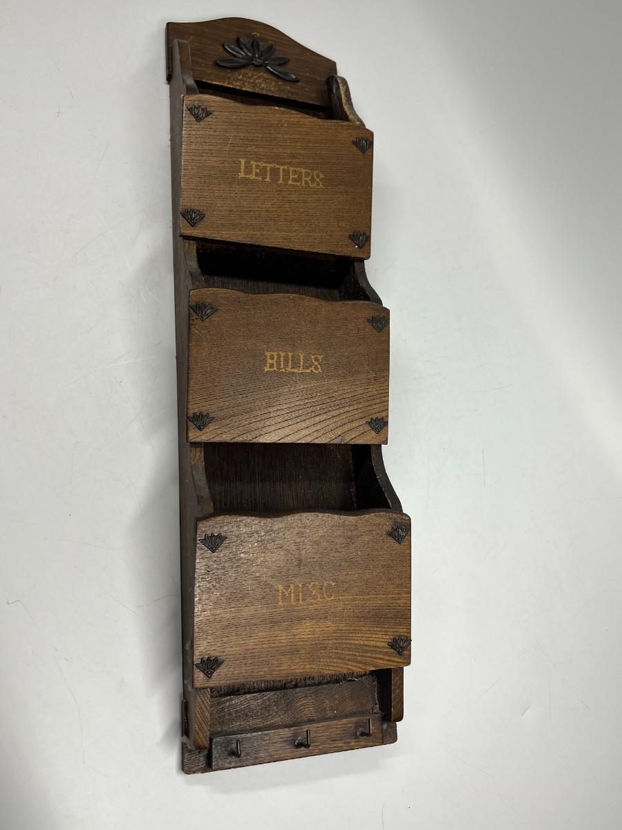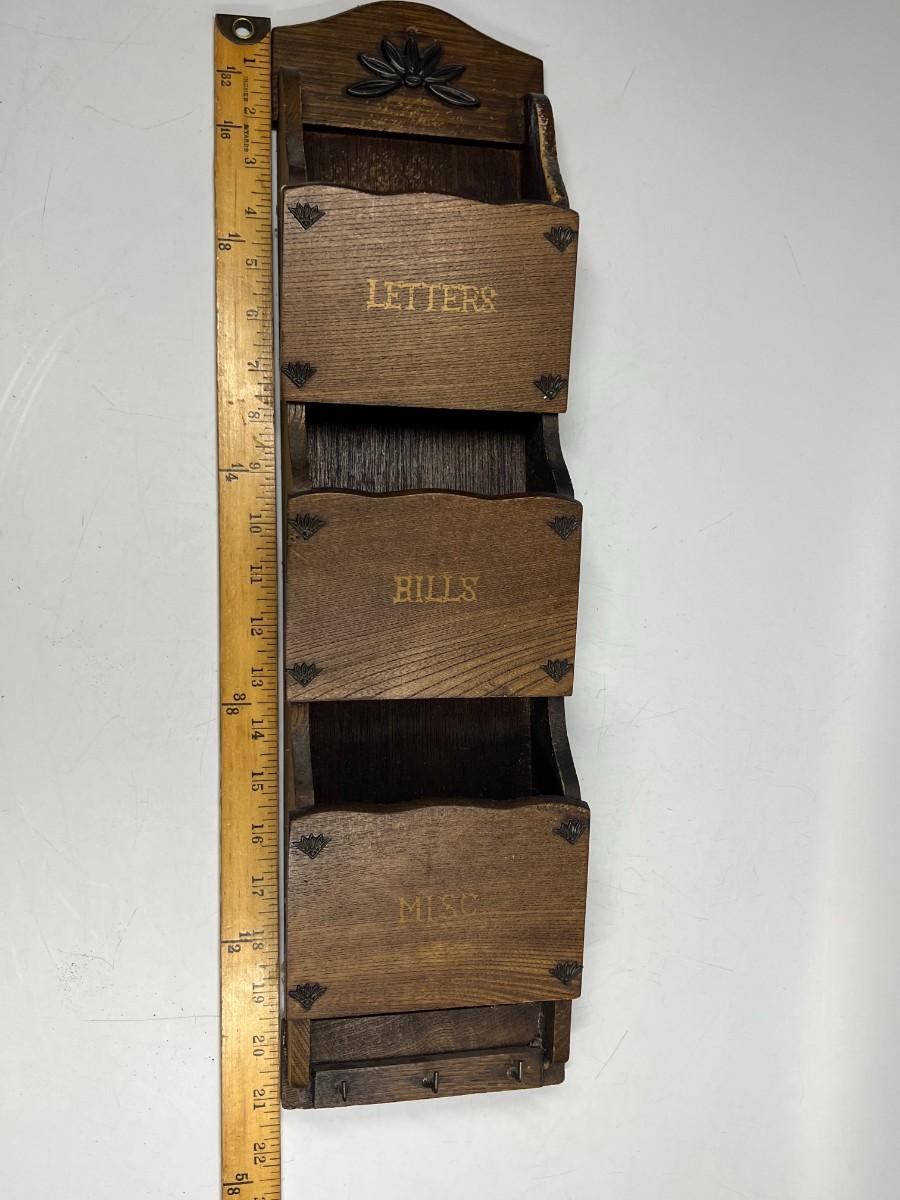 Vintage Retro Wall Hanging Divided Letter Mail Bills Note Holder Organizer. In good vintage condition, light wear/fade to words from age.