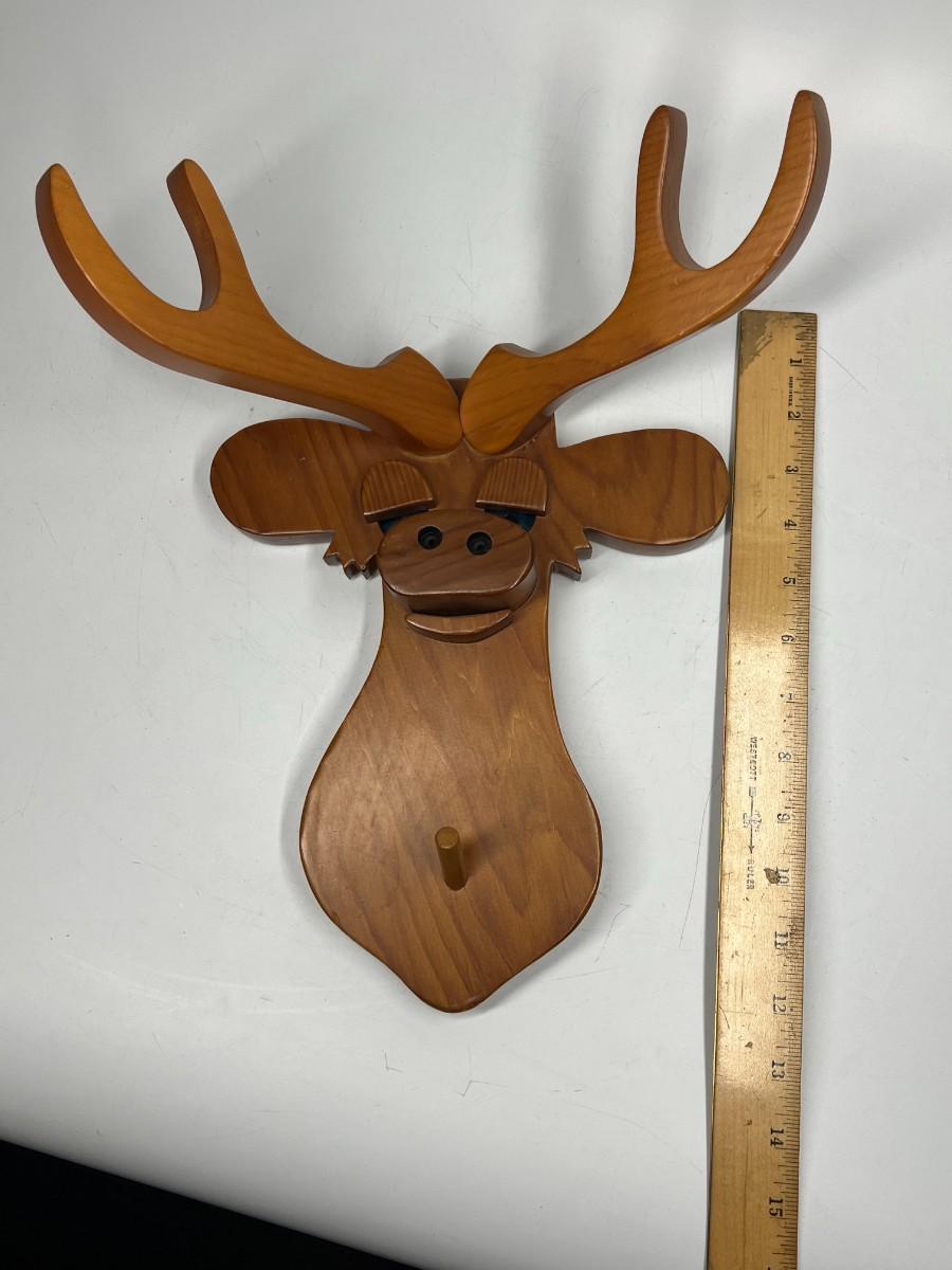 Retro Hand Made Wood Cut Out Deer Buck Mount Wall Hanging with Peg Jacket Hat Holder