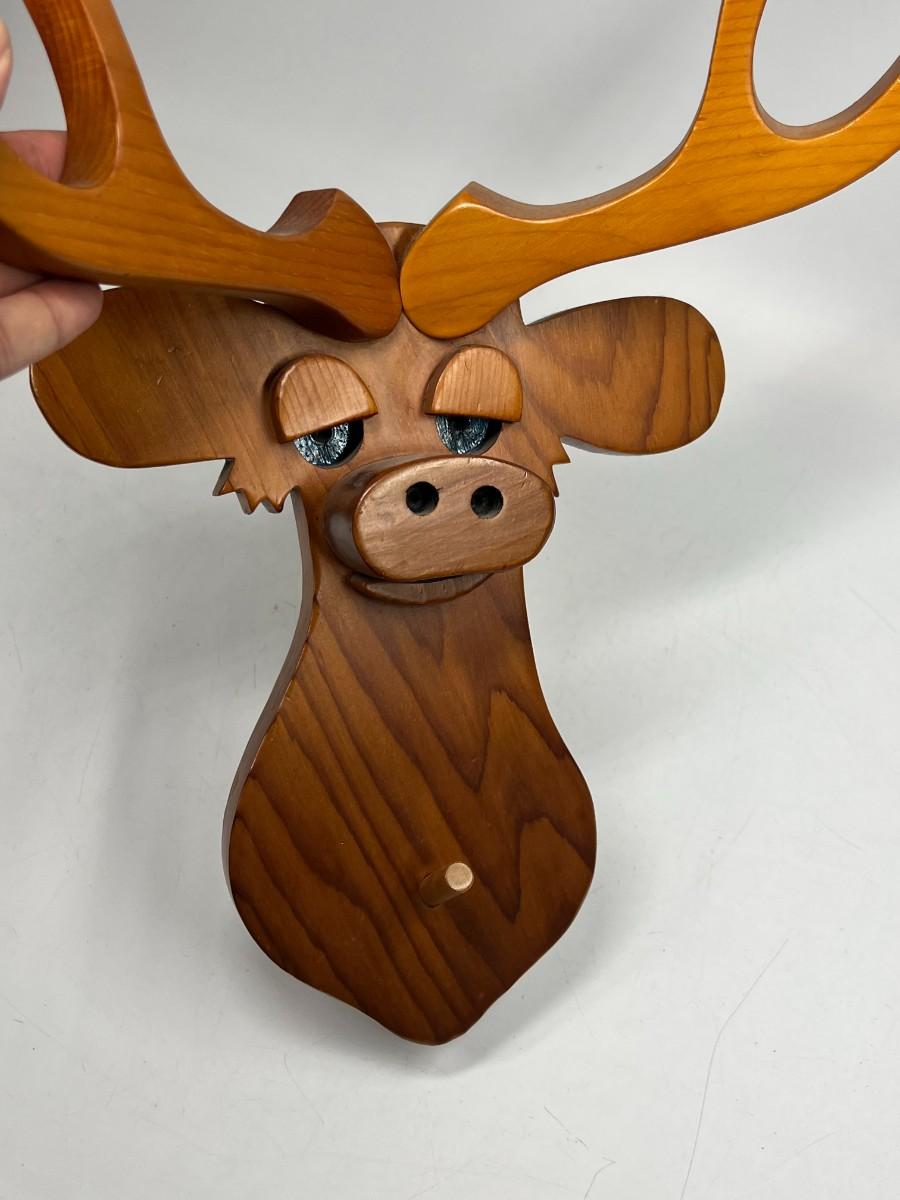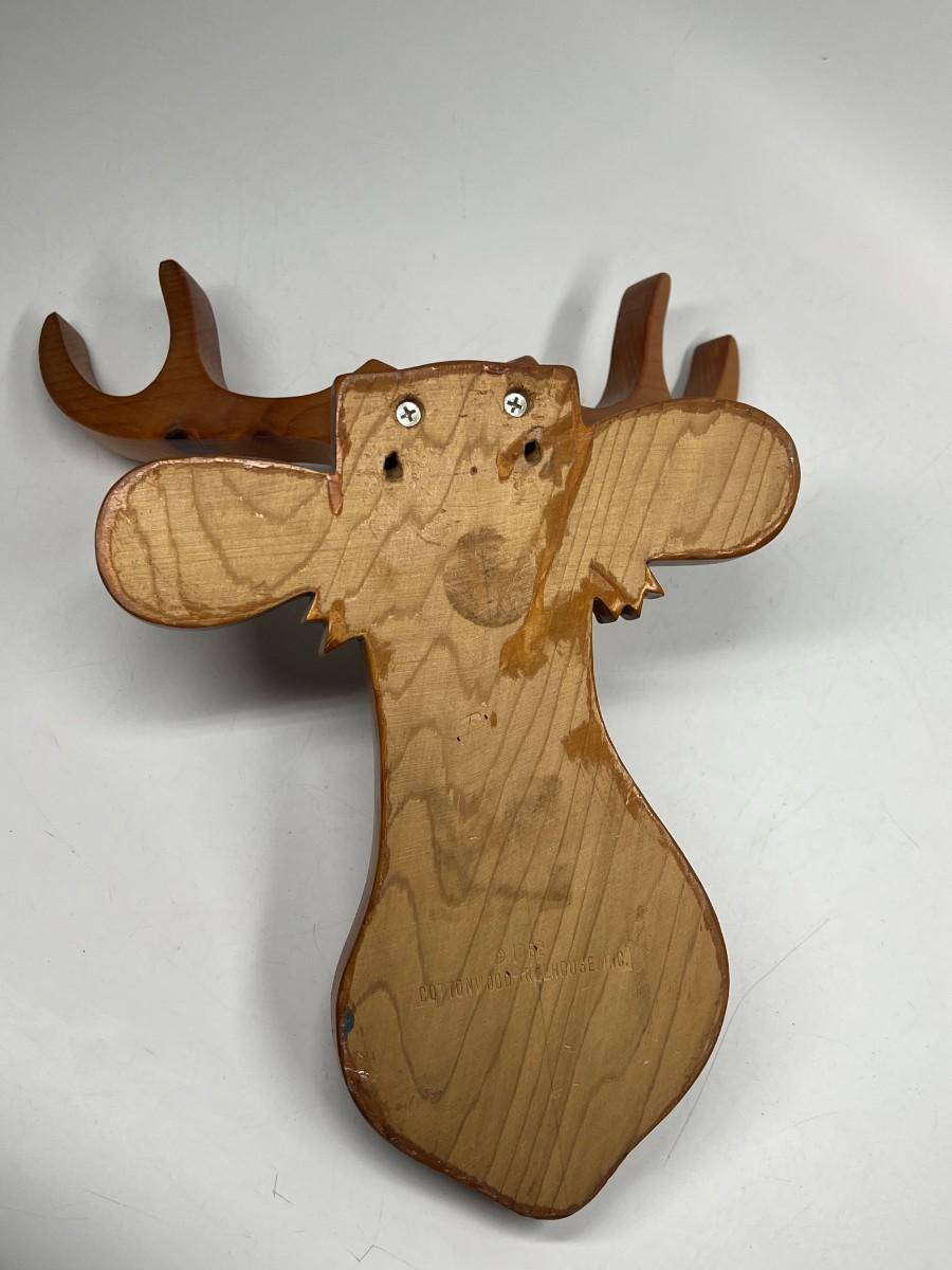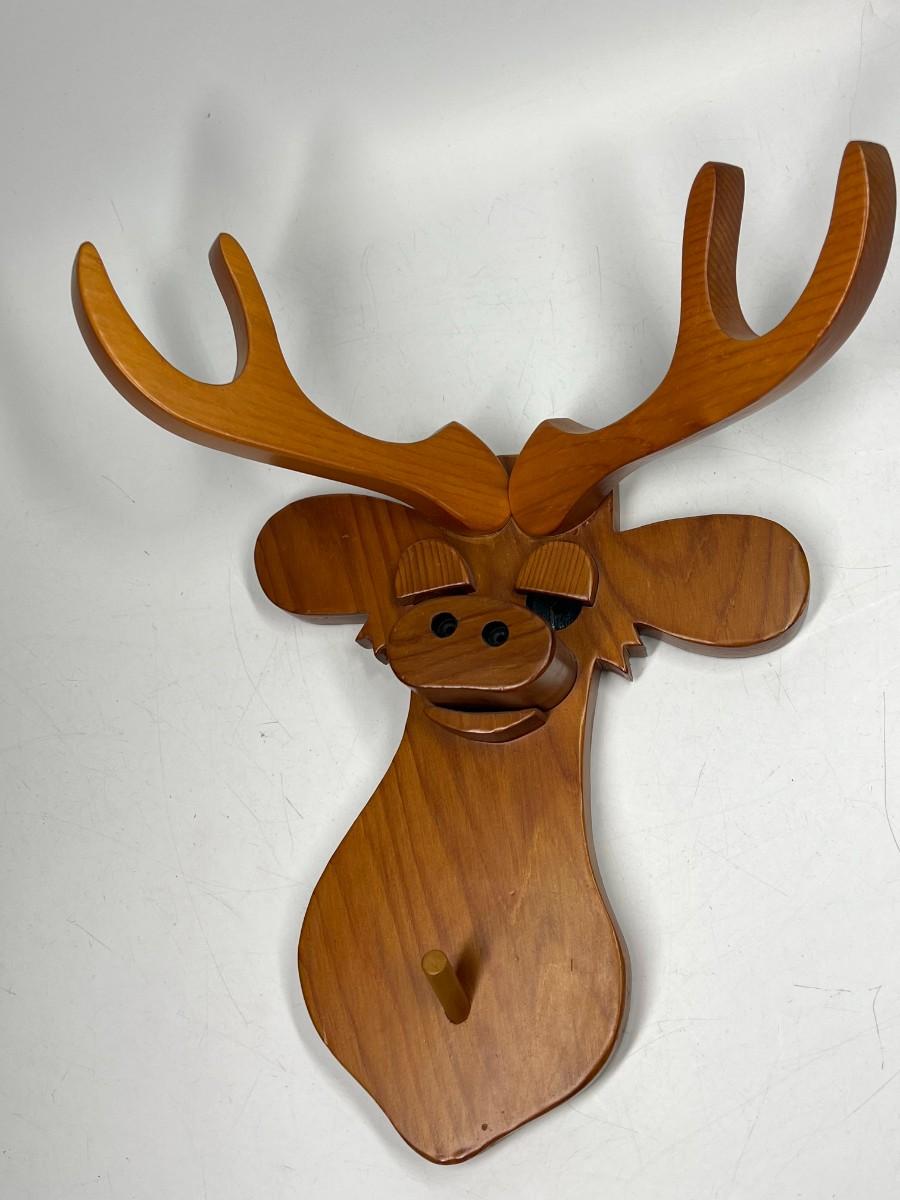 Retro Hand Made Wood Cut Out Deer Buck Mount Wall Hanging with Peg Jacket Hat Holder. Good condition.