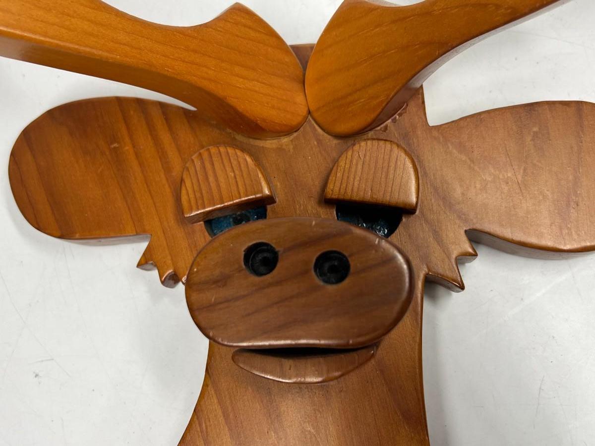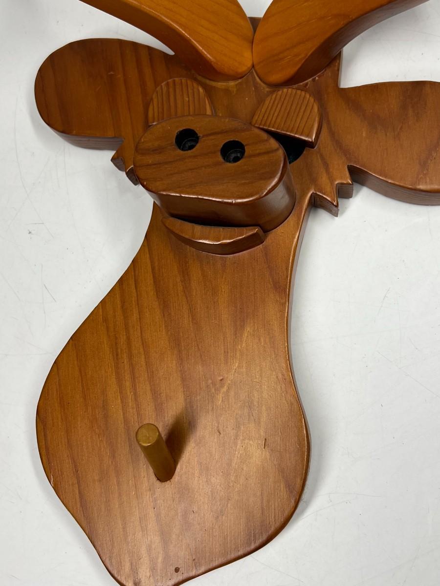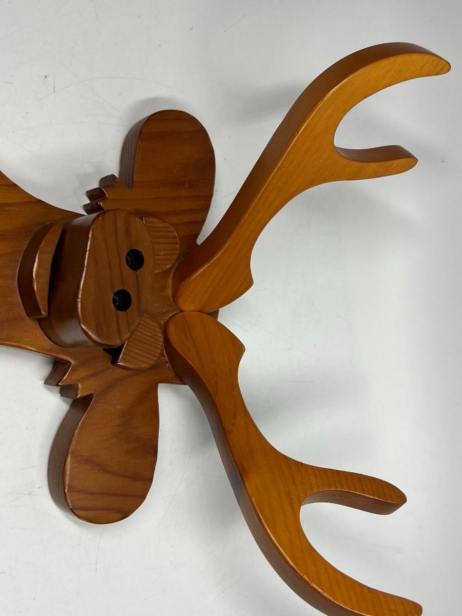 Retro Hand Made Wood Cut Out Deer Buck Mount Wall Hanging with Peg Jacket Hat Holder. Good condition.