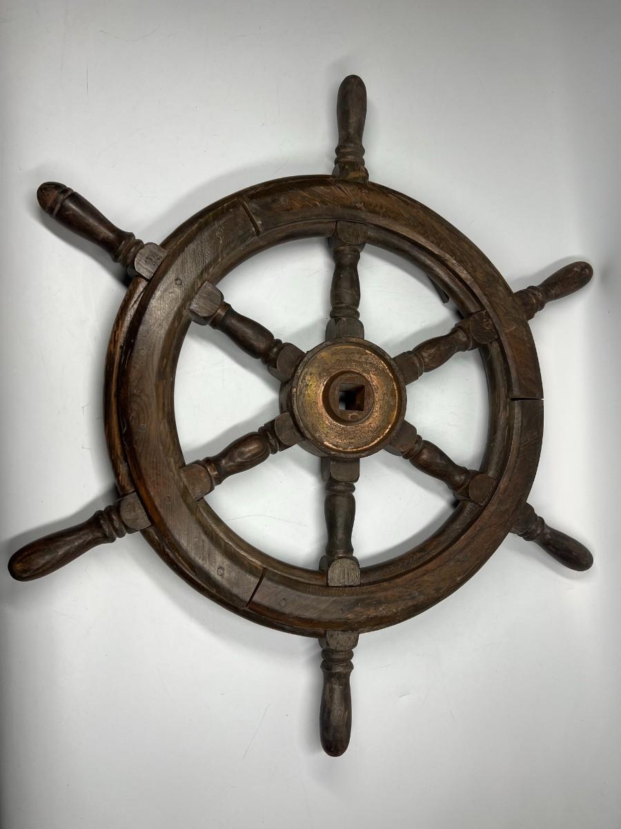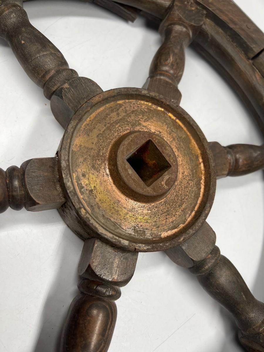Vintage Antique Wooden Nautical Ship Wheel Beachy Coastal Decor. Some light wear from age gives it even more charm.