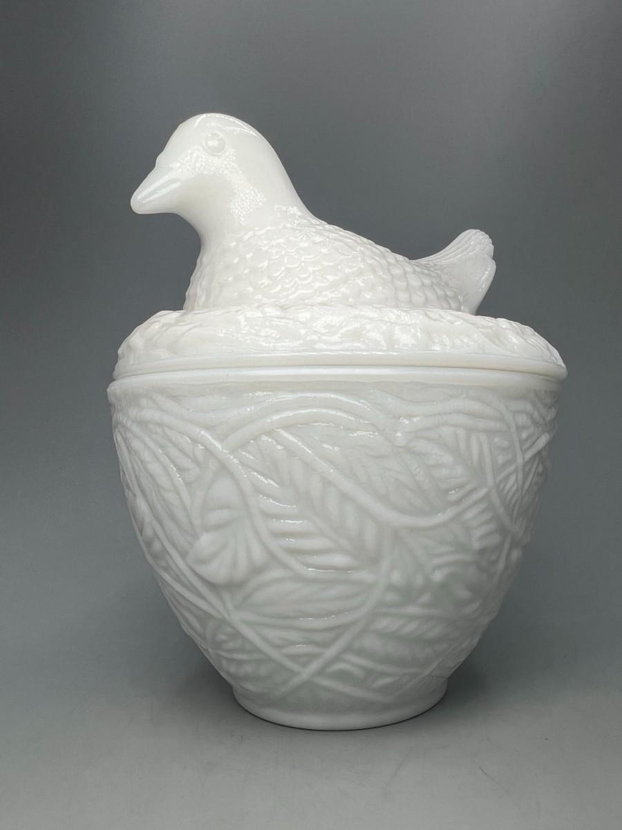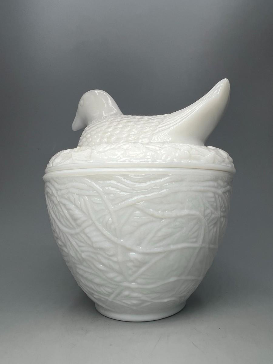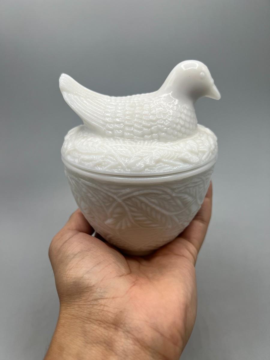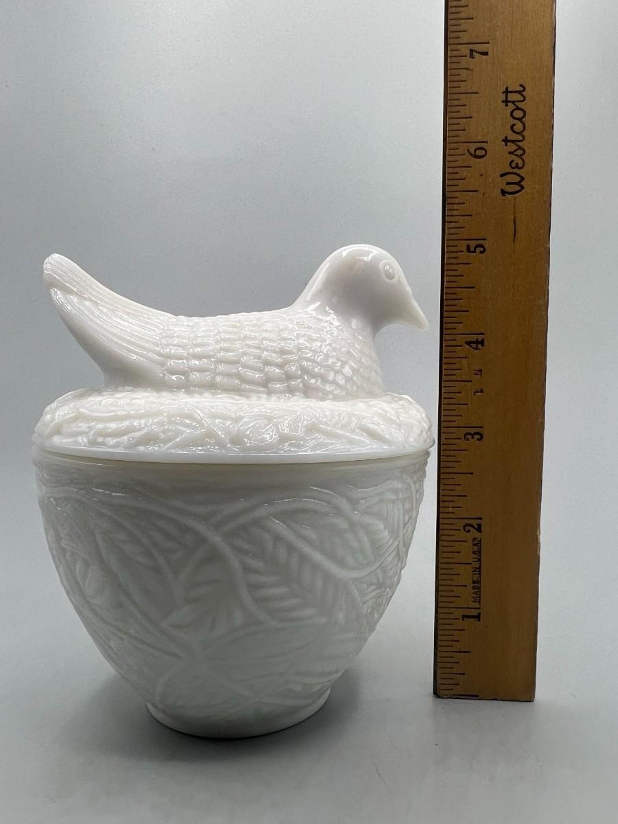 Vintage Avon Milk Glass Bird on Nest Trinket Vanity Lidded Jar