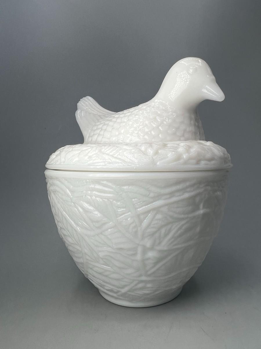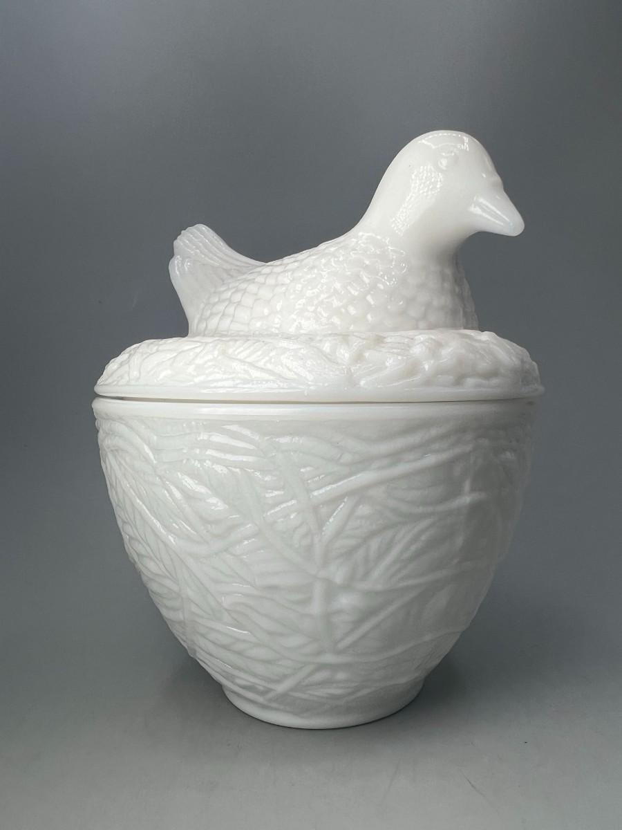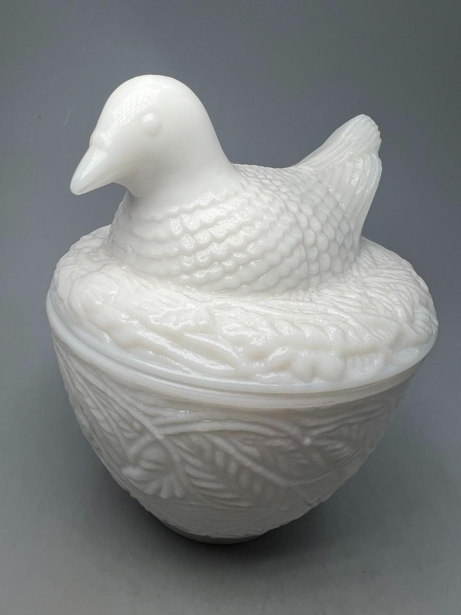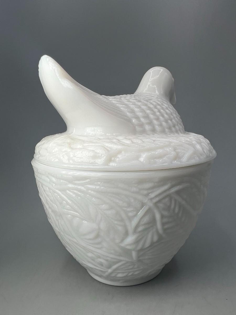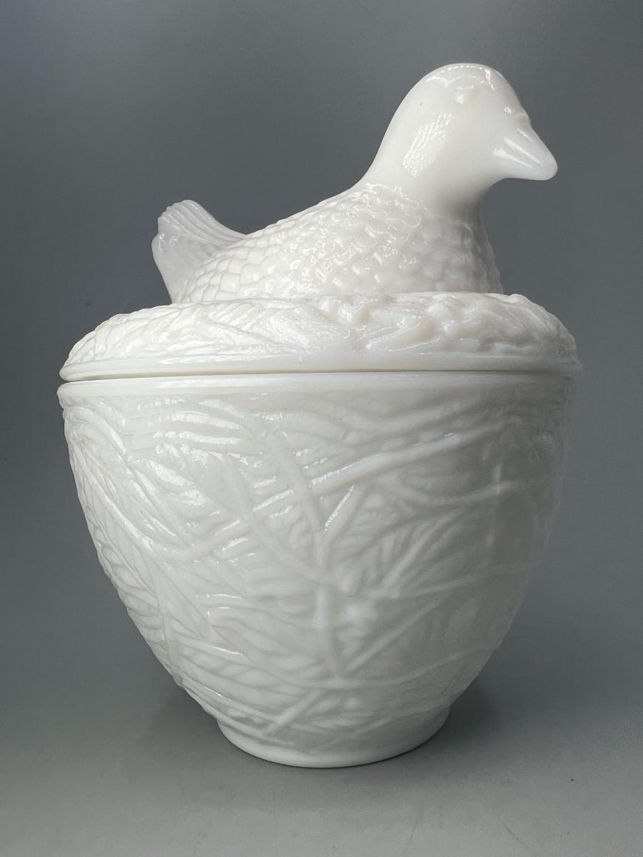 Vintage Avon Milk Glass Bird on Nest Trinket Vanity Lidded Jar