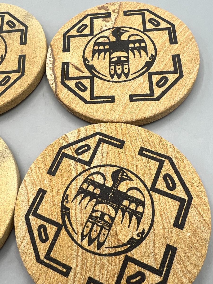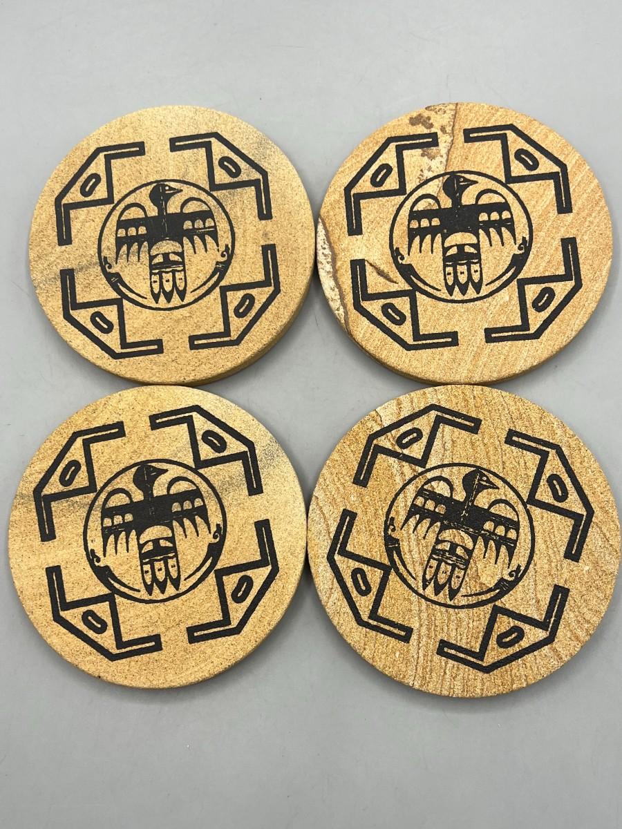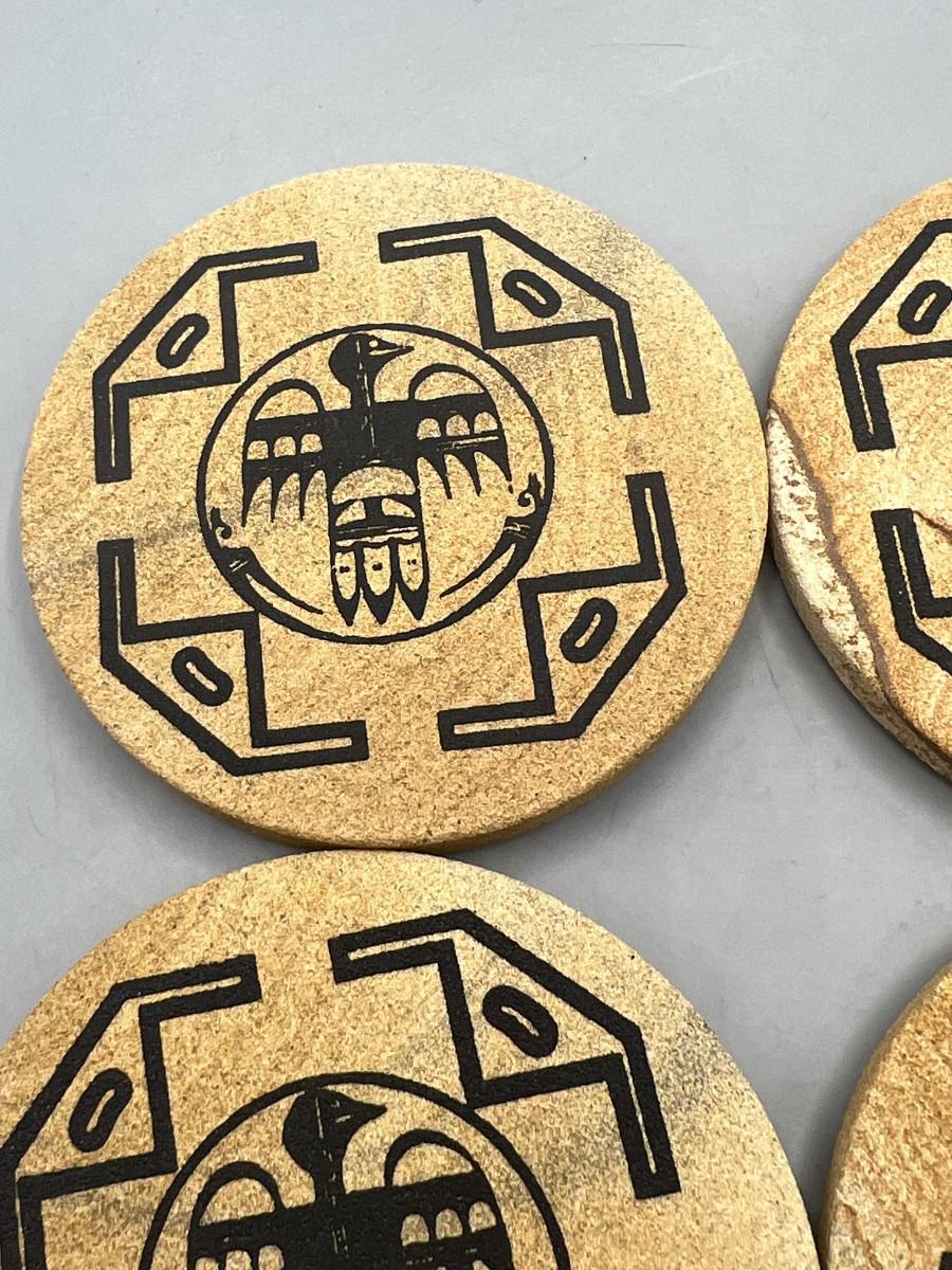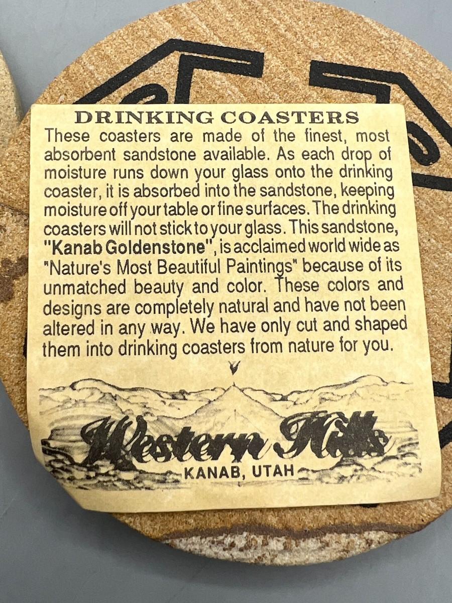 Set of Sandstone Kanab Goldenstone Western Hills Utah Native American Design Souvenir Coasters