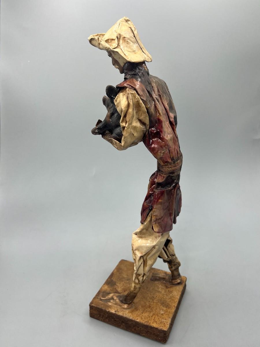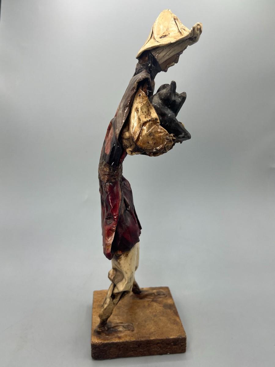 There is no damage to the figurine and in good condition. Interesting materials used to make this sculpture.