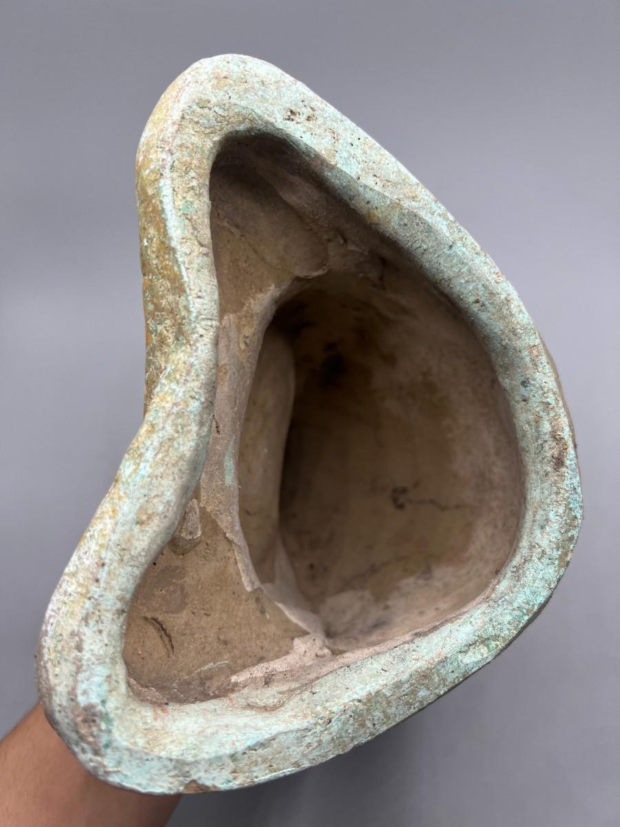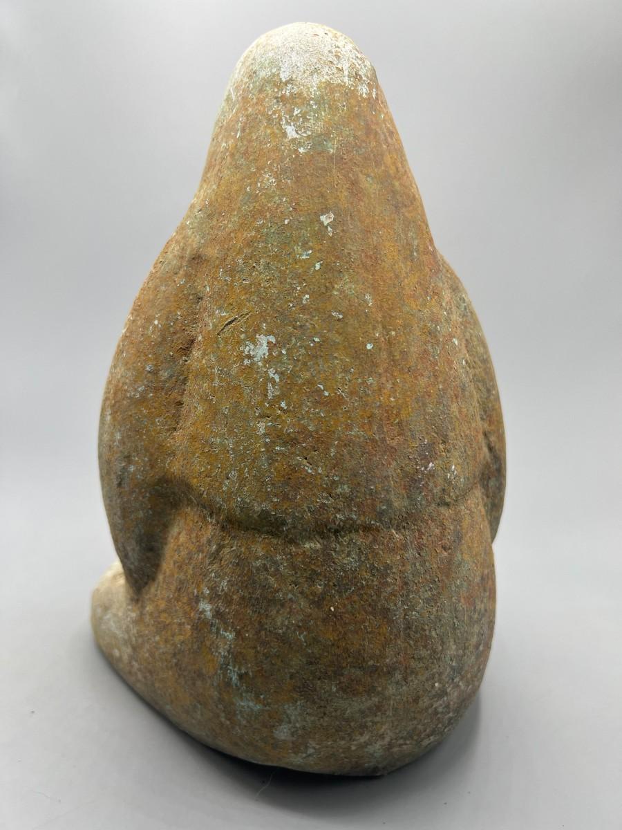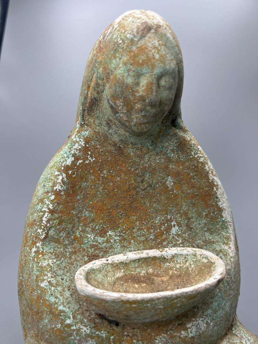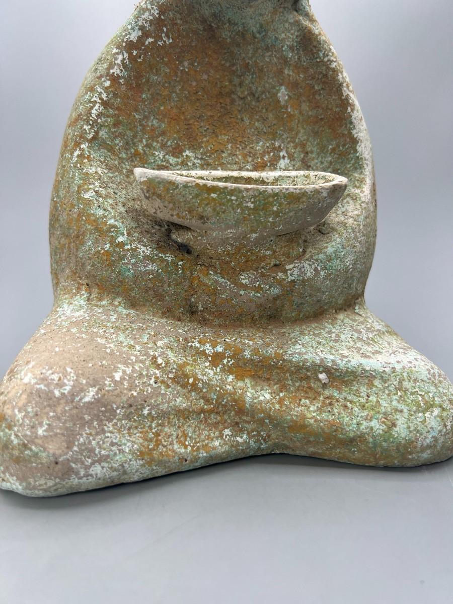 Weathered Stone Plaster Hollow Statue of Sitting Woman with Bowl