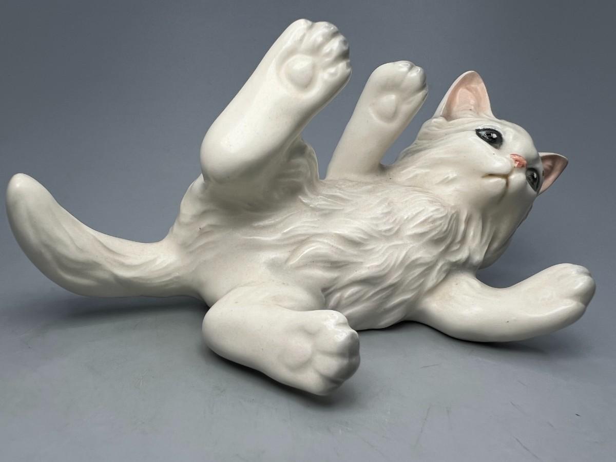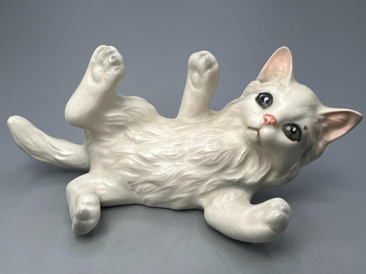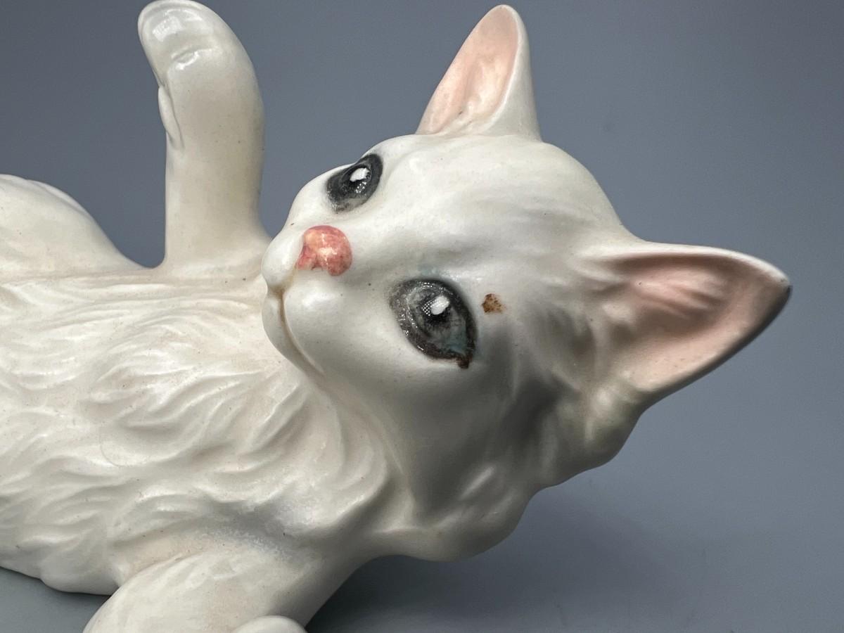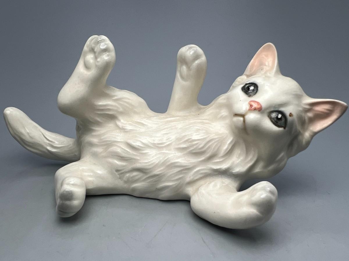 Vintage Lefton White Laying Persian Angora Cat Figurine 1513