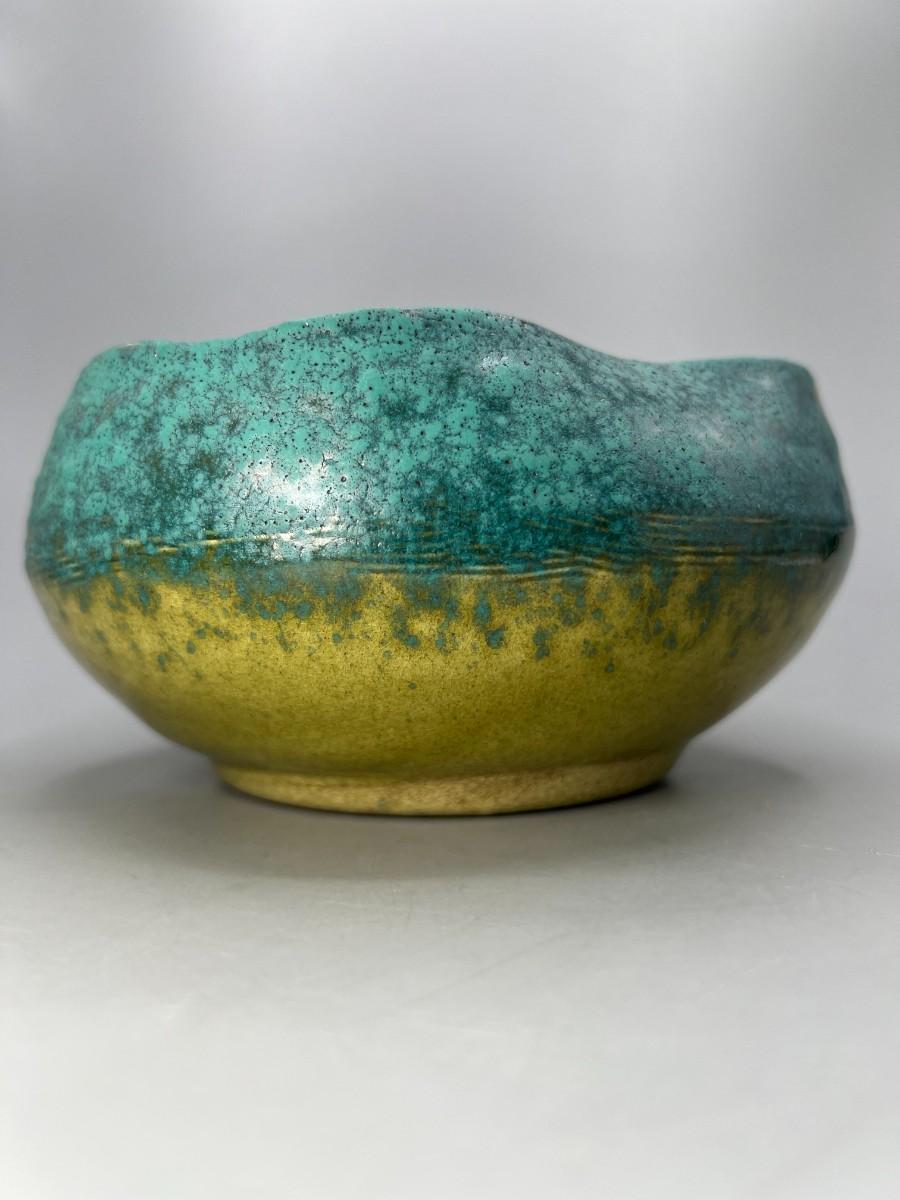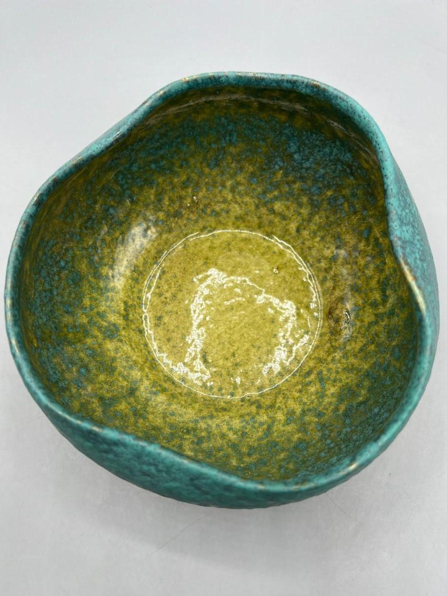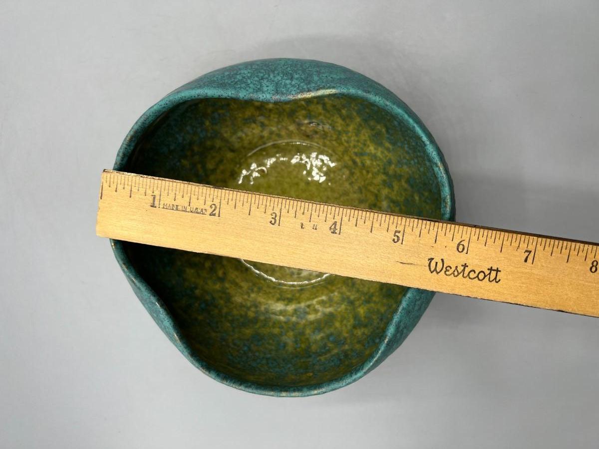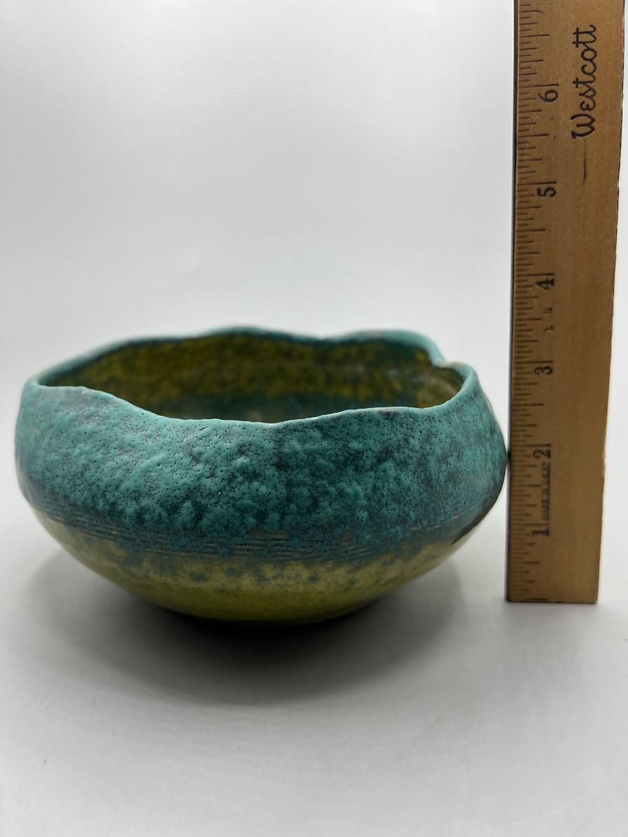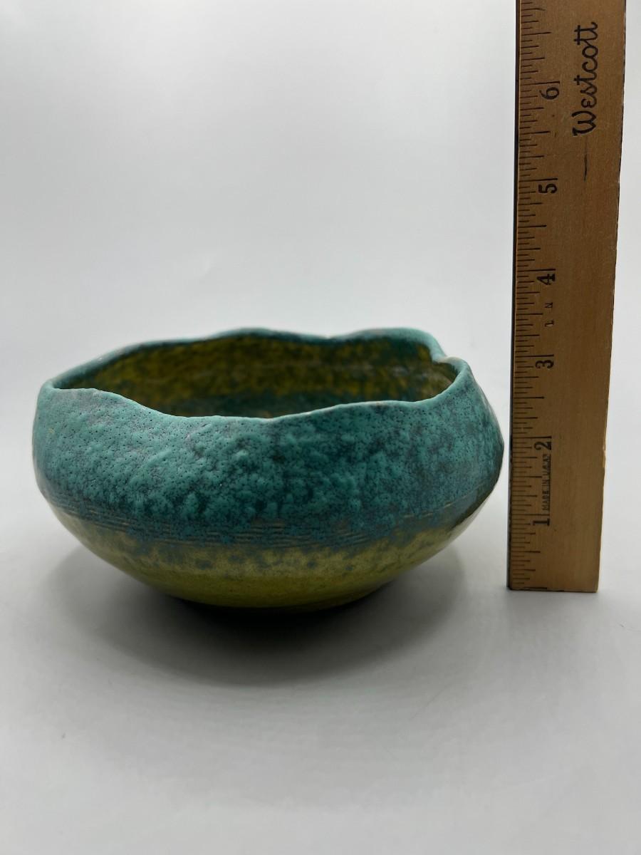 Vintage Pottery Art Turquoise Green Handmade Bowl Mid-Century Modern MCM Blue Green