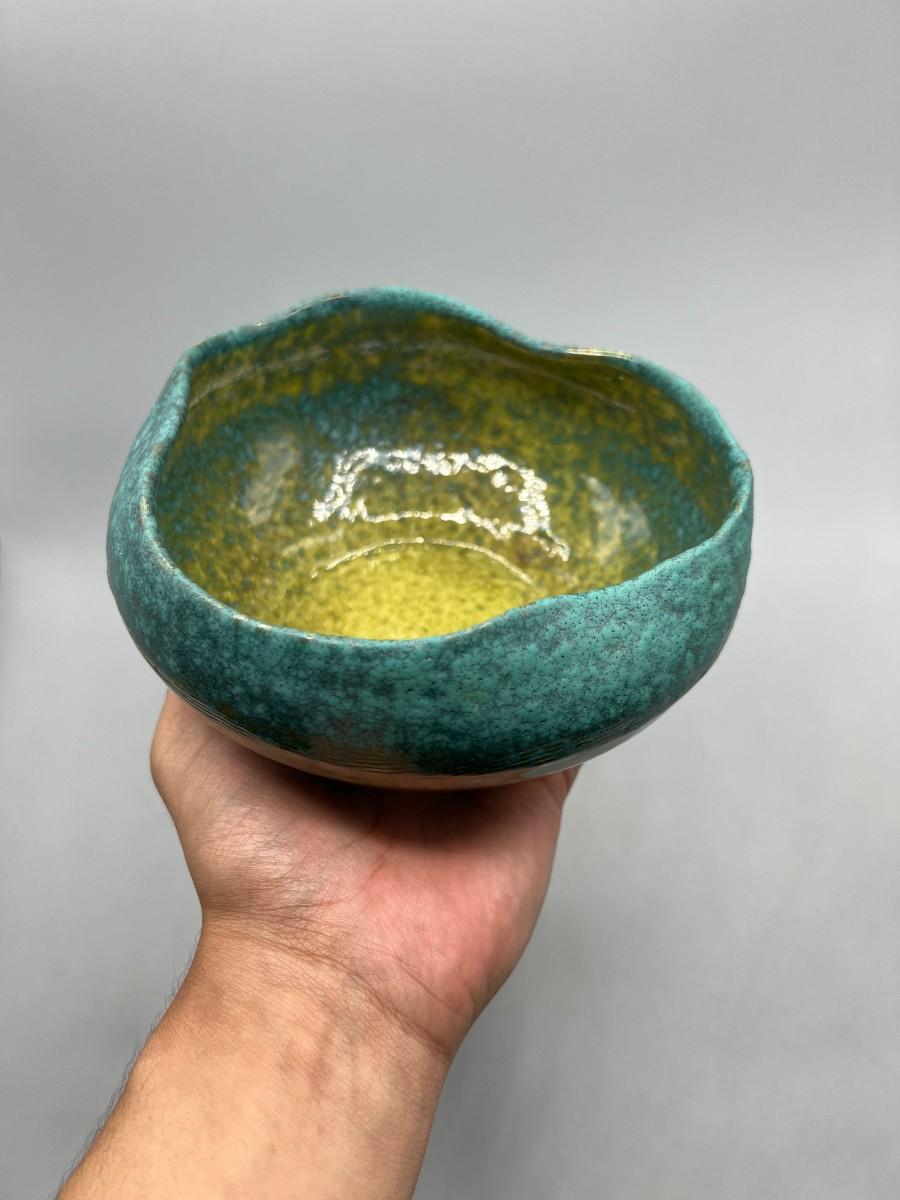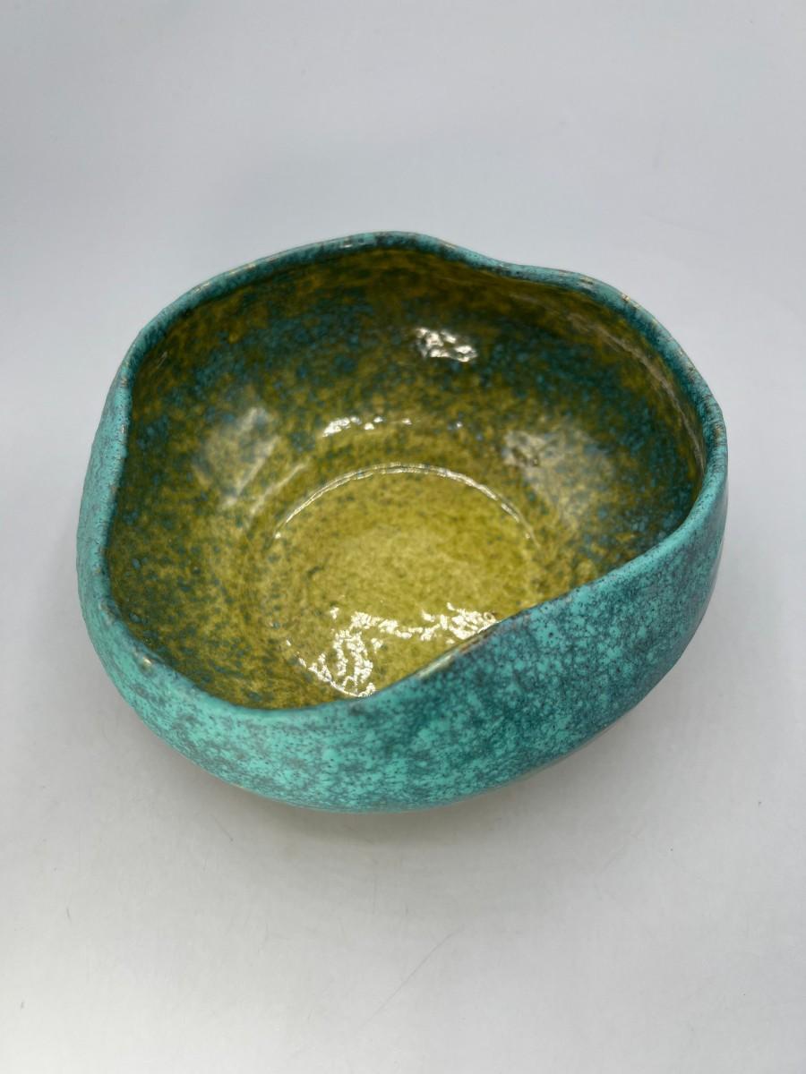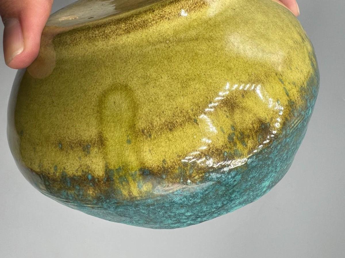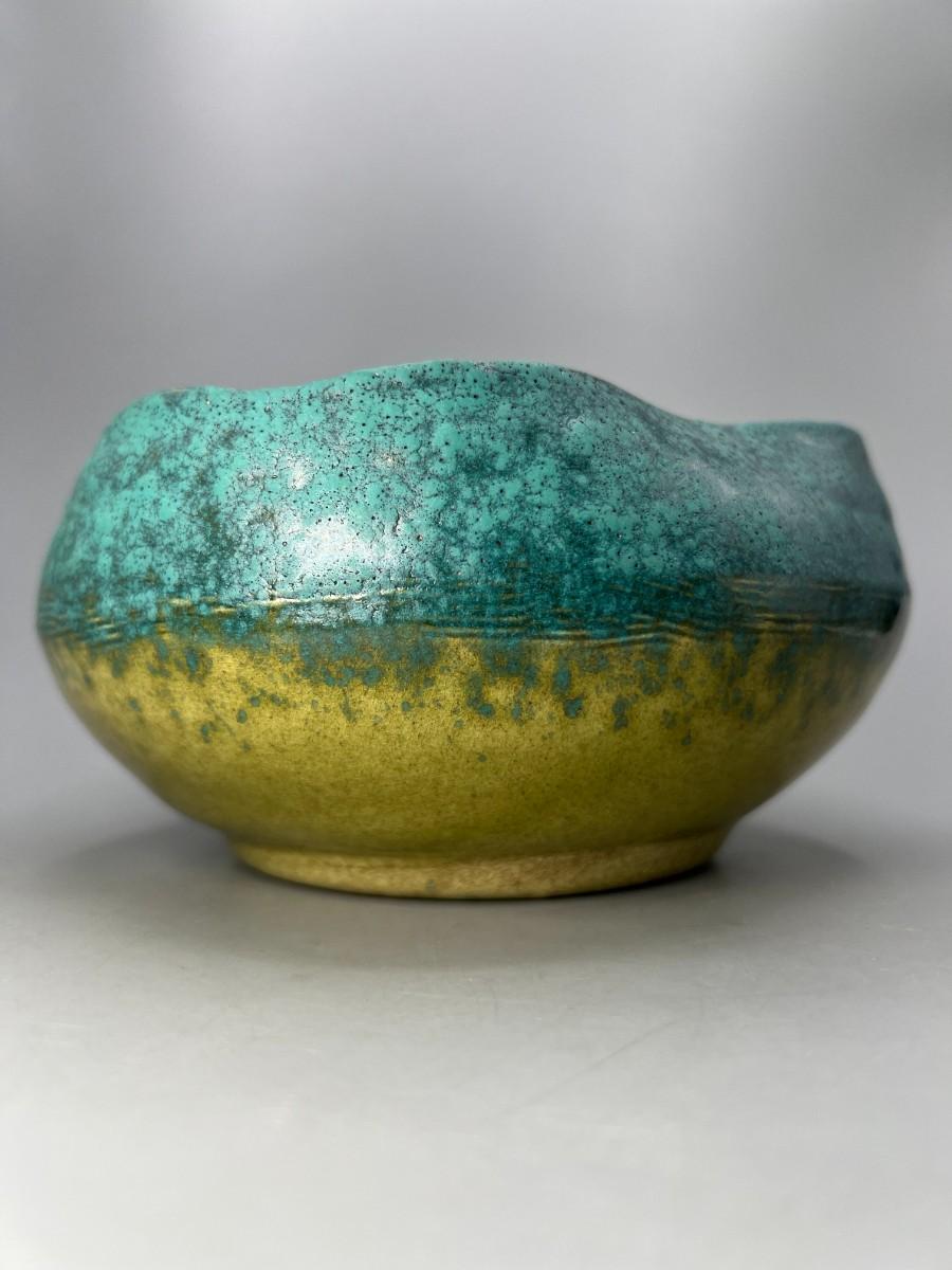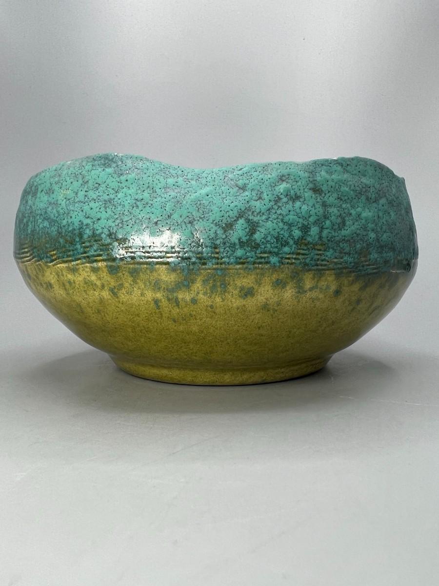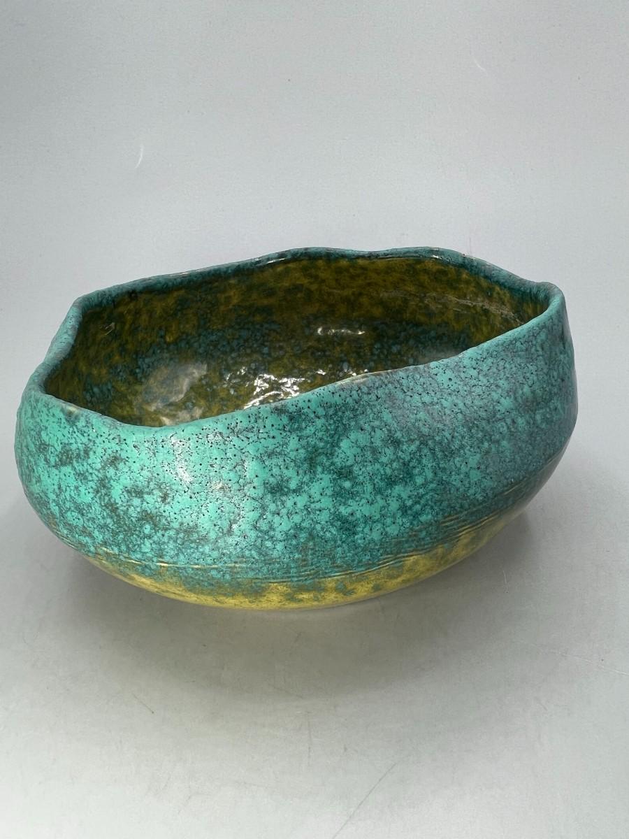 Vintage Pottery Art Turquoise Green Handmade Bowl Mid-Century Modern MCM Blue Green