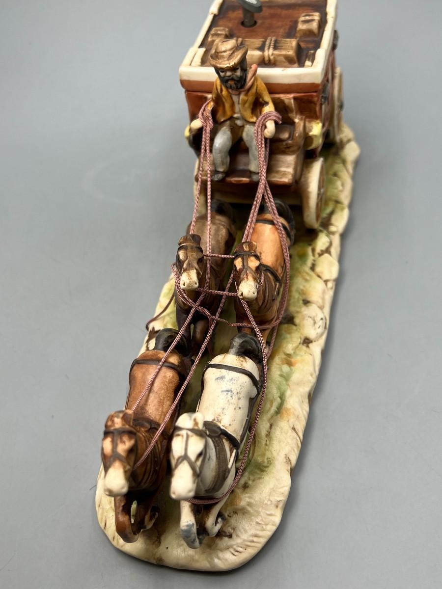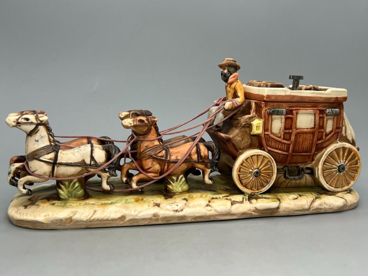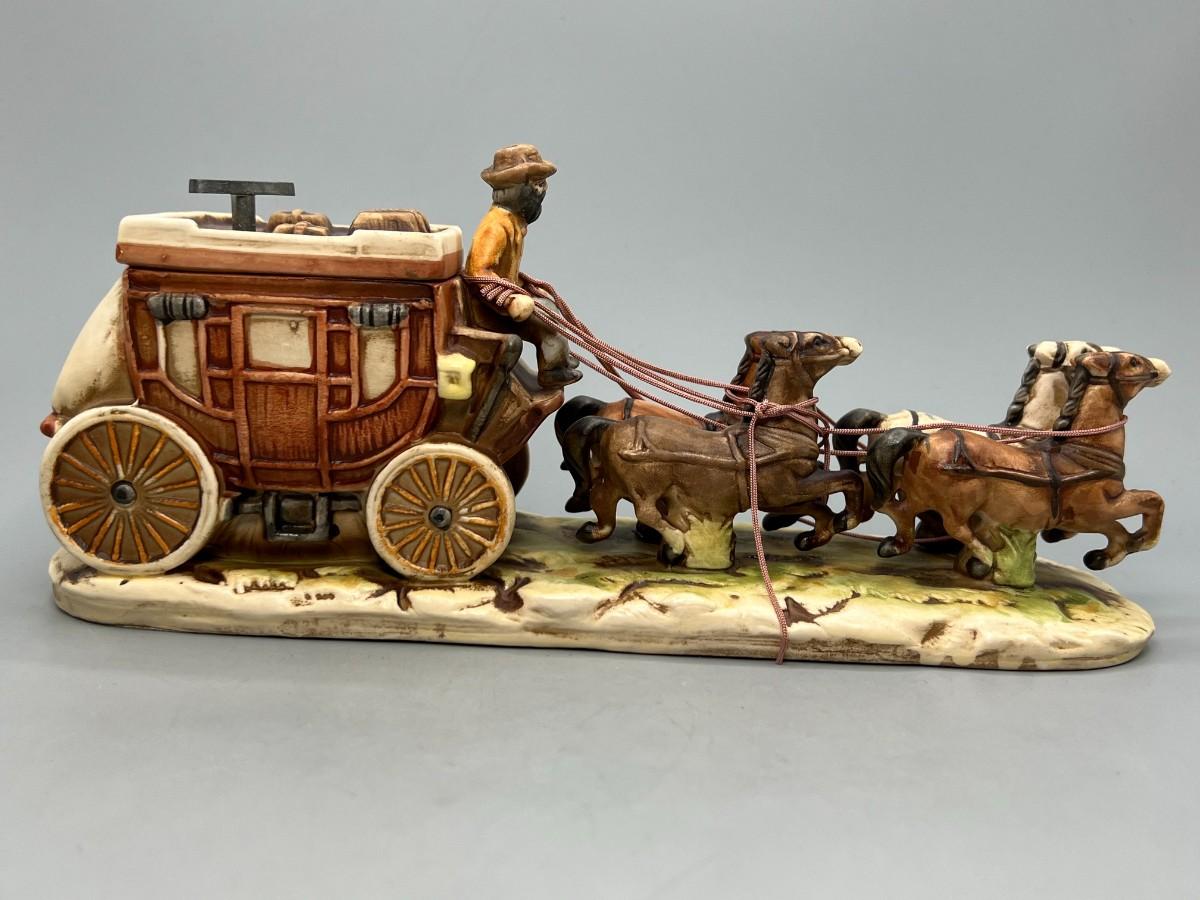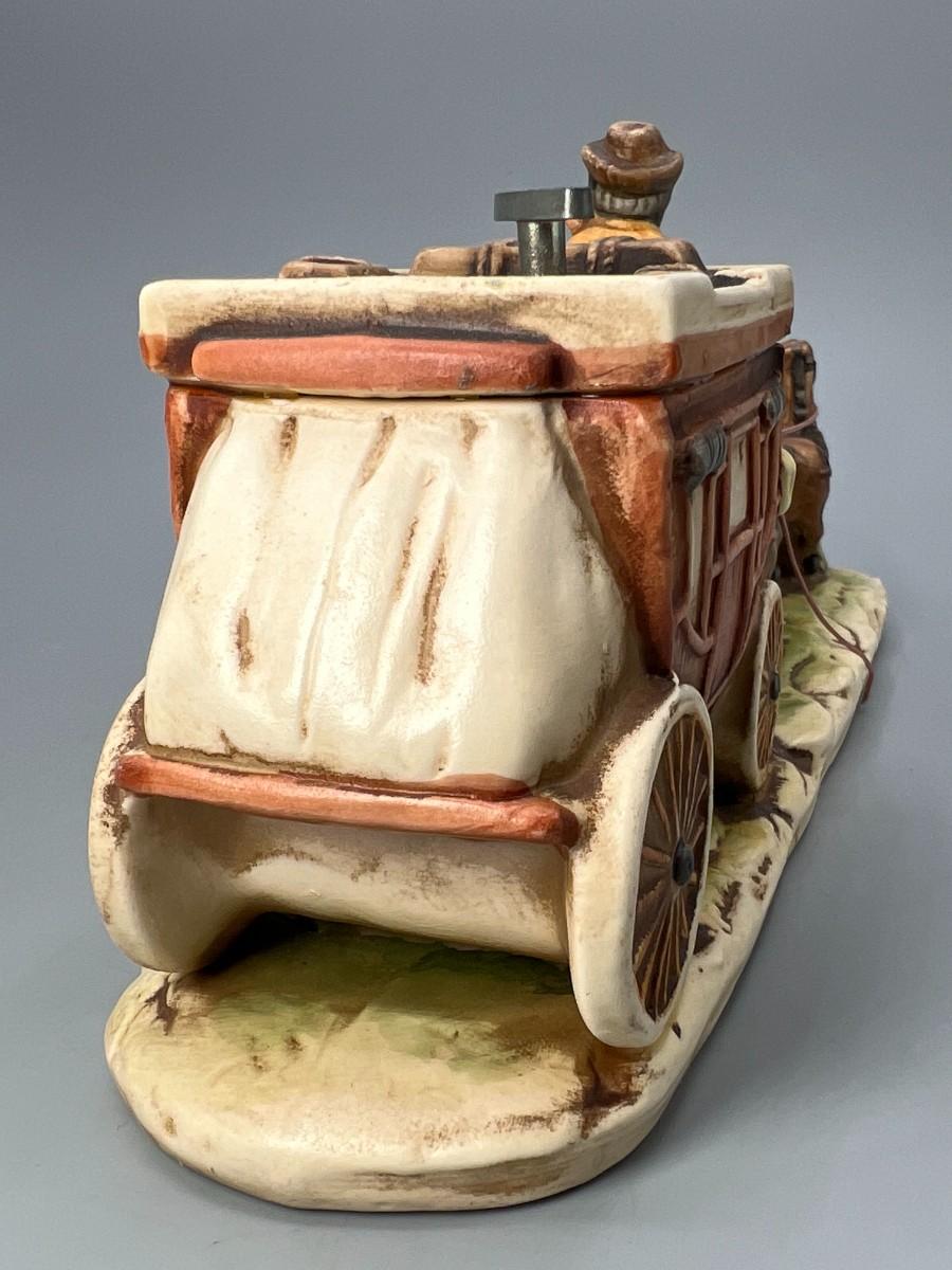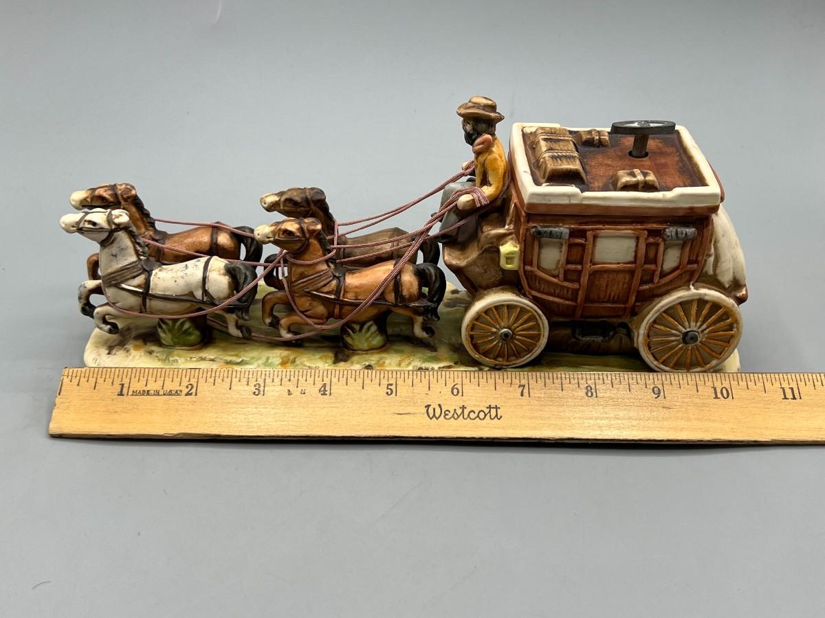 Vintage Old West Horse Drawn Carriage Ceramic Music Box Figurine