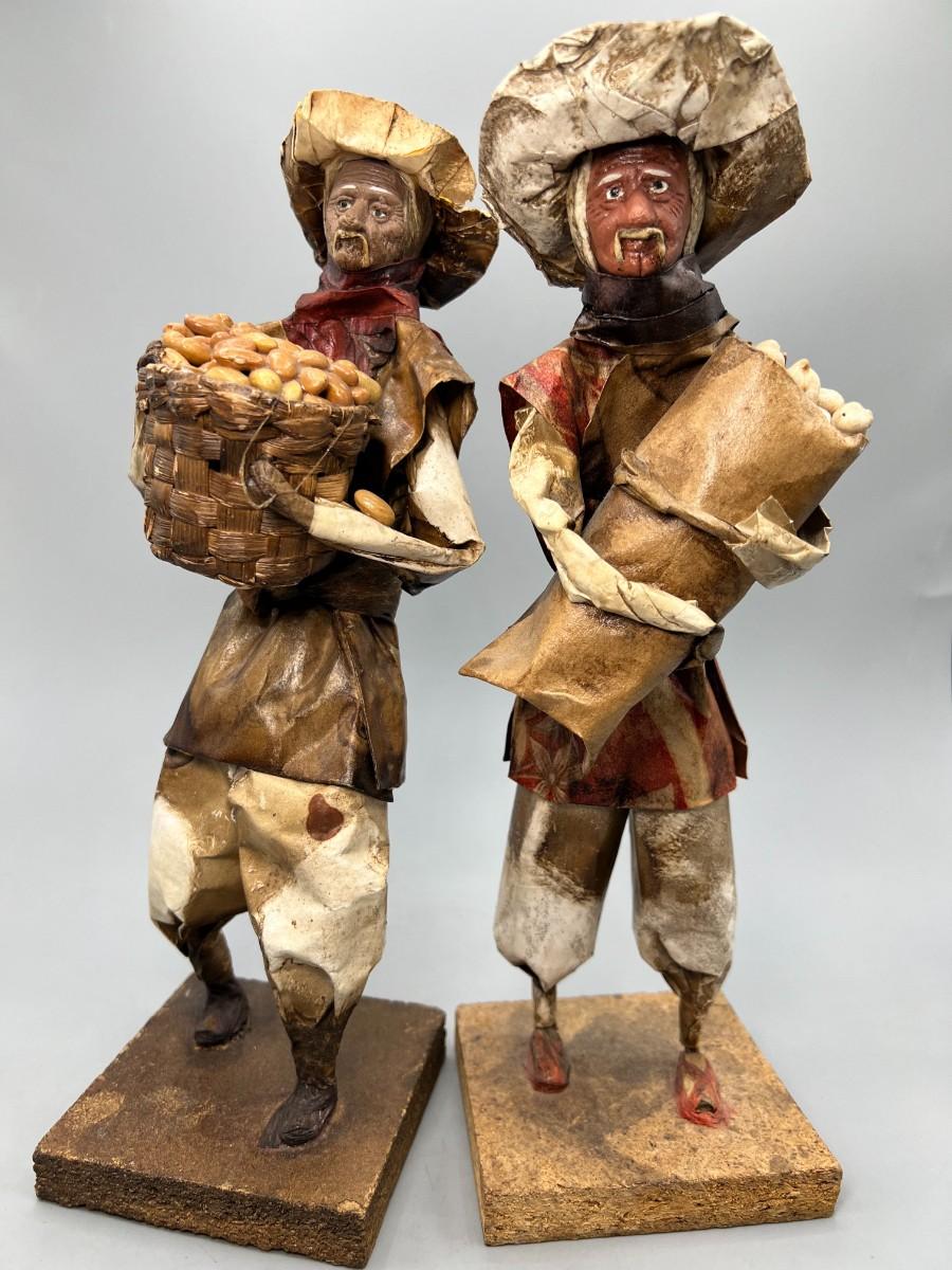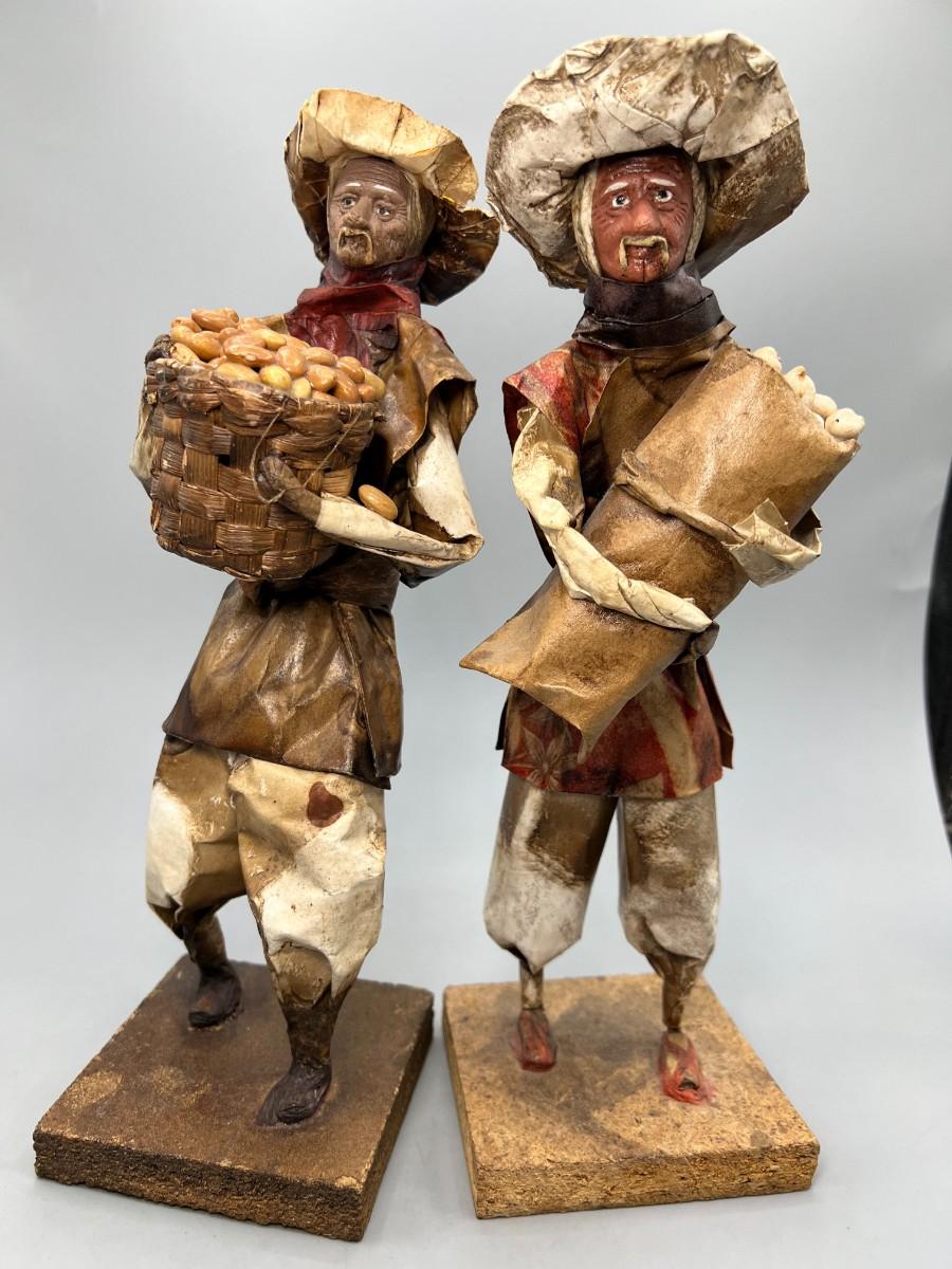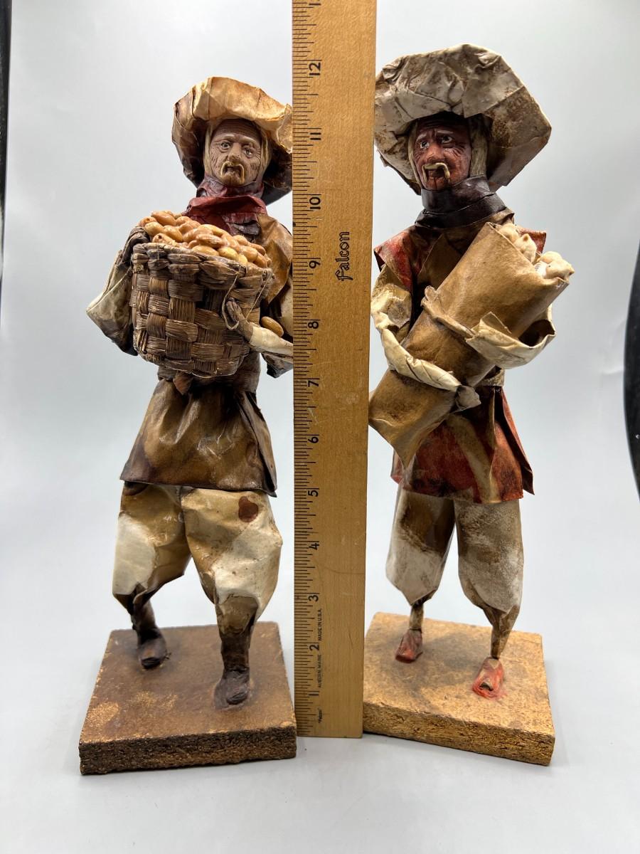 Vintage Mexican Folk Art Paper Mache Farmers Figurine Statues
