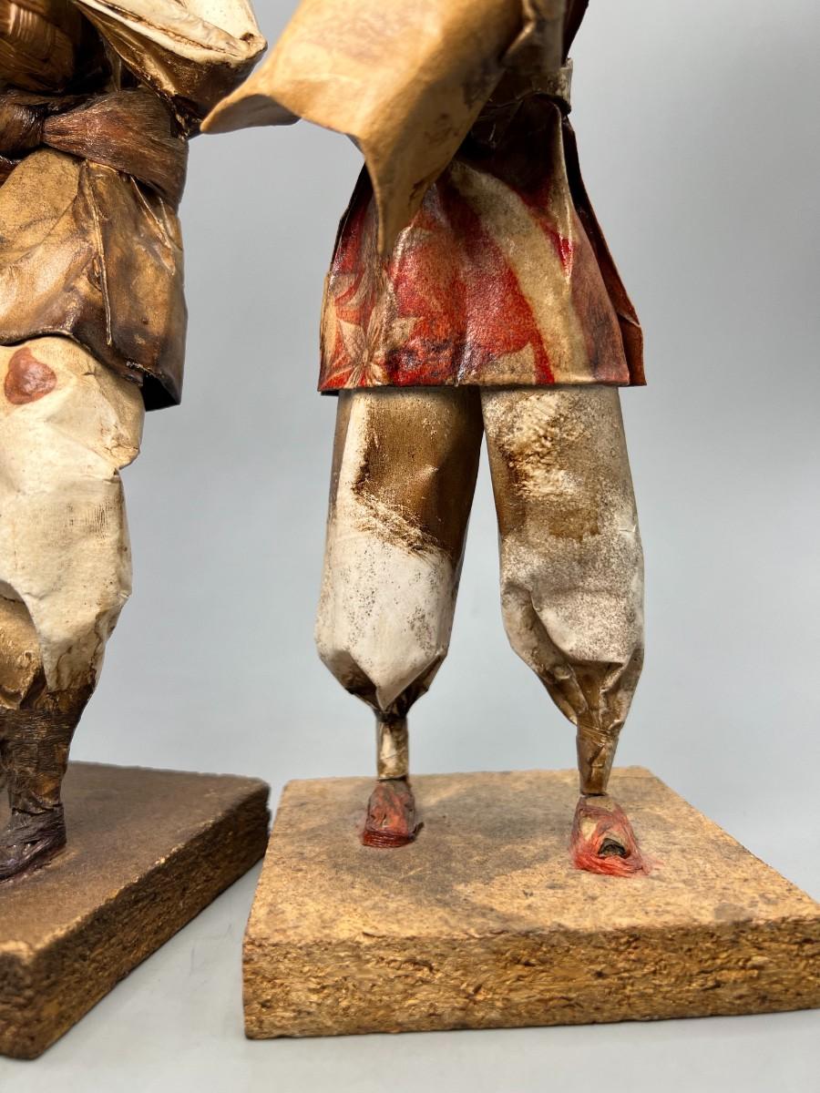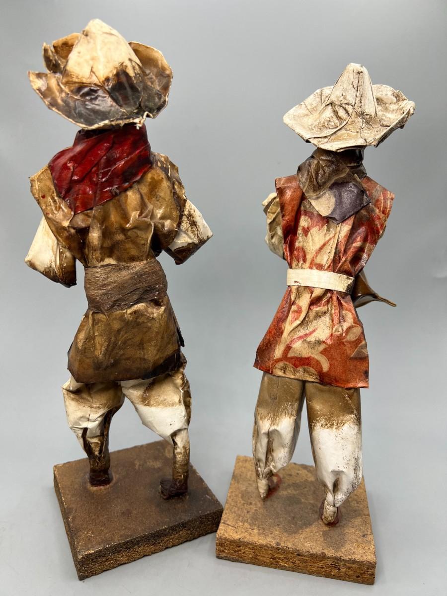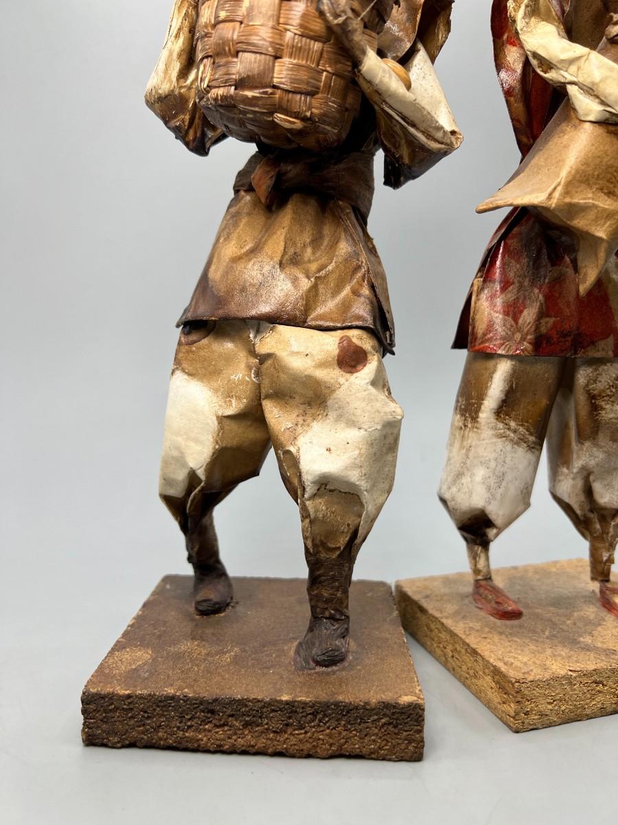 Vintage Mexican Folk Art Paper Mache Farmers Figurine Statues