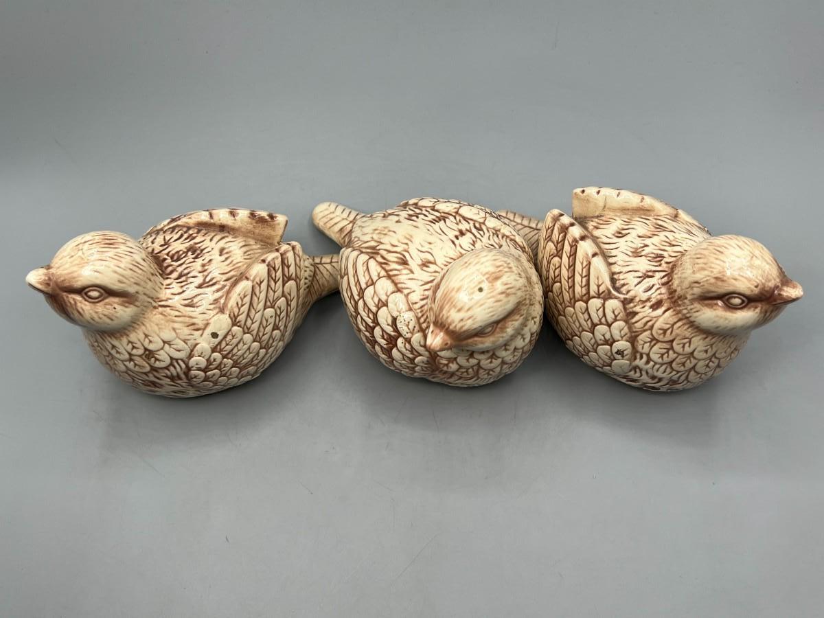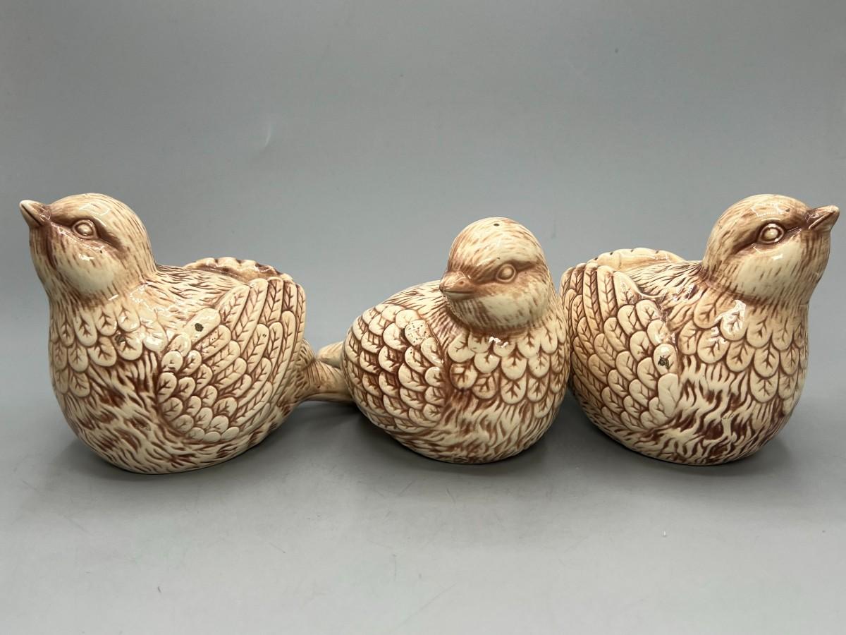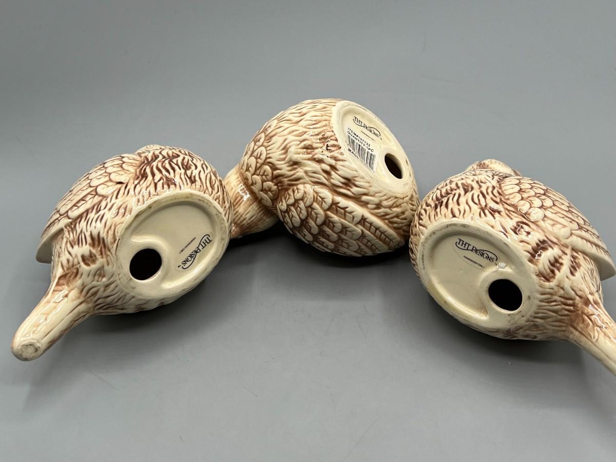 Set of THT Designs Cute Round Ceramic Brown Bird Figurines