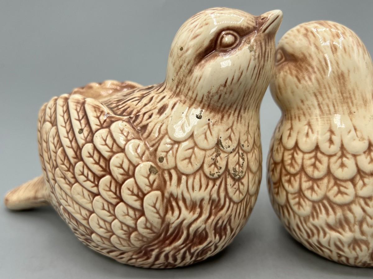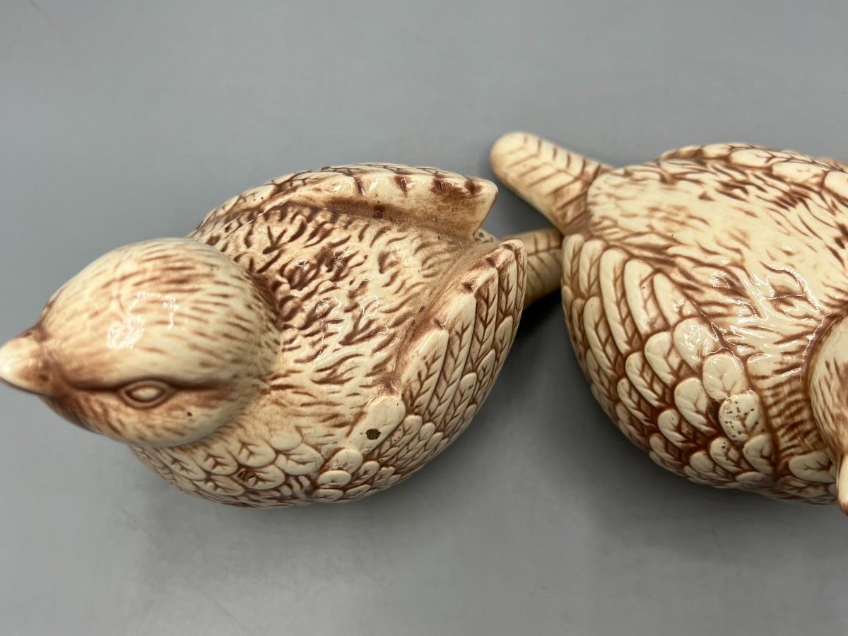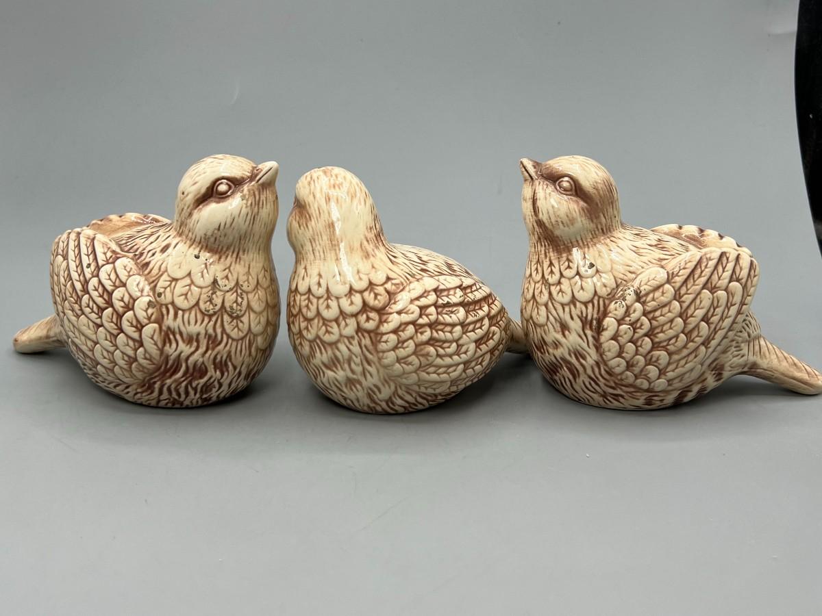 Set of THT Designs Cute Round Ceramic Brown Bird Figurines