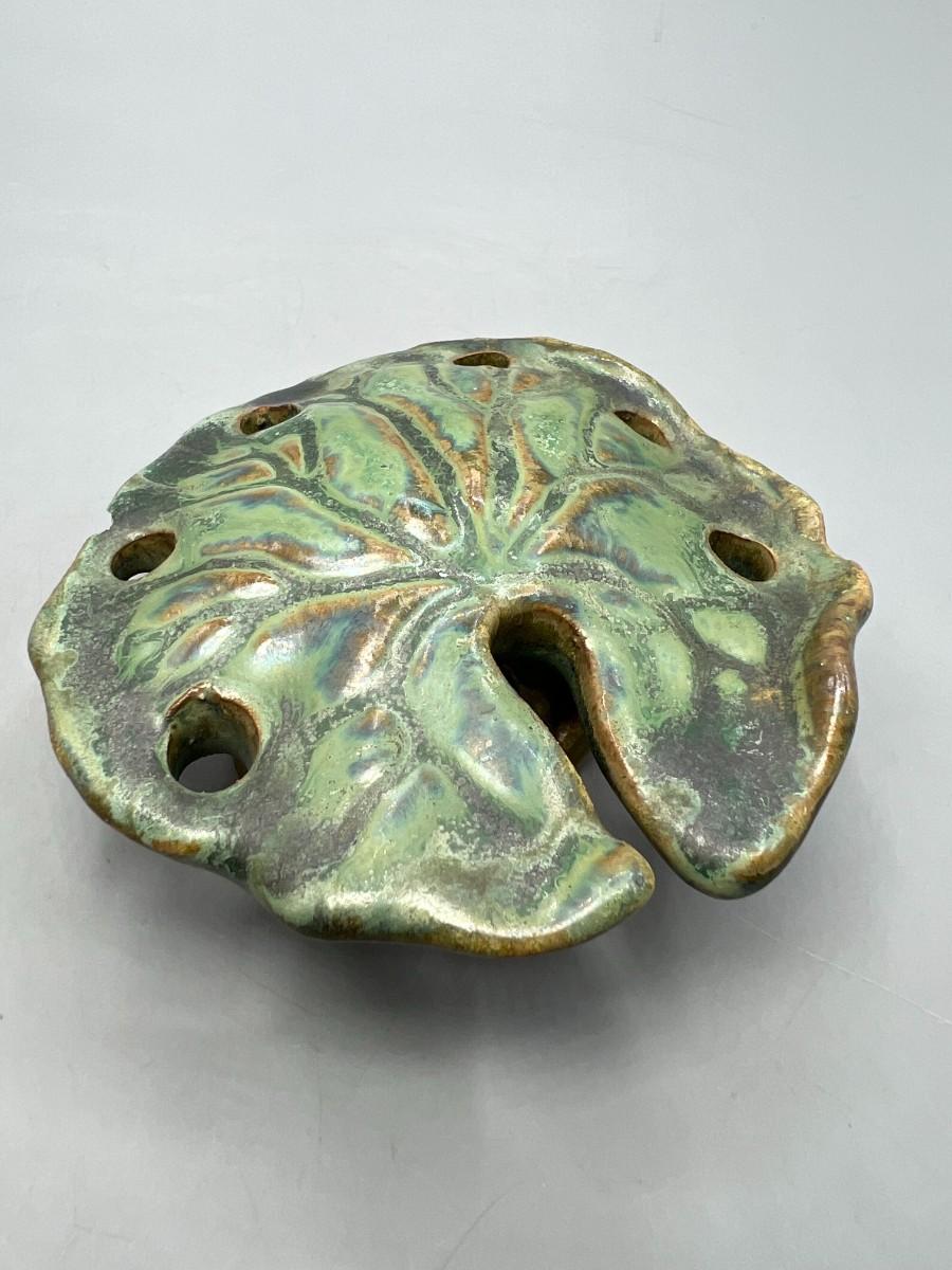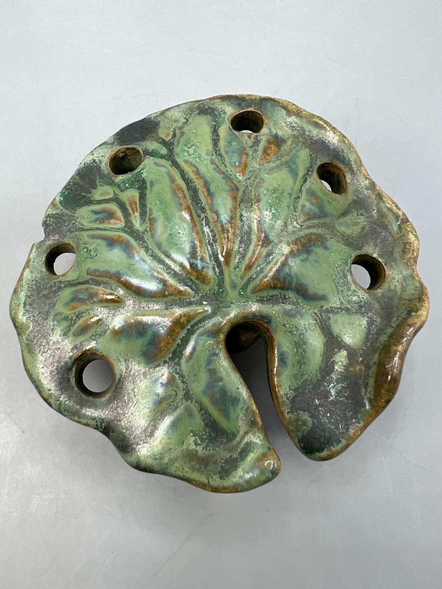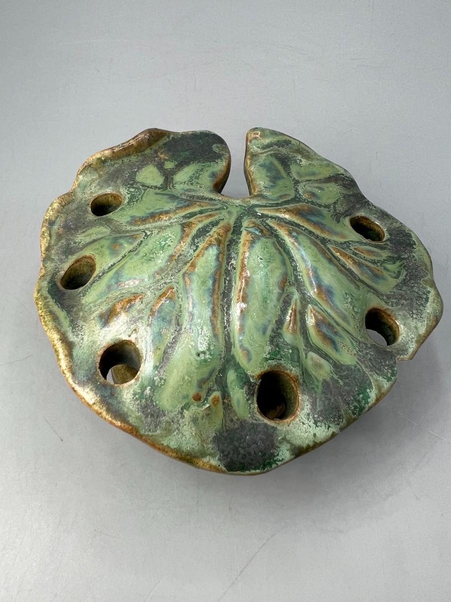 Vintage Art Pottery Lily Pad Flower Stem Holder Figurne
