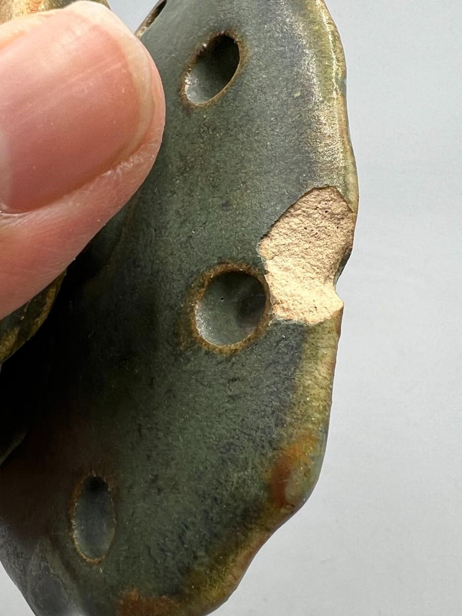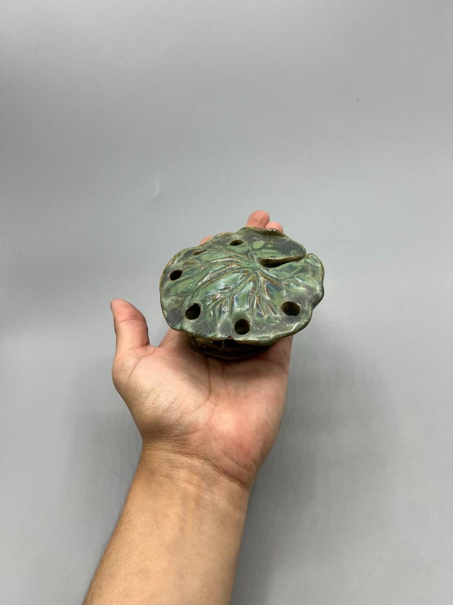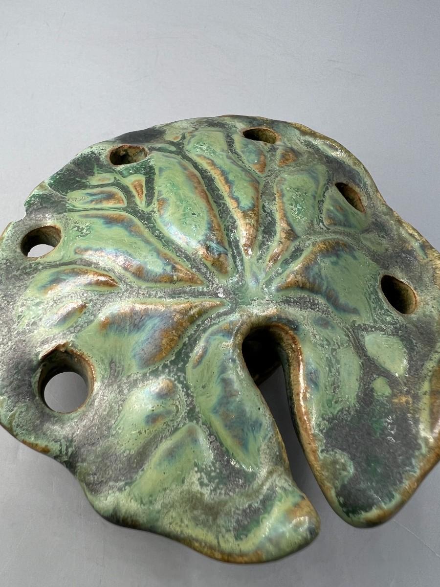 Vintage Art Pottery Lily Pad Flower Stem Holder Figurne