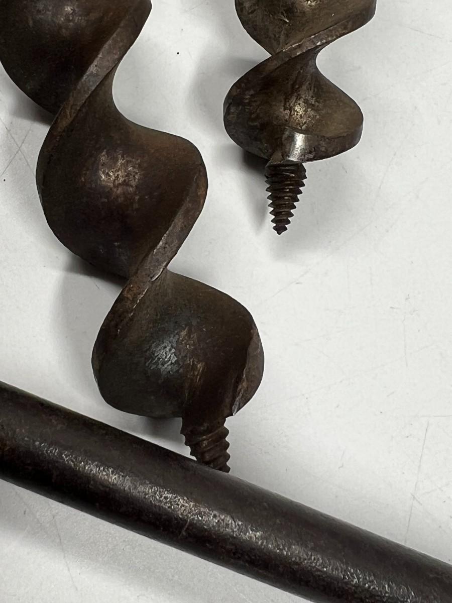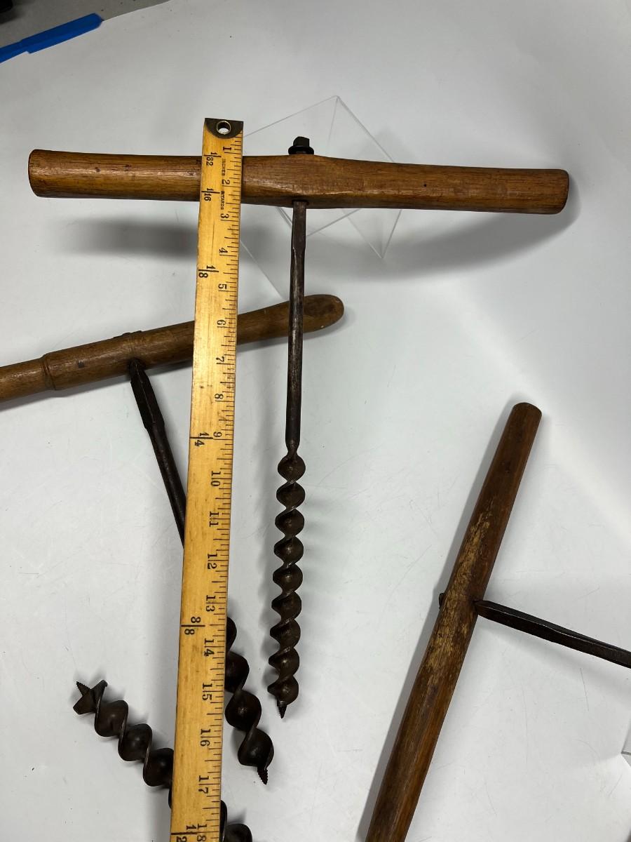 Lot of 4 Antique Wood Handle Auger Boring Drill Bits. in good antique condition.