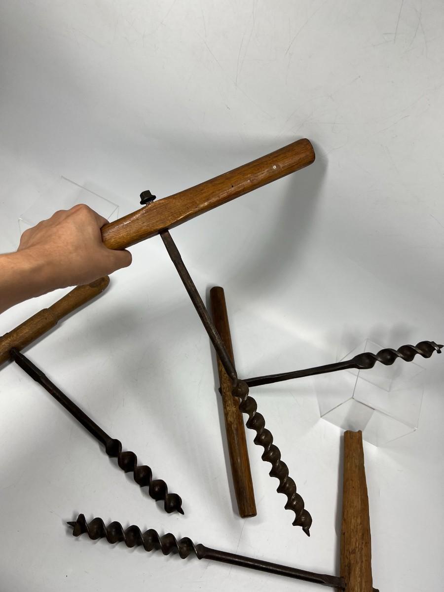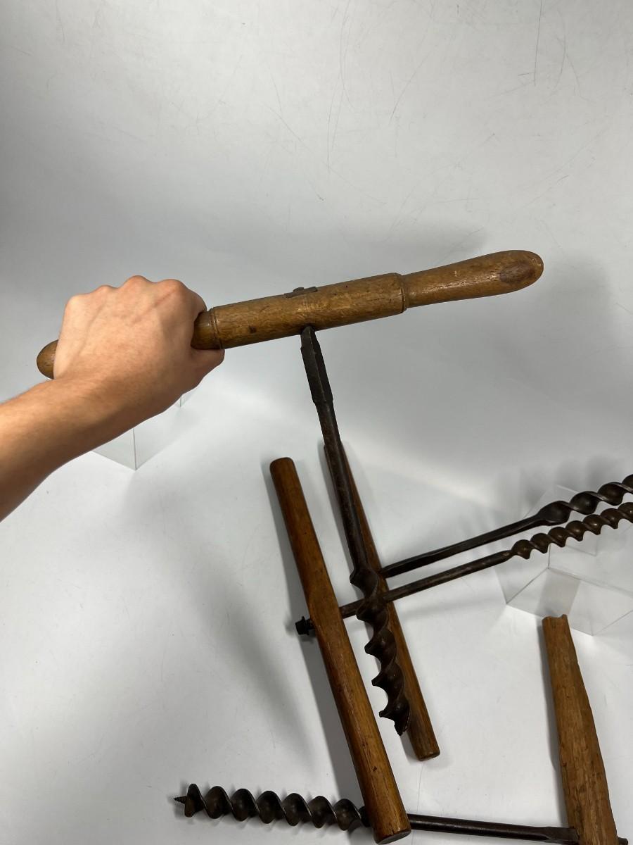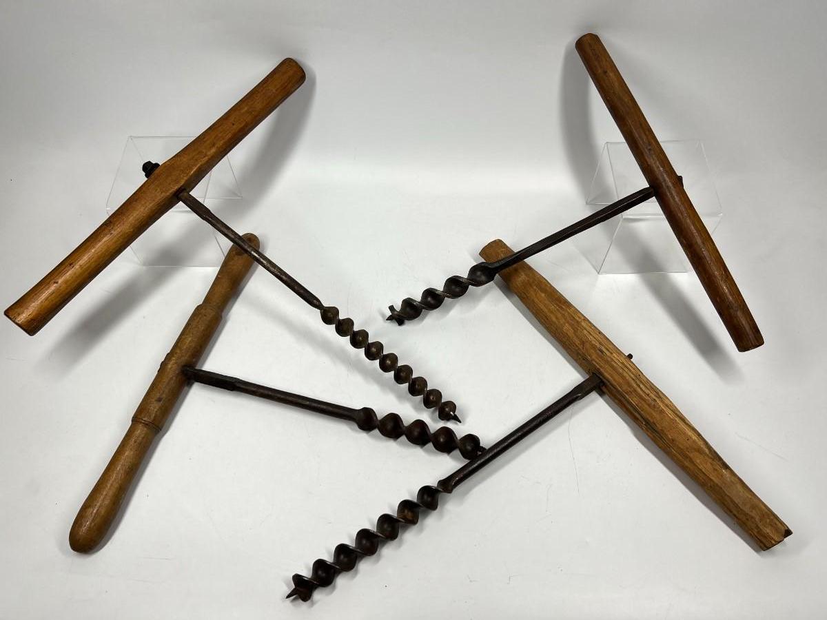 Lot of 4 Antique Wood Handle Auger Boring Drill Bits