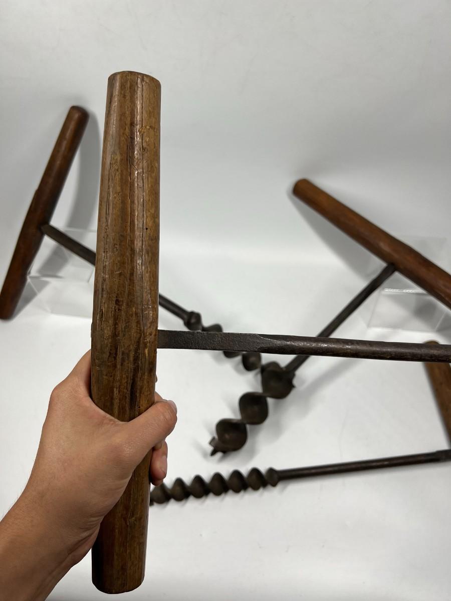 Antique Vintage Handheld Wood Handle Boring Auger Bits