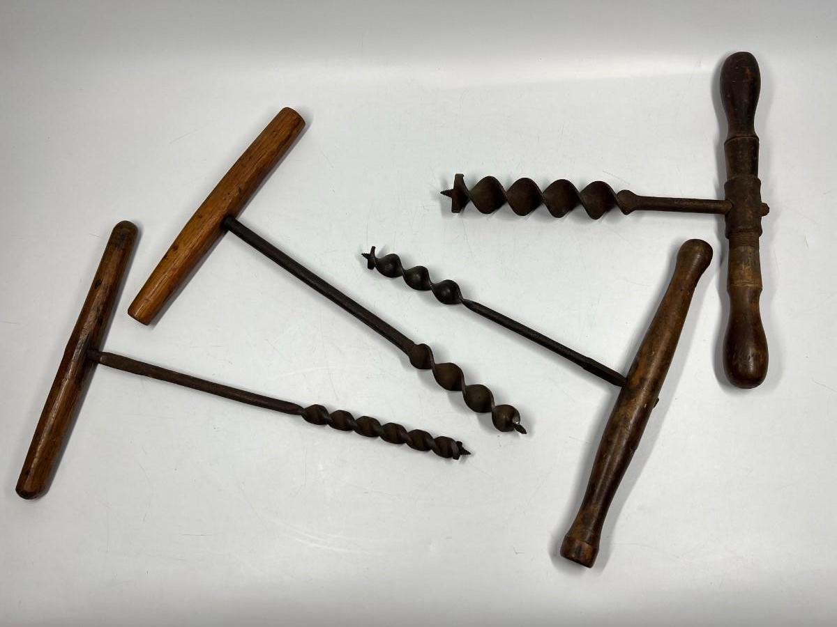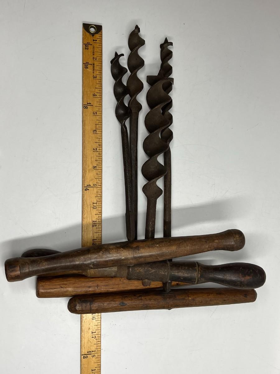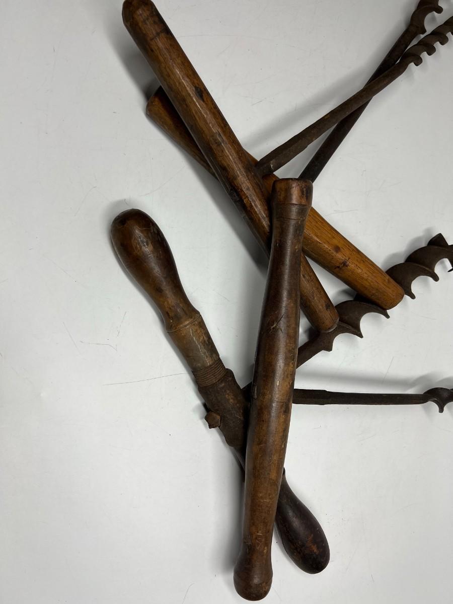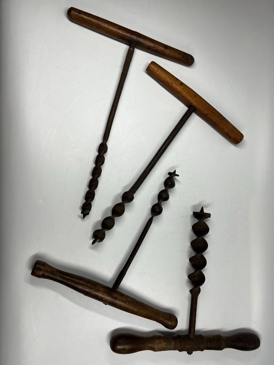 Lot of 4 Wood Handled Antique Vintage Auger Boring Bits. In good condition.