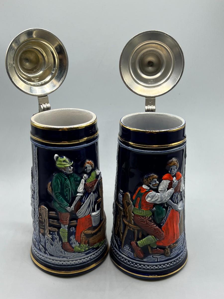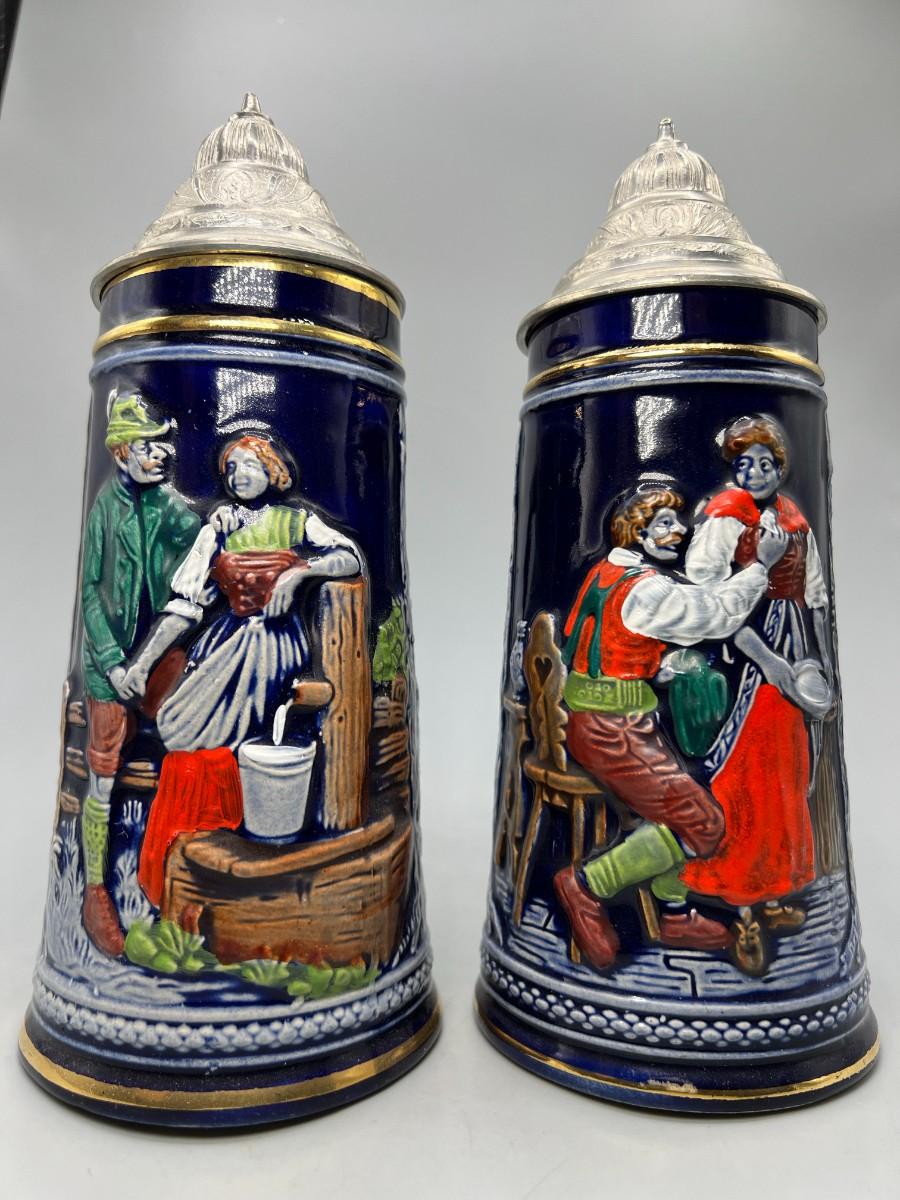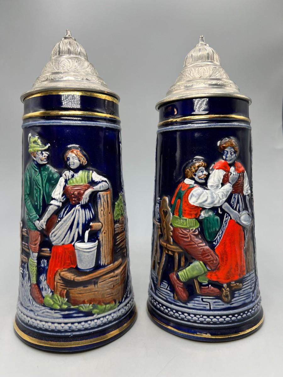 Pair of Vintage German Beer Stein European Renaissance Men Courting Ladies