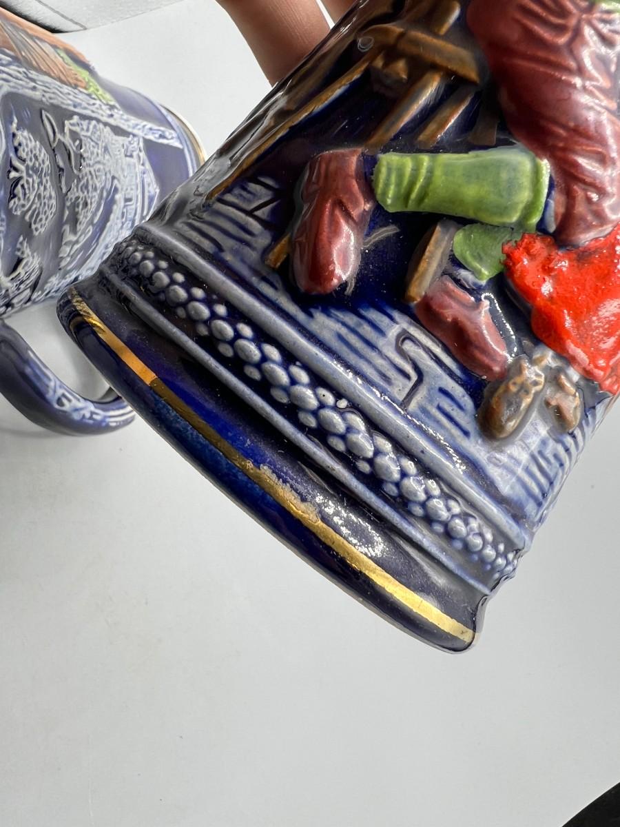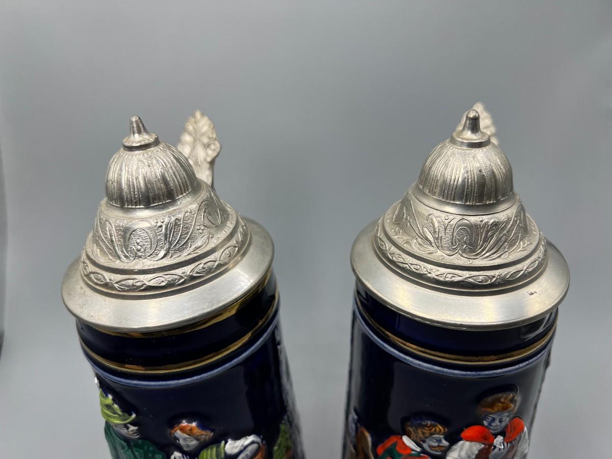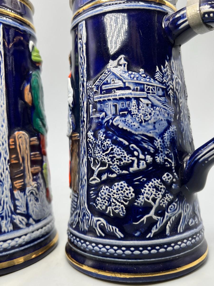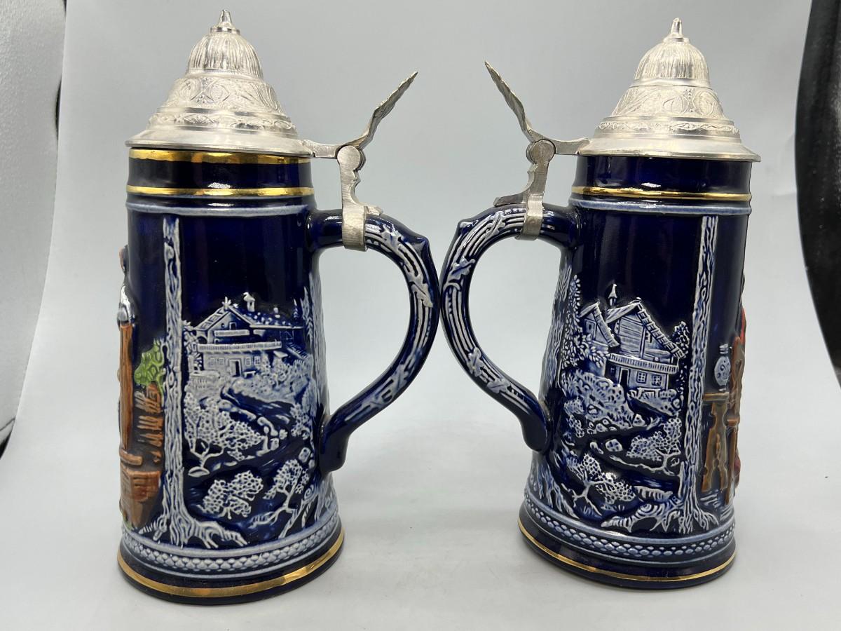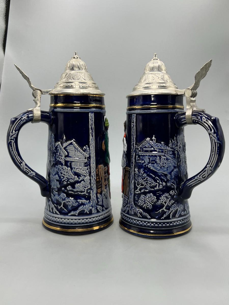 There is a light chip on the base of one of the steins, but there is no significant damage and in good collectible or displayable condition.