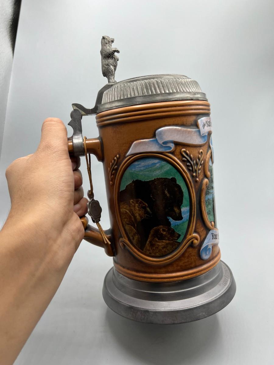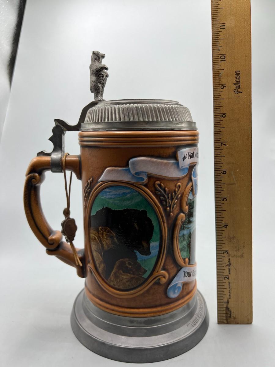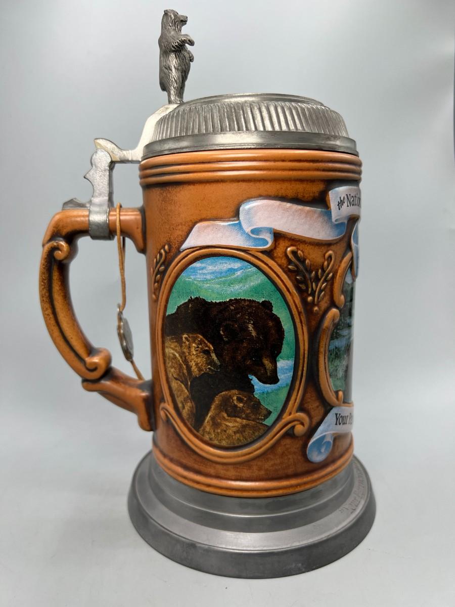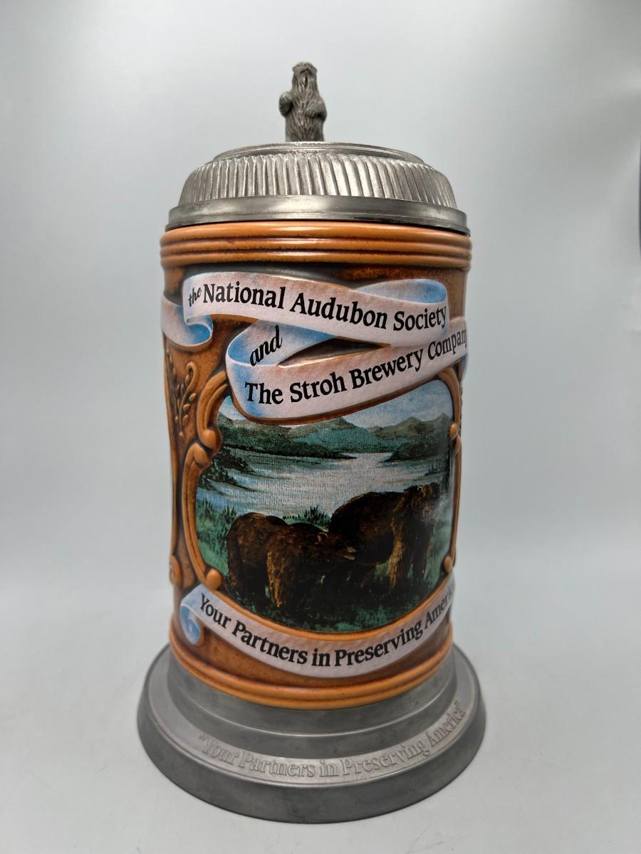 National Audubon Society Grizzly Bear Stoneware & Pewter Collectible Beer Stein