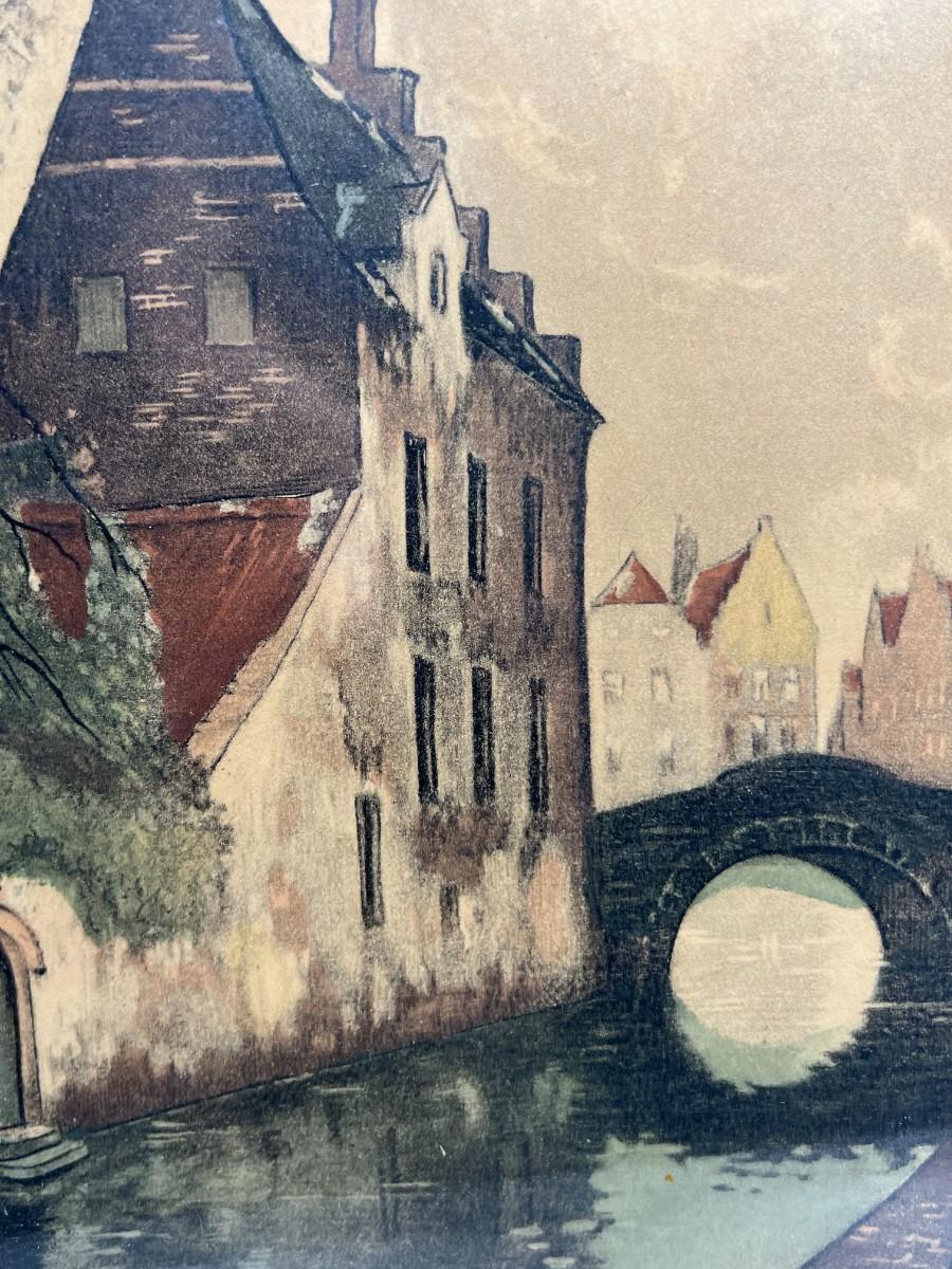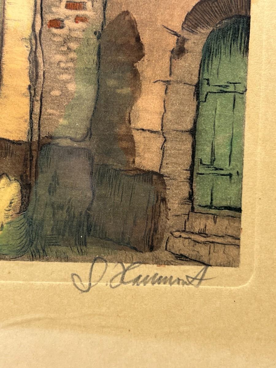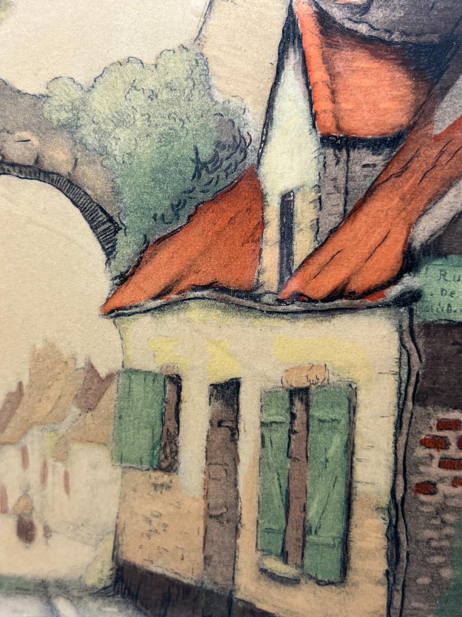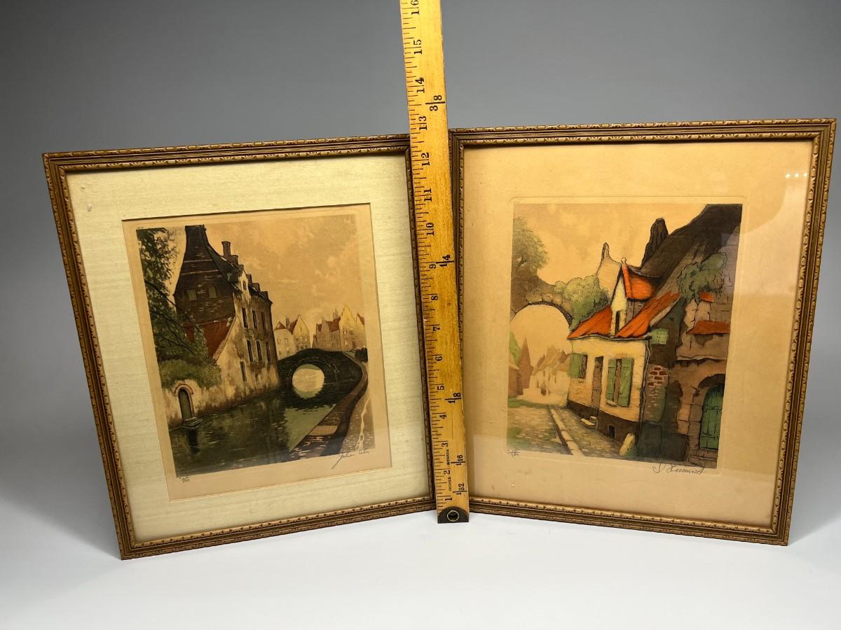 Vintage Framed & Signed Art Lithographs Colored Architectural French Landscape Archways Houses