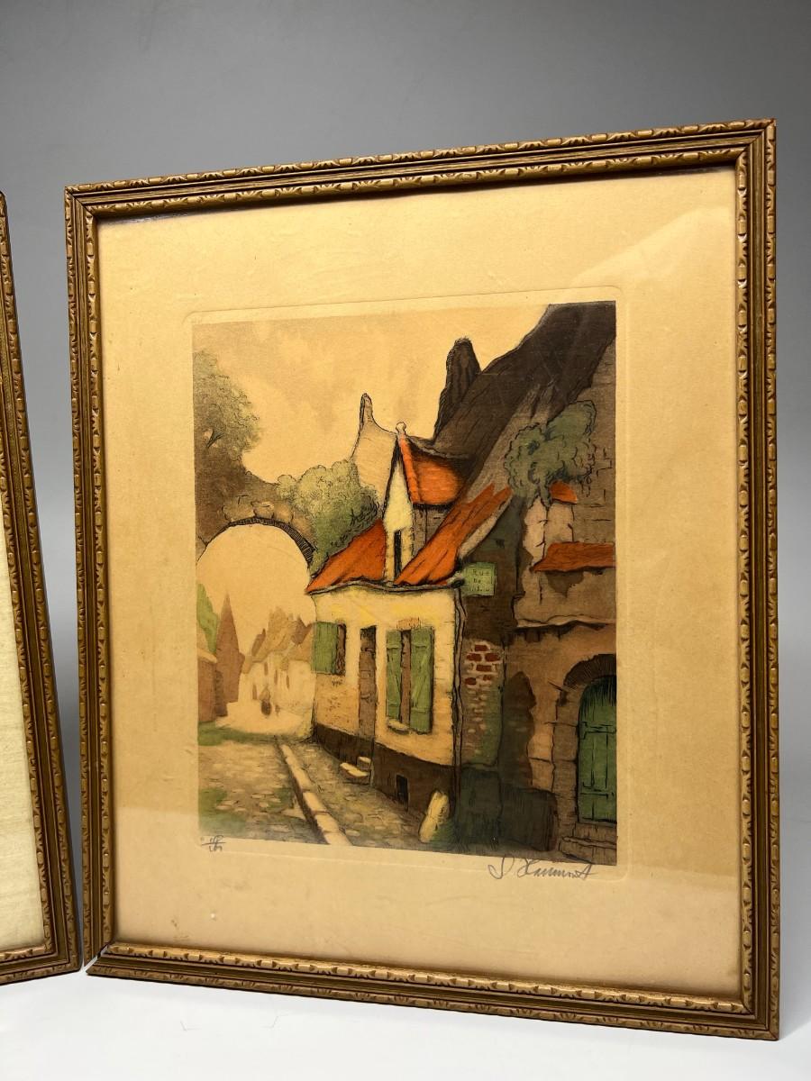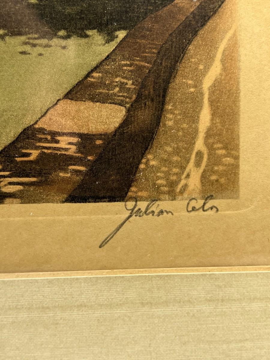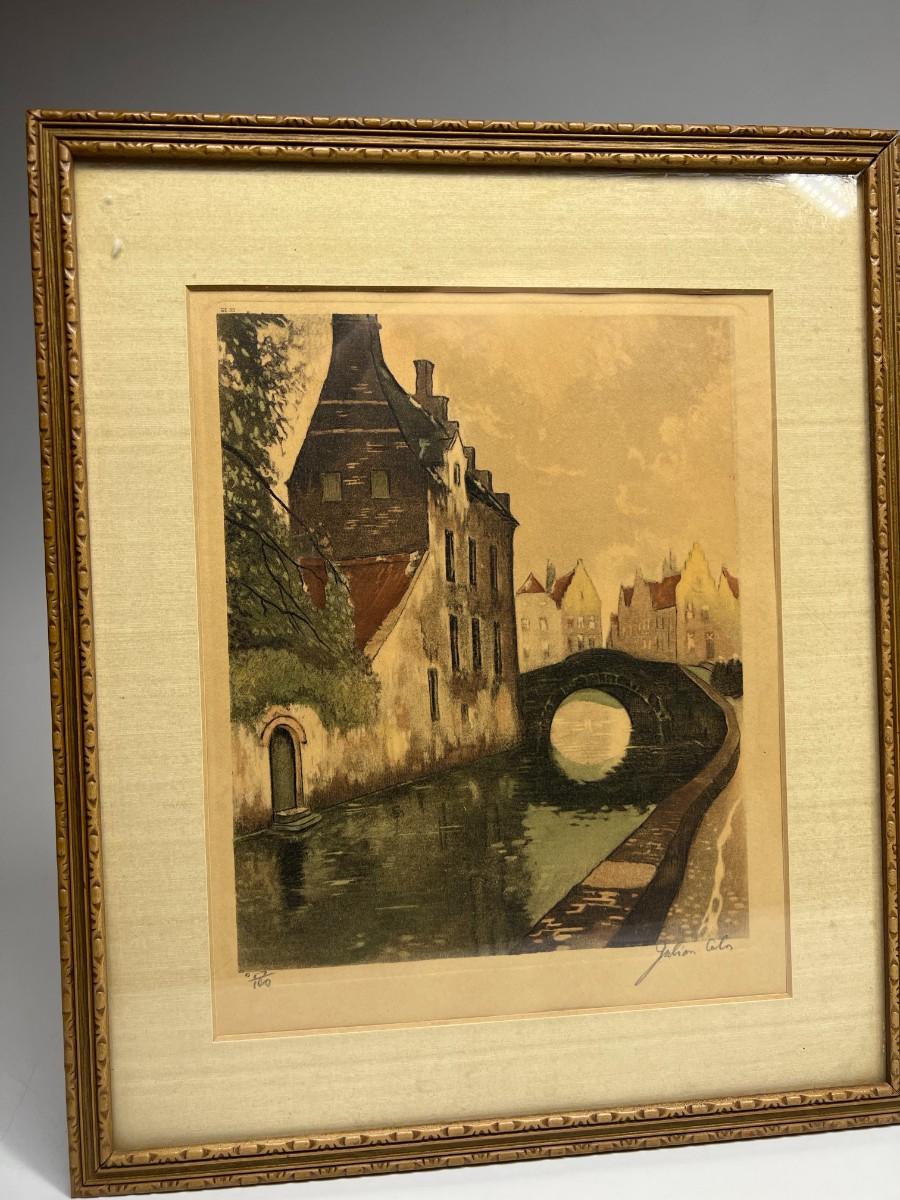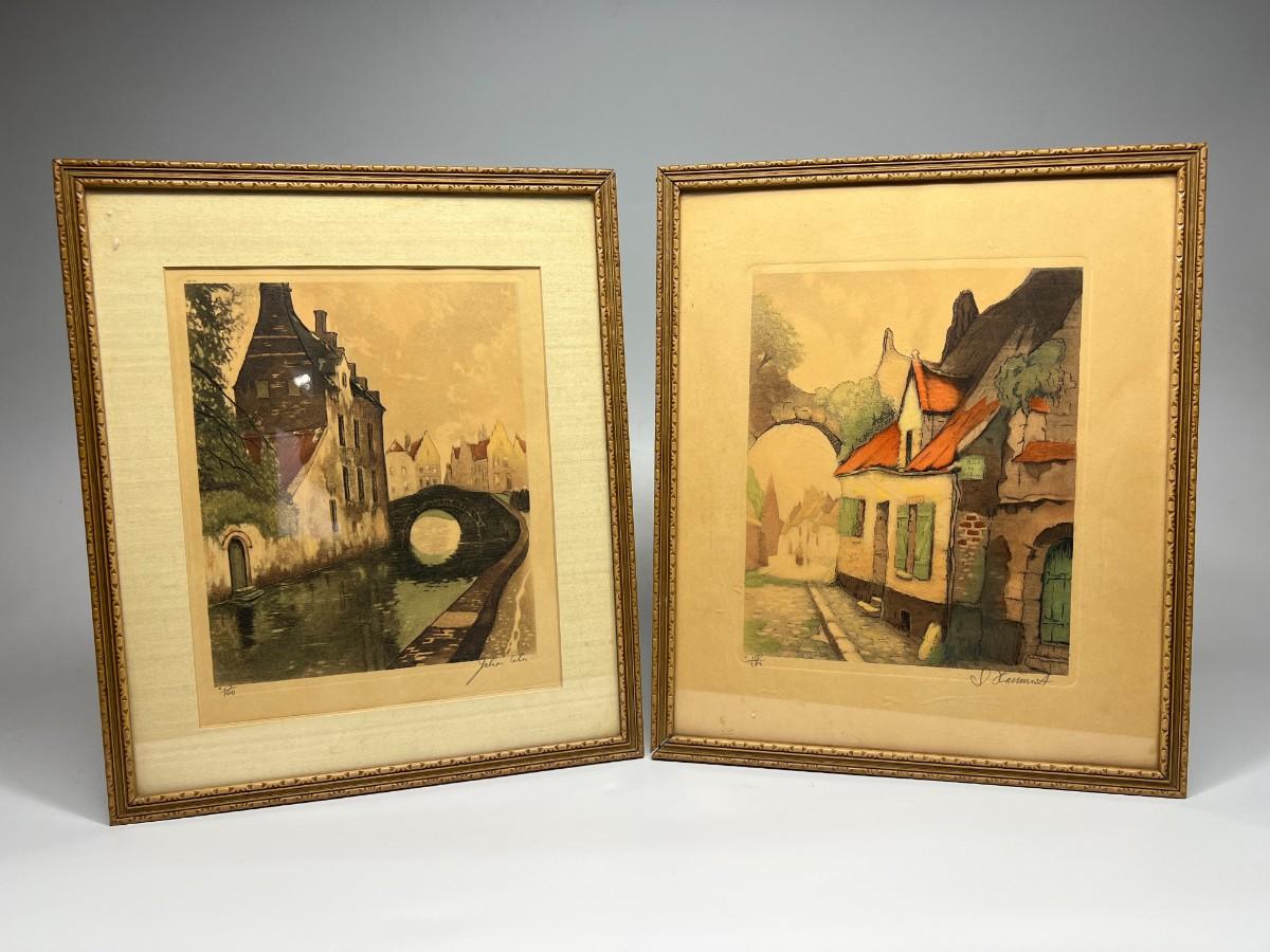 Vintage Framed & Signed Art Lithographs Colored Architectural French Landscape Archways Houses