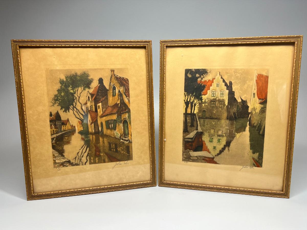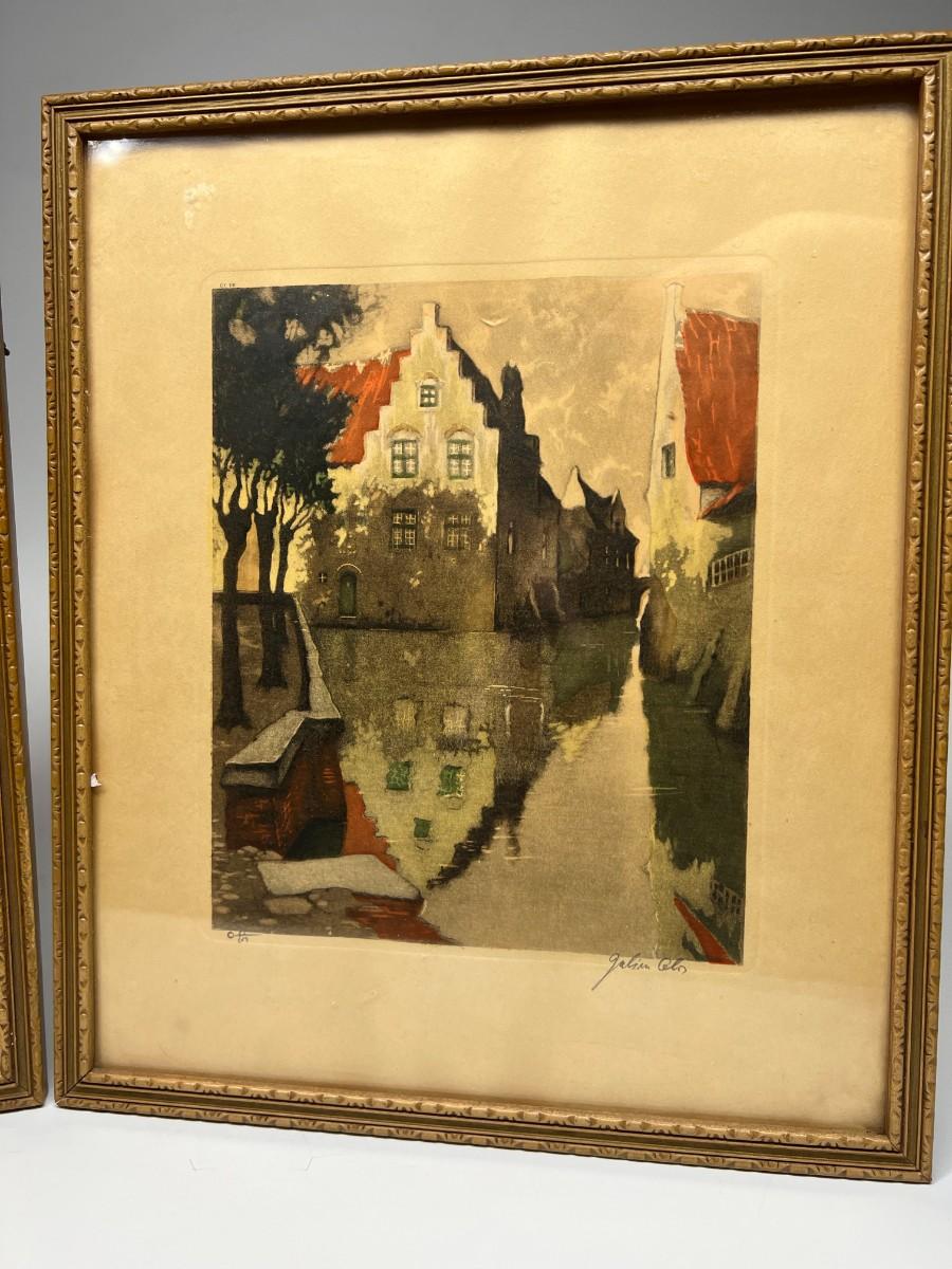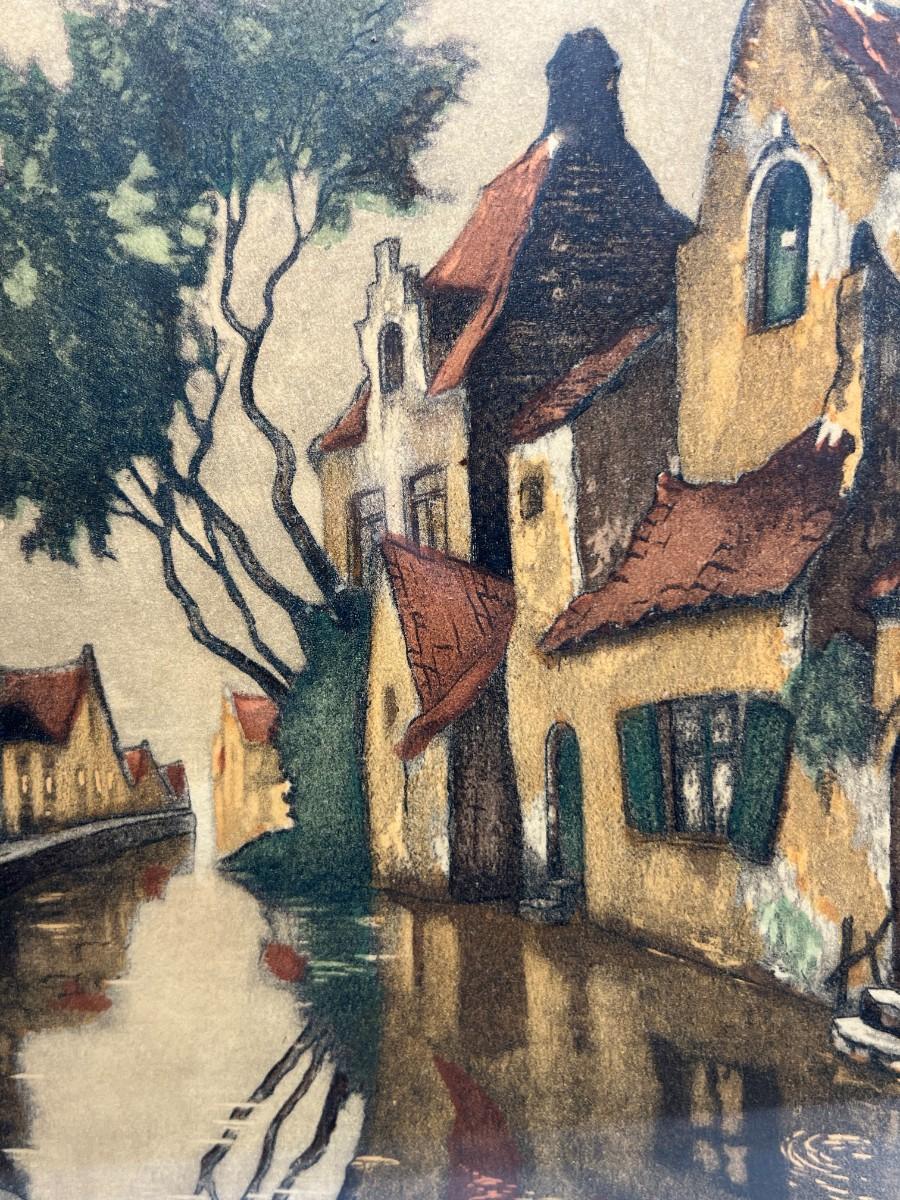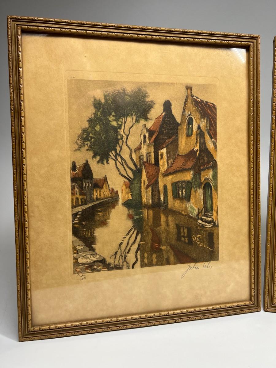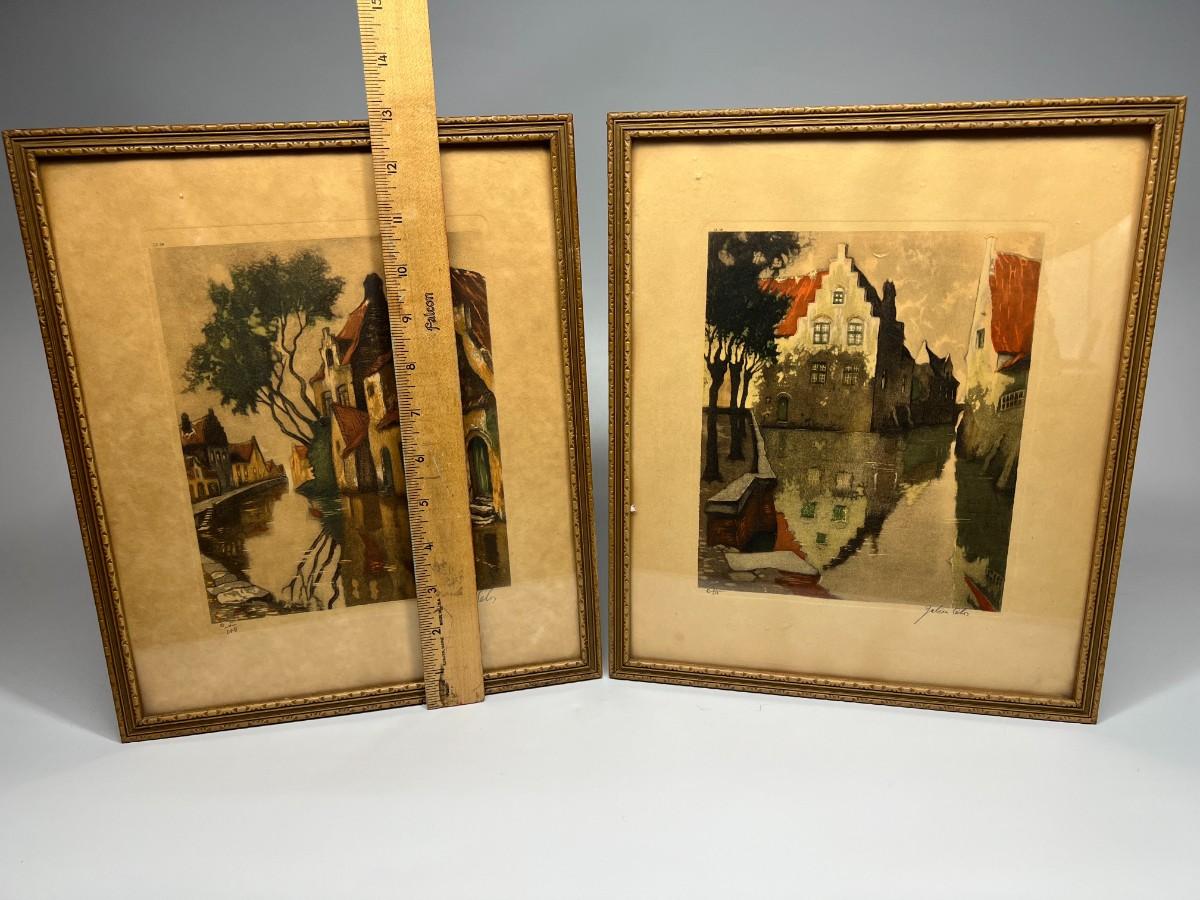 Vintage Signed Art Lithographs French Style Village Houses Landscapes