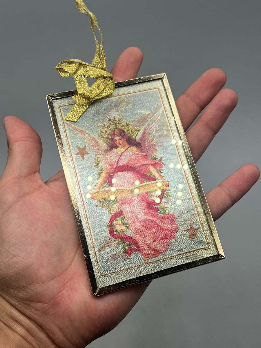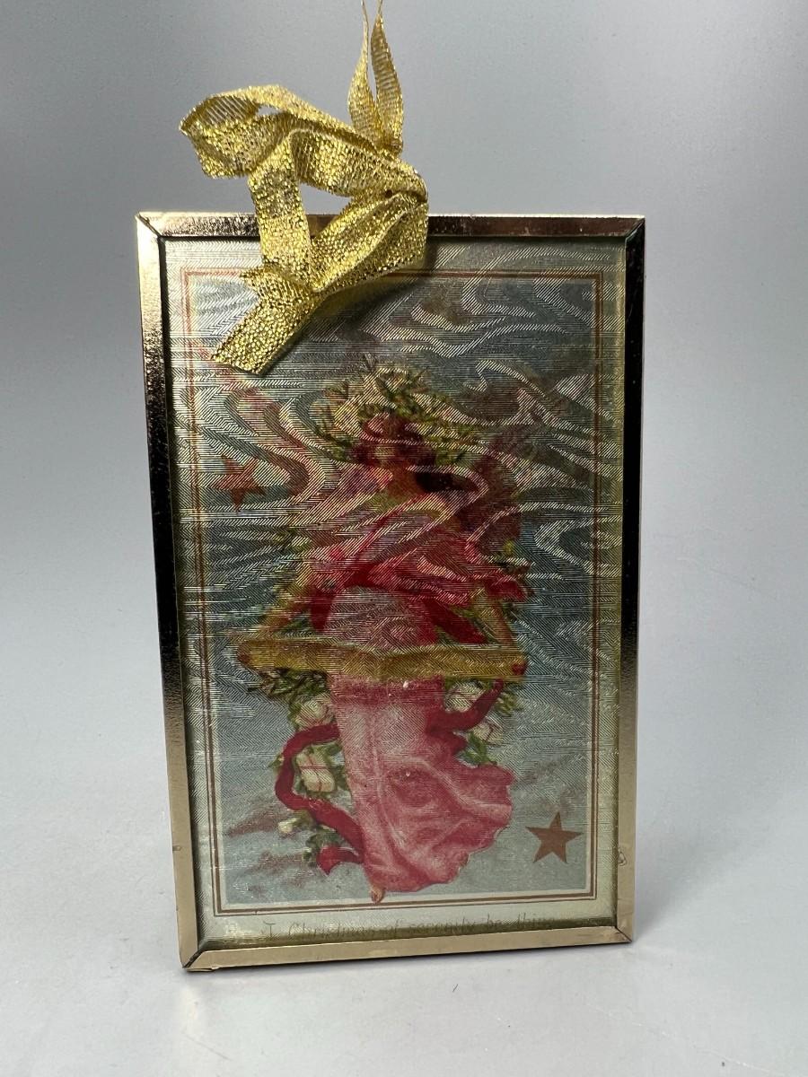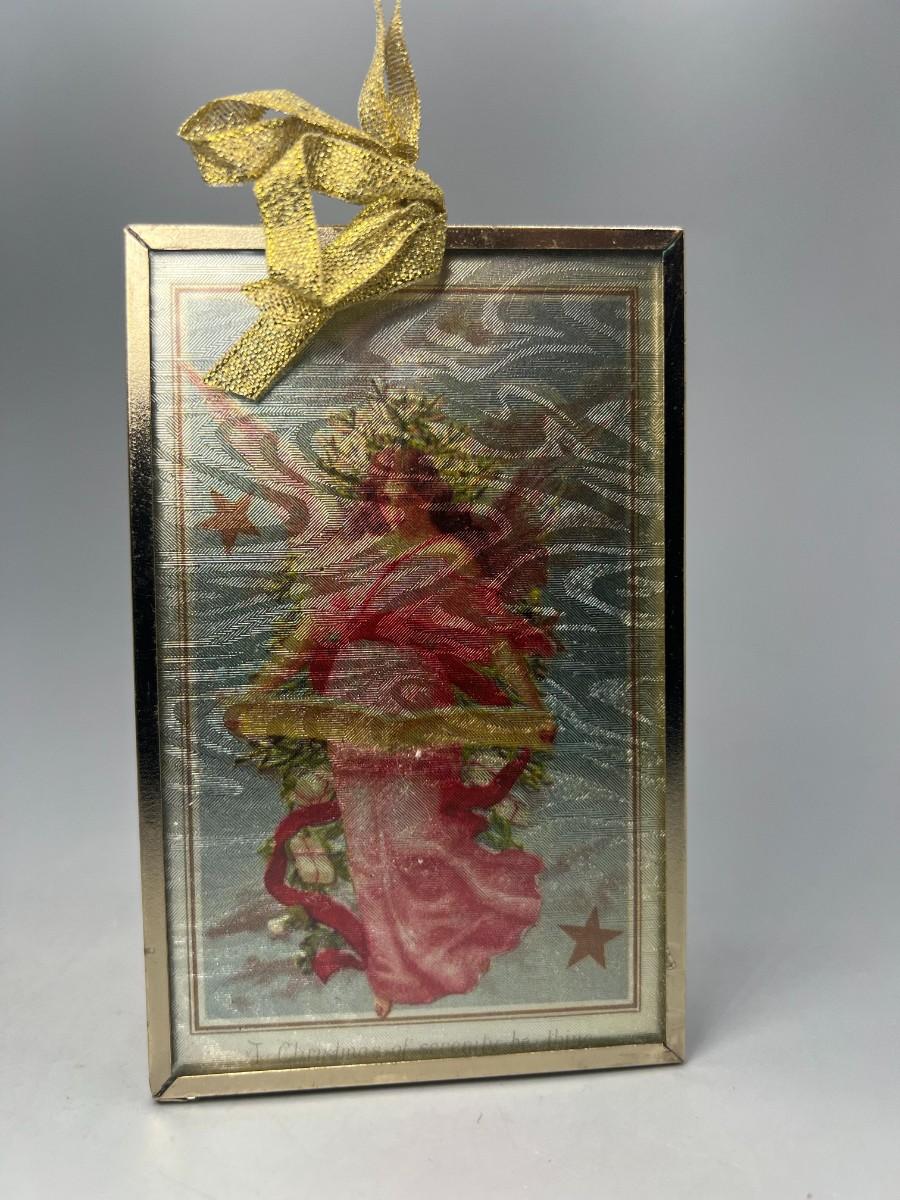 Vintage Framed Religious Biblical Angel Christmas Tree Ornament