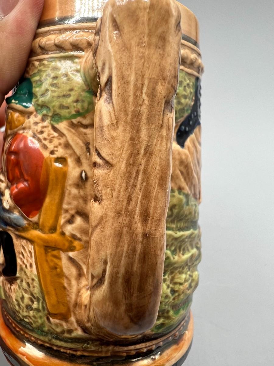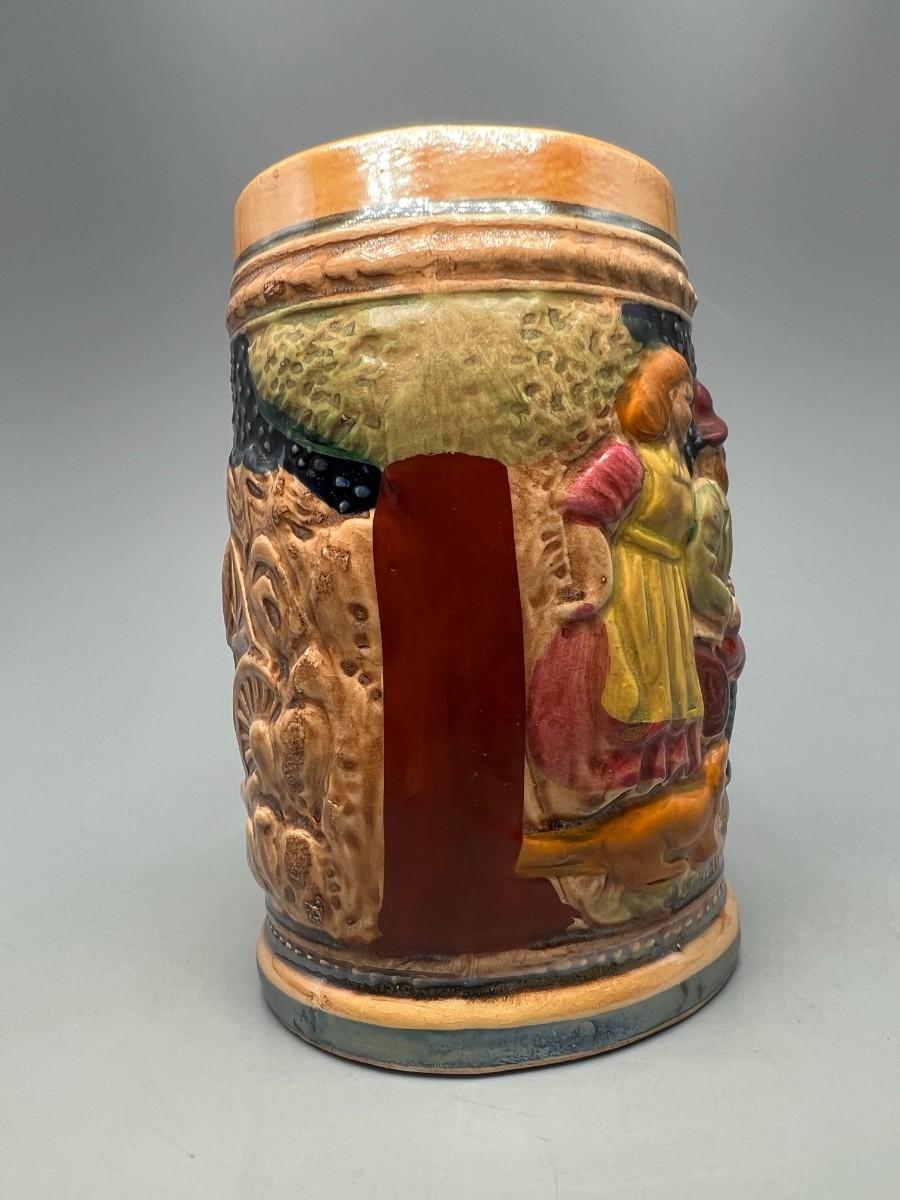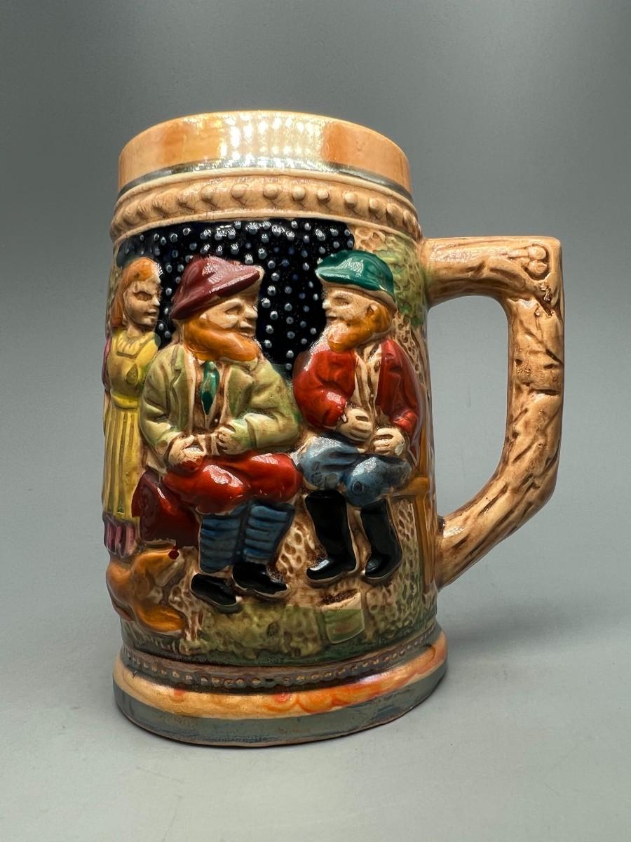 Vintage Small Antique Pub Scene Men Talking Beer Stein. About 5" size.